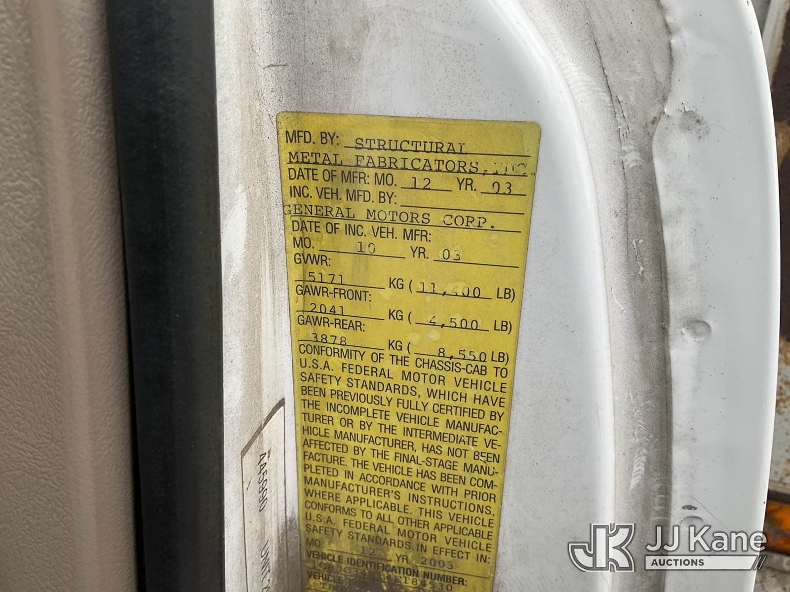 2004 Chevrolet Silverado 3500 Flatbed/Service Truck, 8-cyl, Auto, Gas, A/C, with hydraulic lift gate, (Exempt from Odometer Disclosure - Reads 185,014 miles) (Runs) (Does Not Move - Trans Condition Unknown, Leaks When Running, Check Engine Light On) (Do Not Start On Yard, Must Be Towed) This is a Titled Item NOTE: This unit is being sold AS IS/WHERE IS via Timed Auction and is located in Marion, TX. Inspection & preview days for this unit are the 2 business days prior to the first day of items closing for this auction, item is located at 3292 S Santa Clara Rd Marion, TX 78124 and hours of operations are 8a-4p. For pre-sale questions, please contact Brian Jarrell @ 210-540-3147. (Buyer is responsible for removal. Assistance by consignor or JJ Kane Auctioneers is not assured.)