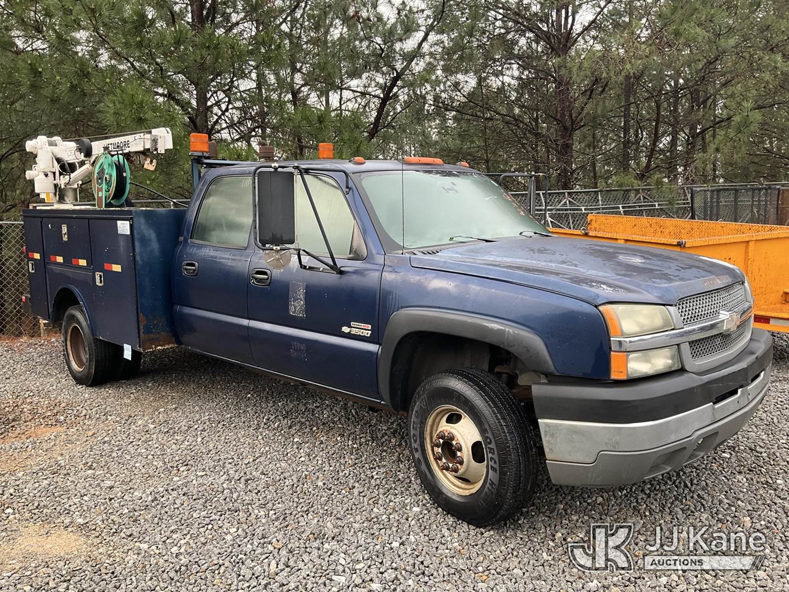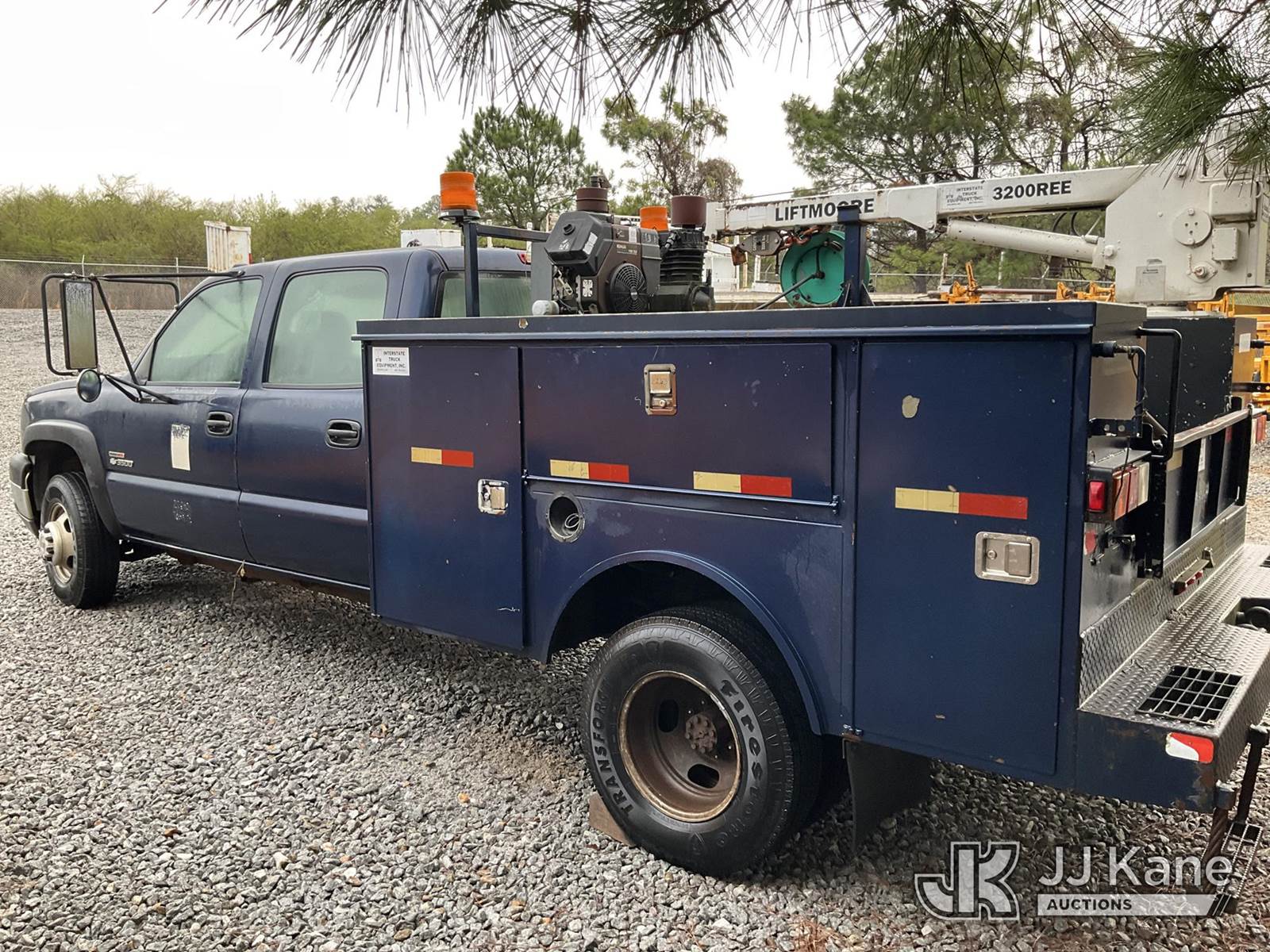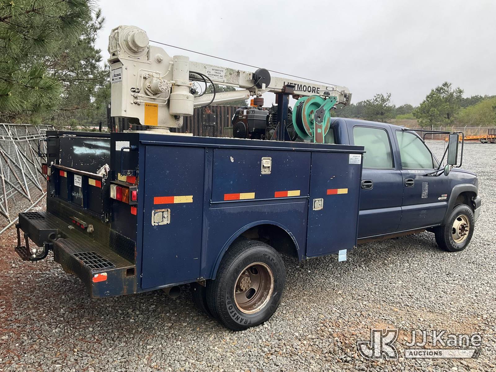 2004 Chevrolet Silverado 3500 Mechanics Service Truck, 6.6L diesel, Auto, A/C, with Liftmoore 3200REE material crane, Kohler air compressor, (Exempt from Odometer Disclosure - Reads 66,749 miles) (Runs) (Does Not Move, Condition Unknown, Jump To Start, Bad Transmission, Crane Condition Unknown, Body/Paint Damage) This is a Titled Item NOTE: This unit is being sold AS IS/WHERE IS via Timed Auction and is located in Villa Rica, GA. Inspection & preview days for this unit are the 2 business days prior to the first day of items closing for this auction, item is located at 100 Liberty Rd Villa Rica, GA 30180 and hours of operations are 8a-4p. For pre-sale questions, please contact Office Staff @ (470) 590-8453. (Buyer is responsible for removal. Assistance by consignor or JJ Kane Auctions is not assured.)
