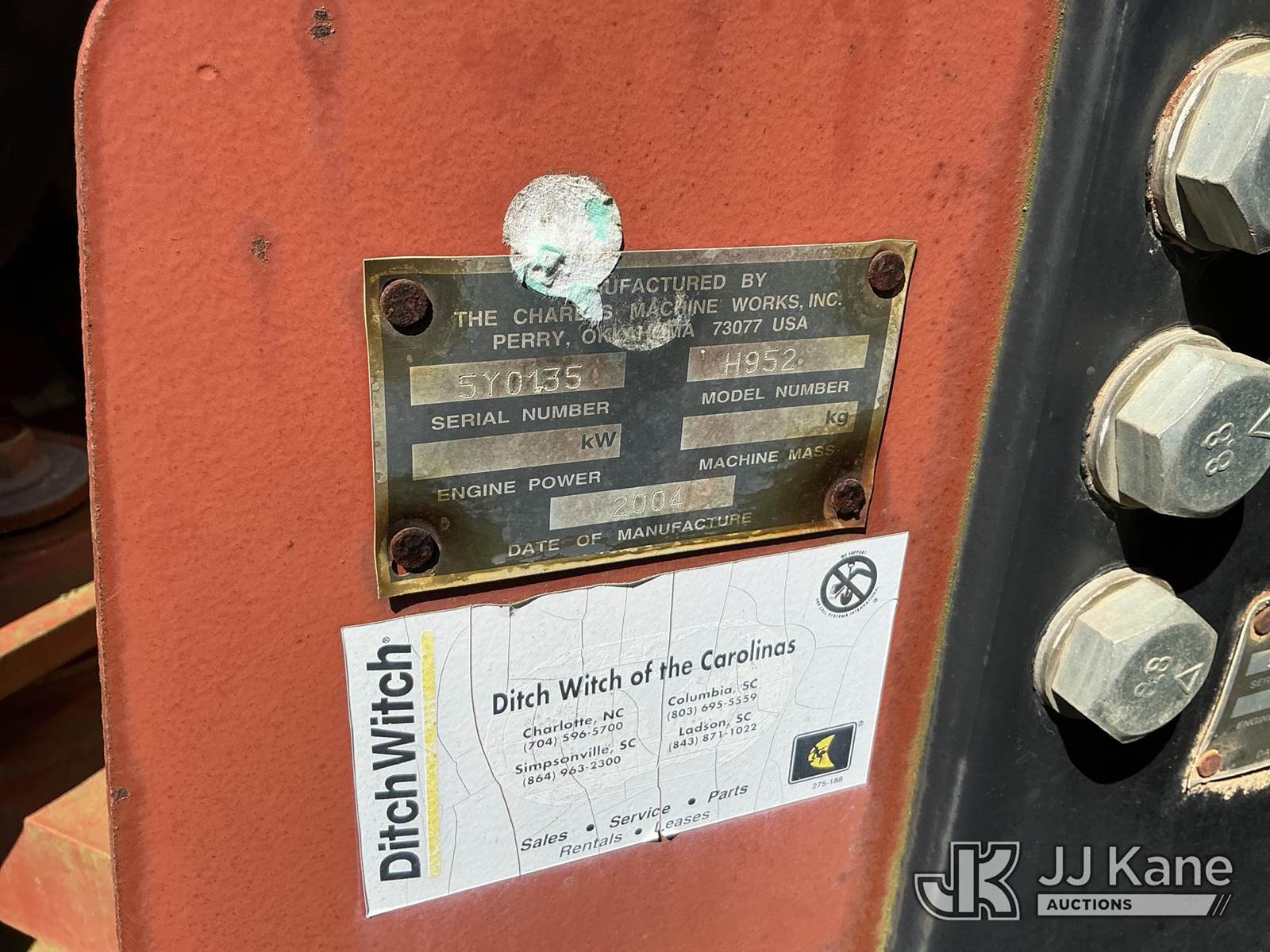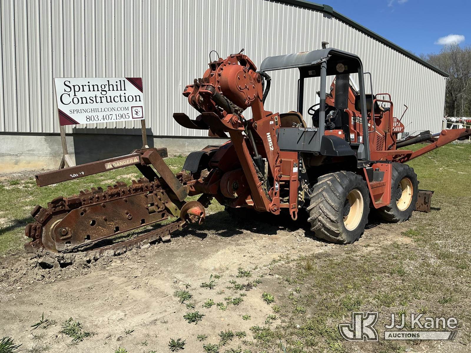 2004 Ditch Witch RT115H Combo Trencher/Vibratory Cable Plow, s/n 5Y0465, John Deere 4.5L diesel, Hydrostatic, with H952 vibratory cable plow, trencher boom w/ carbide tipped chain, A920 backhoe attachment, backfill blade, two hydraulic outriggers & ROPS, (Not Running, Condition Unknown, Per Seller: Suspected INOP safety switch not allowing unit to turn on) (Reads 622 hours) NOTE: This unit is being sold AS IS/WHERE IS via Timed Auction and is located in Columbia, SC. For more information please contact Pete @ 843-323-6538. (Buyer is responsible for removal. Assistance by consignor or JJ Kane Auctions is not assured.)