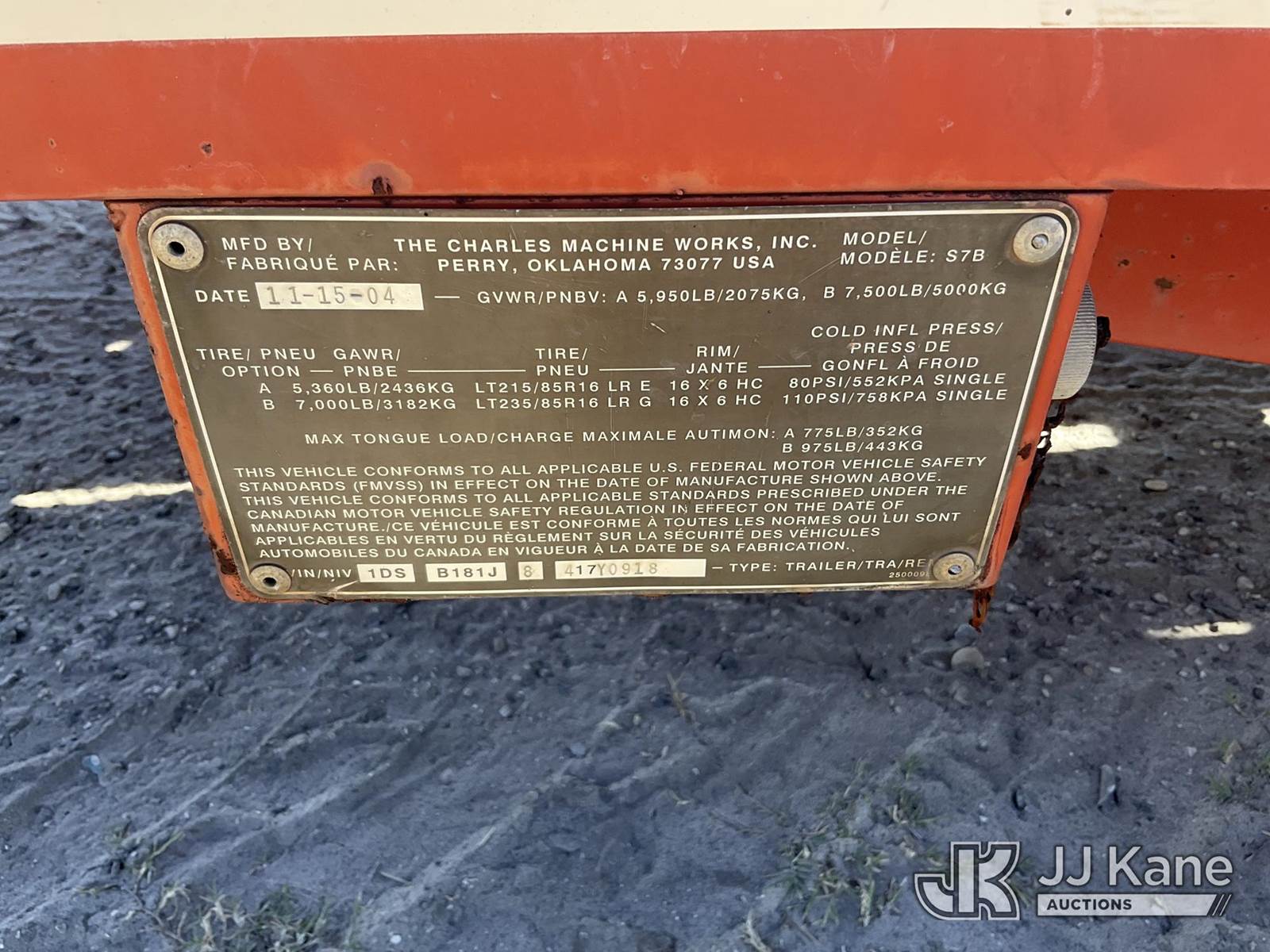 2004 Ditch Witch S7B S/A Tagalong Trailer, with 13 ft. tilt deck between wheels, (Moves)(Paint Damage, Body Damage, Rust) This is a Titled Item NOTE: This unit is being sold AS IS/WHERE IS via Timed Auction and is located in Thonotosassa, FL. For more information & removal arrangements please contact Office Staff @ 813-986-2485. (Buyer is responsible for removal. Assistance by consignor or JJ Kane Auctioneers is not assured.)