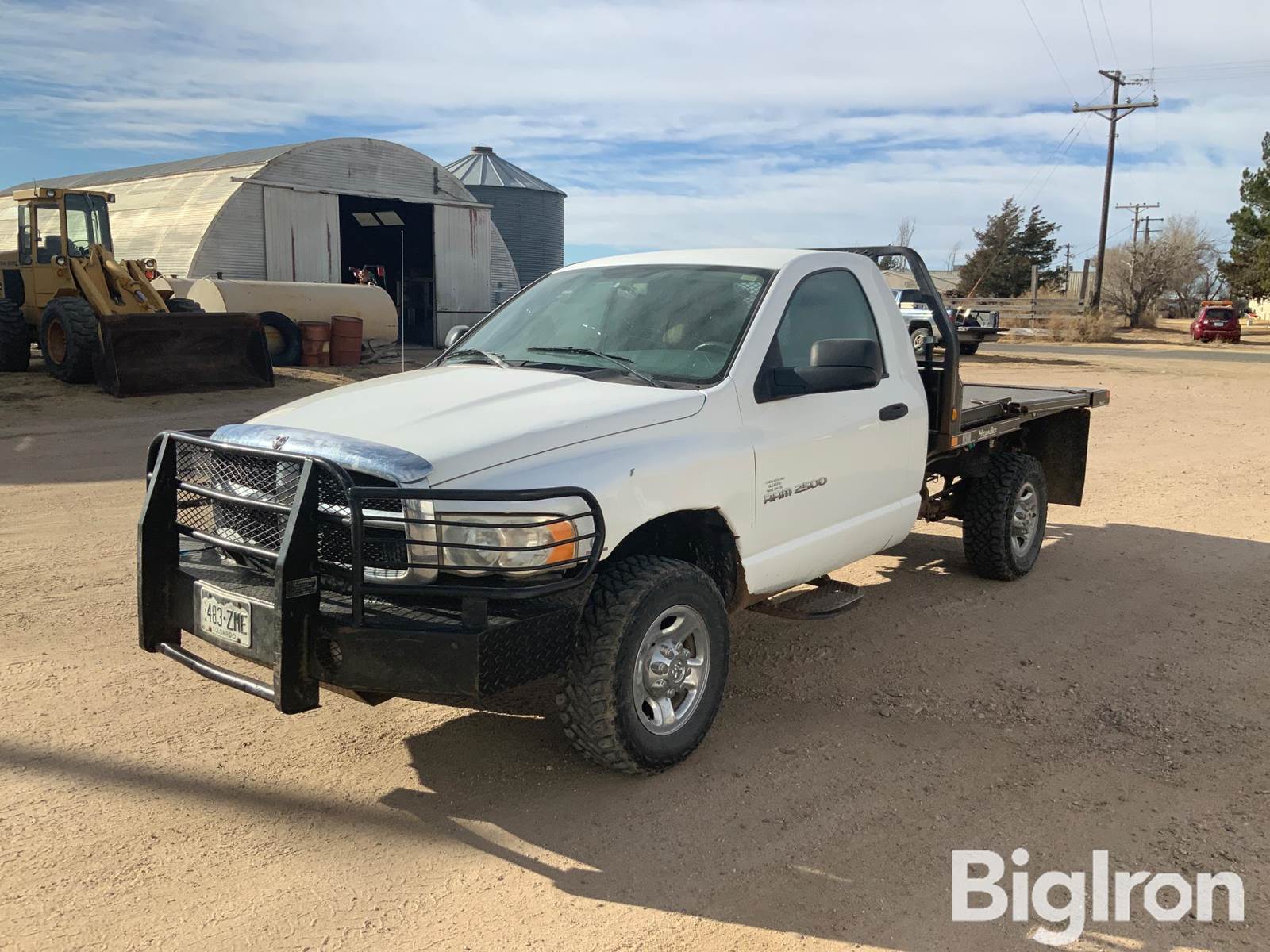 2004 Dodge RAM 2500 4x4 Flatbed Pickup w/HydraBed, 253,675 miles showing, Title Will Be Marked Miles Exempt, Cummins 5.9L Turbo Diesel Engine, Automatic Transmission, Block Heater, Fixed 5th Wheel, Headache Rack, Cattle Guard, Heater, A/C, Radio, HB200 HydraBed, Tow Package, LT265/70R17 Tires, VIN: 3D7KU26C44G106226