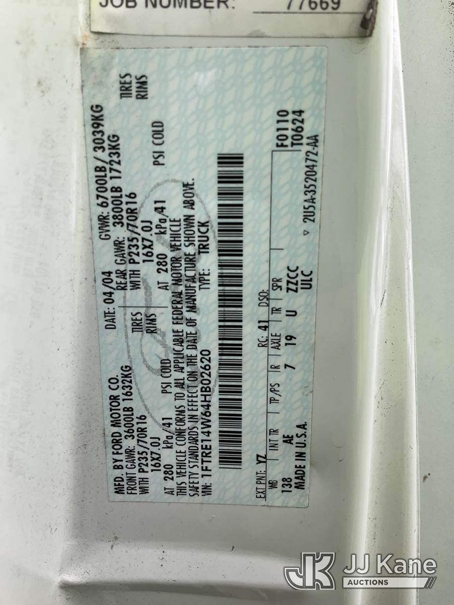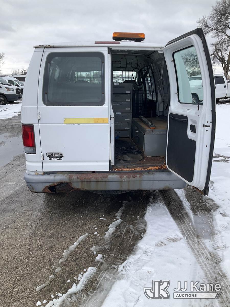 2004 Ford E150 Cargo Van, 4.6L V8 SOHC 16V gas, 4-Speed Automatic, RWD, A/C, (Exempt from Odometer Disclosure - Reads 20,622 miles) (Runs & Moves) (Rust Damage) This is a Titled Item NOTE: This unit is being sold AS IS/WHERE IS via Timed Auction and is located in South Beloit, IL. Inspection & preview days for this unit are the 2 business days prior to the first day of items closing for this auction, item is located at 14354 Dearborn Ave South Beloit, IL and hours of operations are 8a-4p. For pre-sale questions, please contact Derek Eklund at (608) 904-0618 or (derek.eklund@jjkane.com). (Buyer is responsible for removal. Assistance by consignor or JJ Kane Auctions is not assured.)