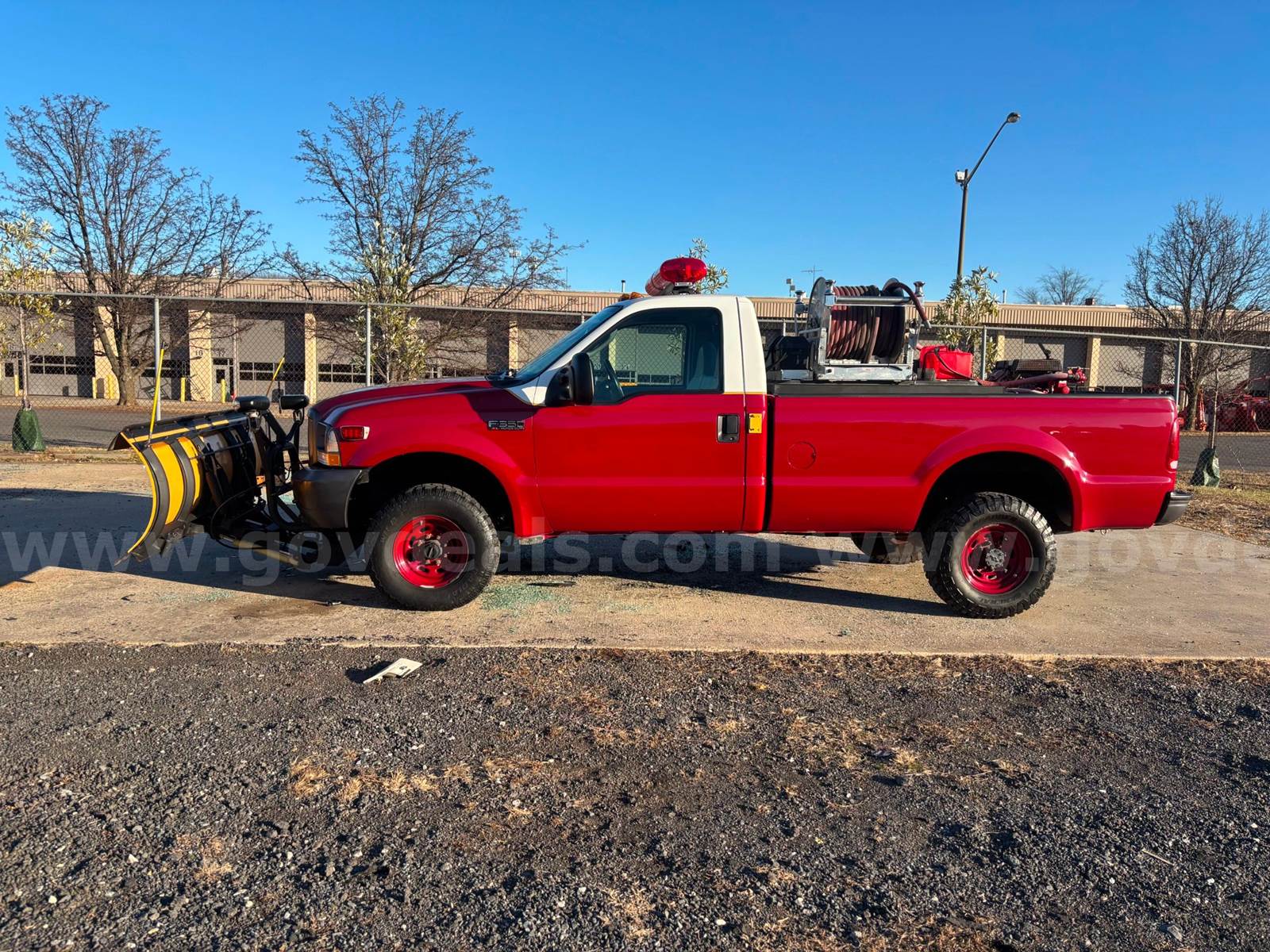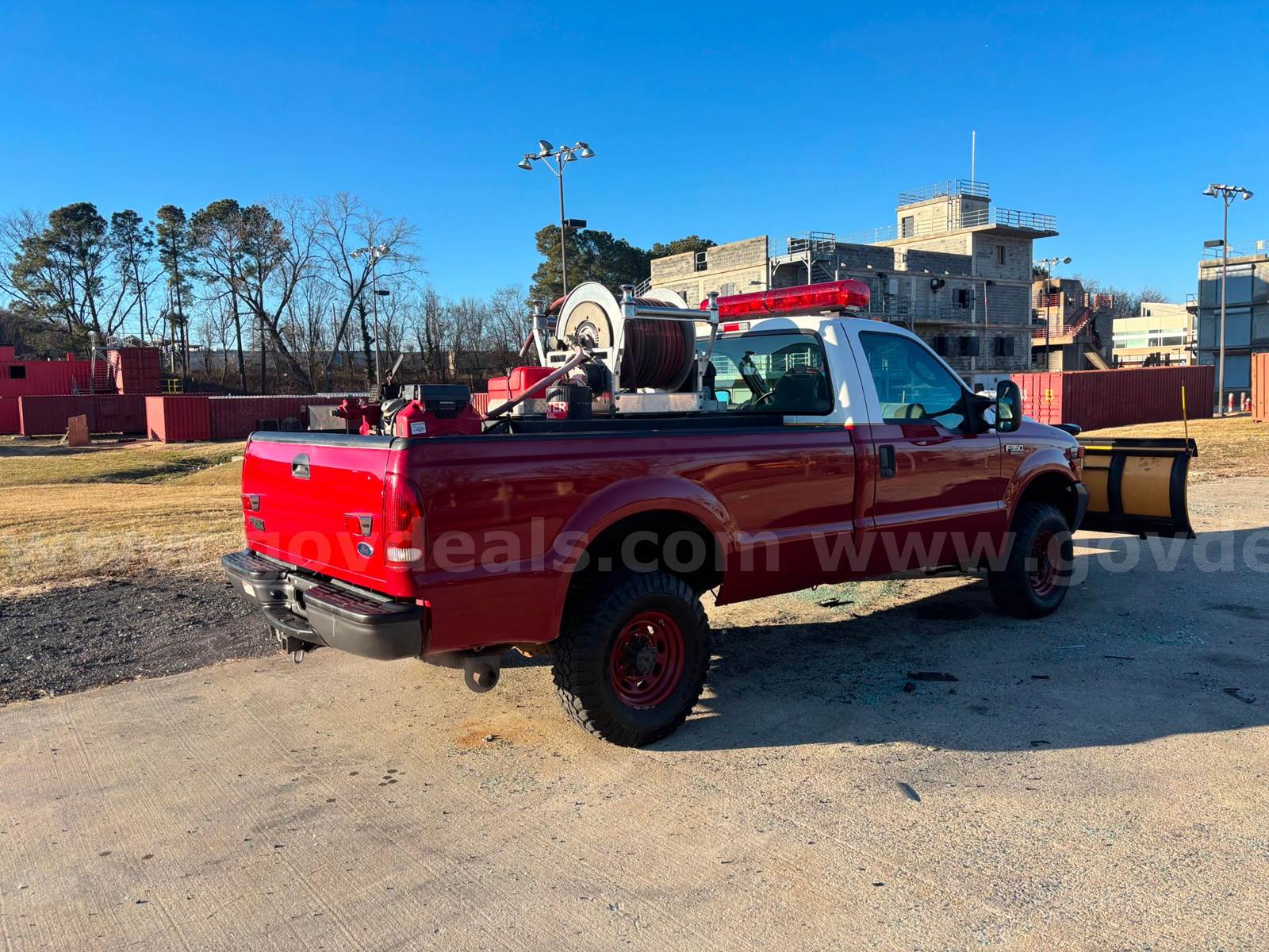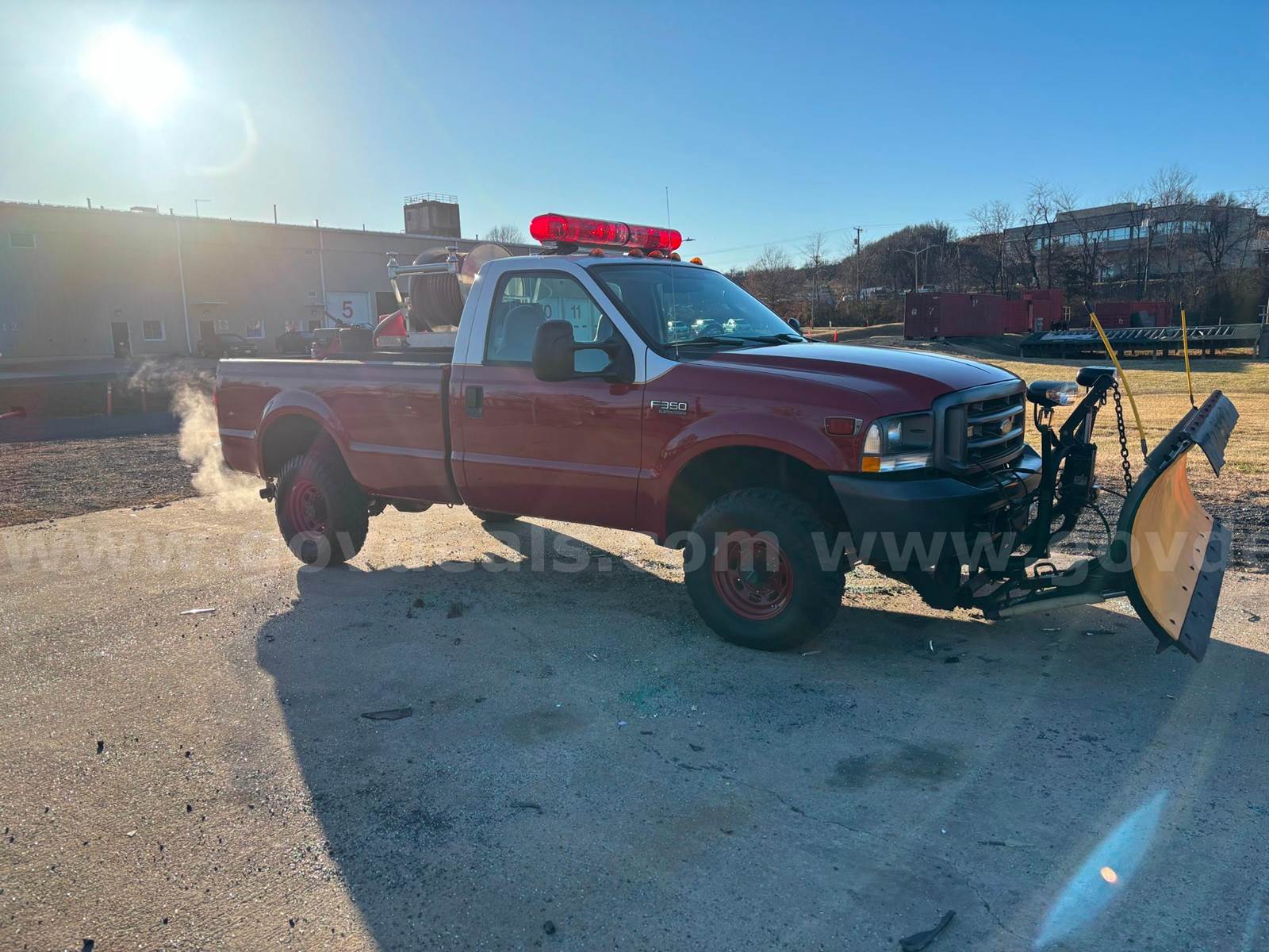2004 Ford F-350 SUPER DUTY REGULAR CAB PICKUP 2-DR, 6.8L V10 SOHC 20V. Only 13,943 miles. This unit was used as a brush truck and utility and was mainly housed indoors on standby at the Fire Station. Comes equipped with a working fire pump skid and plow. All emergency lights are operational. Fire Pump Skid is a C.E.T Fire Pump Skid, Pump 700 GPM, 18hp V-Twin Honda Motor, Poly-Tank II Water Tank. Plow is a Meyer Plow in good condition. Was removed from service on 11/21/2025 due to the vehicle's age. No known mechanical issues.