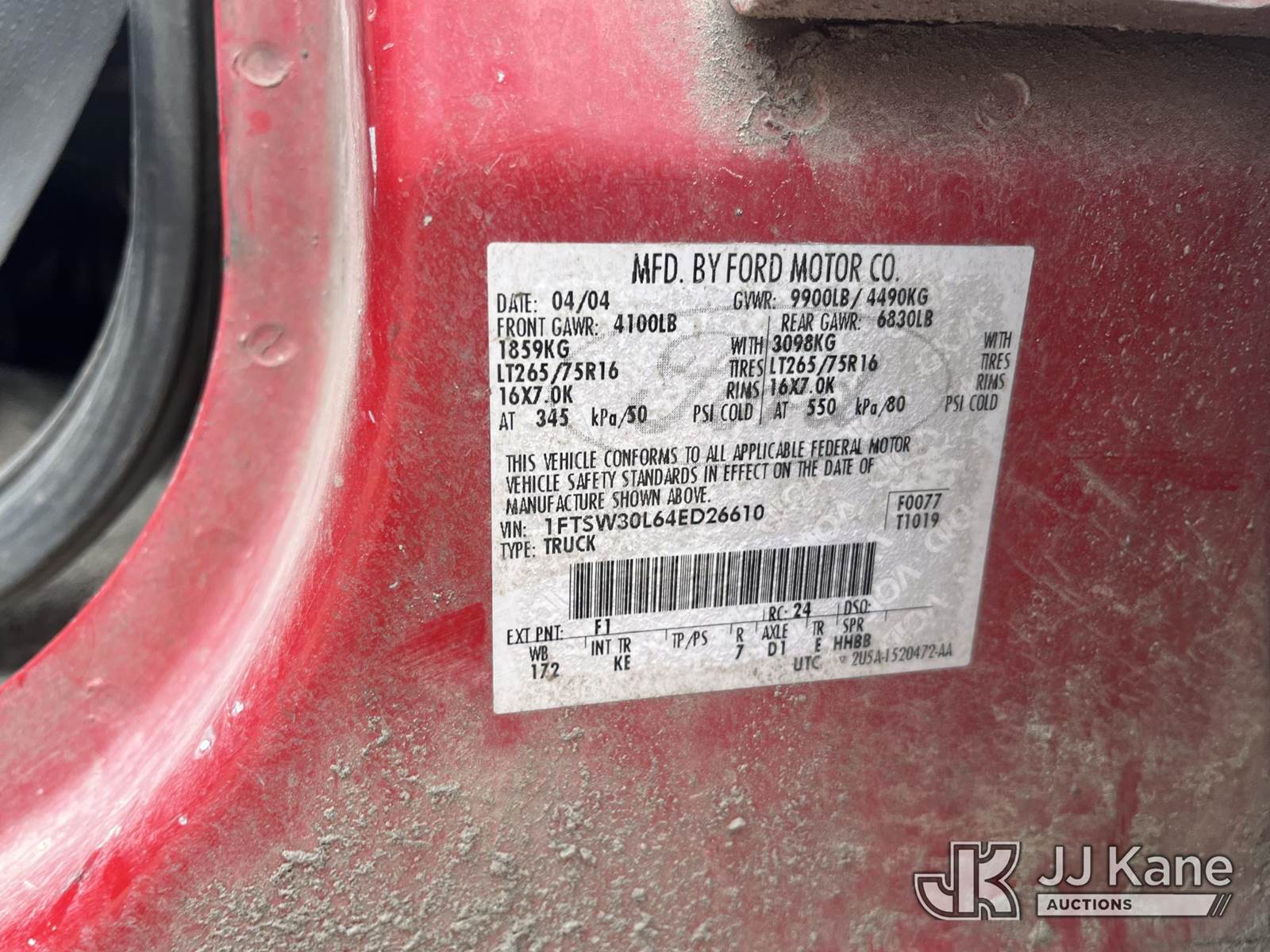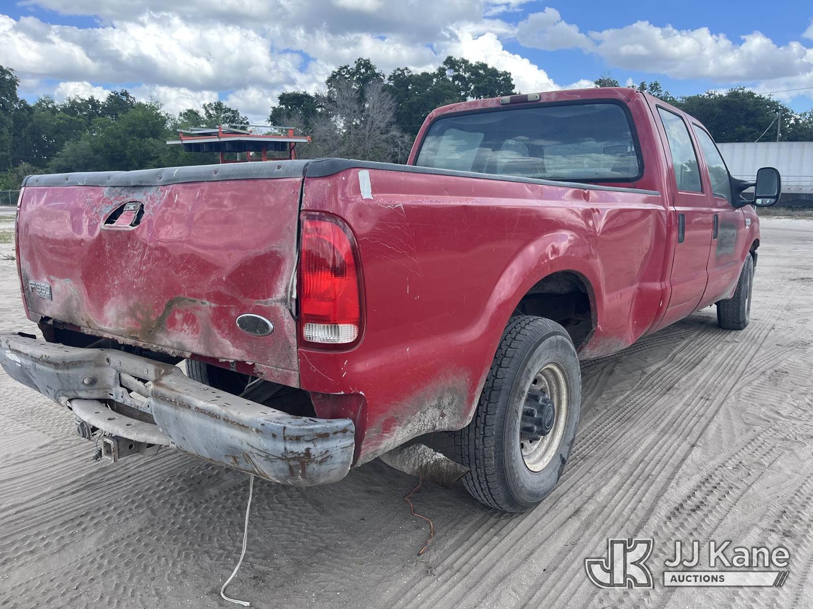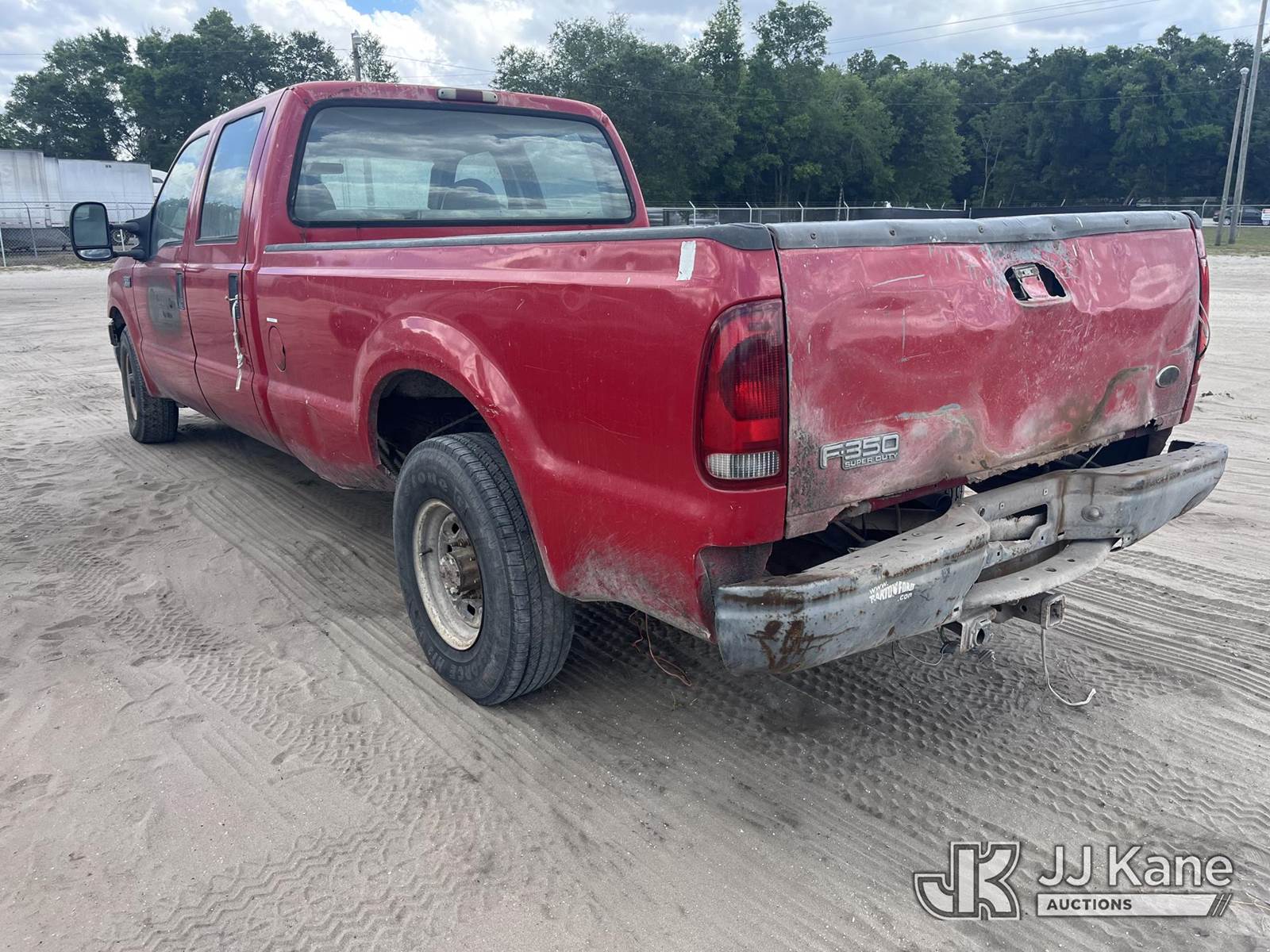 2004 Ford F-350 SD Crew-Cab Pickup Truck, 8-cyl gas, RWD, Auto, A/C, (Exempt from Odometer Disclosure - Reads 279,643 miles) (Runs) (Does Not Move, Body & Paint Damage, Rust, Transmission Shifter Disconnected, Key Stuck In Ignition, Check Engine Light On, Rust)(FL Residents Purchasing Titled Items – tax, title & registration fees will be collected at the maximum rate of $400.00 under 25,999 and $800.00 for Over 26,000 and $250.00 trailers – Proof of insurance is mandatory; Out of State Residents Purchasing Title Items – tax will be collected based upon your state rate.) This is a Titled Item NOTE: This unit is being sold AS IS/WHERE IS via Timed Auction and is located in Thonotosassa, FL. Inspection & preview days for this unit are the 2 business days prior to the first day of items closing for this auction, item is located at 11720 N US 301 Thonotosassa, Fl 33592 and hours of operations are 8a-4p. For pre-sale questions, please contact Office Staff @ (813) 986-2485. (Buyer is responsible for removal. Assistance by consignor or JJ Kane Auctions is not assured.)
