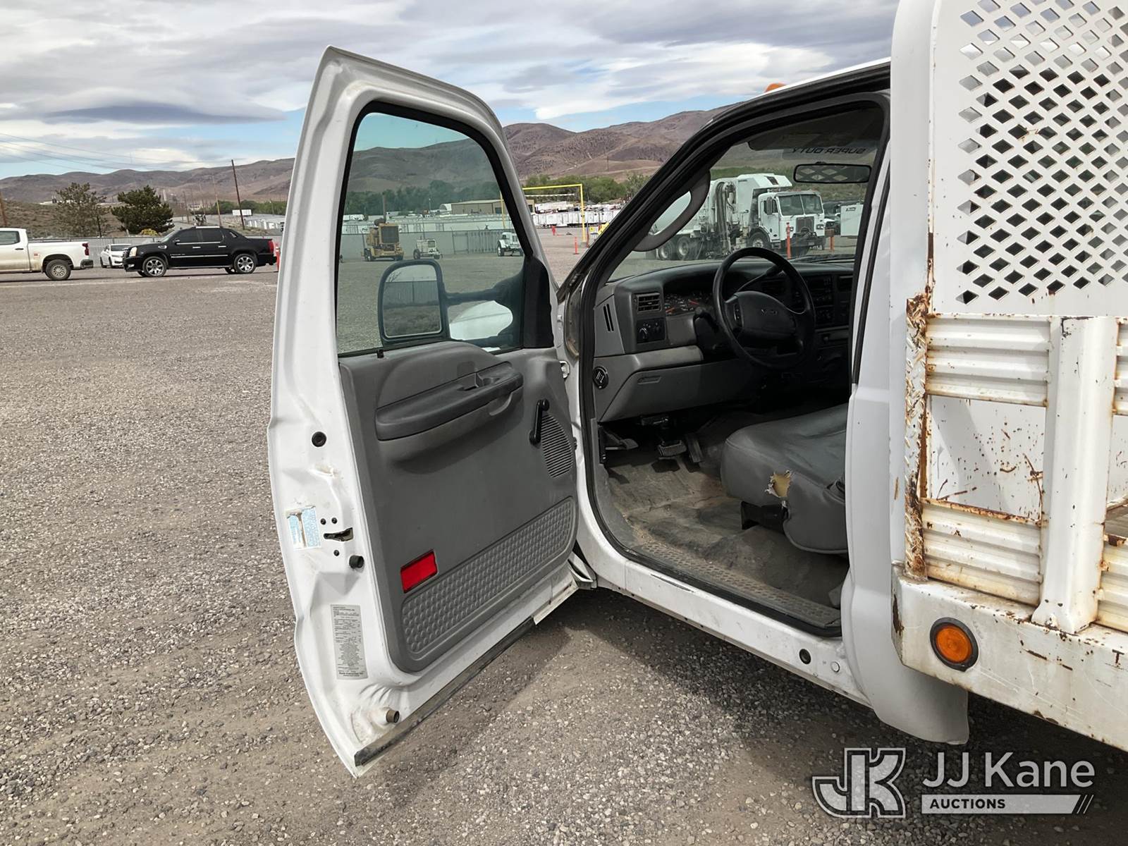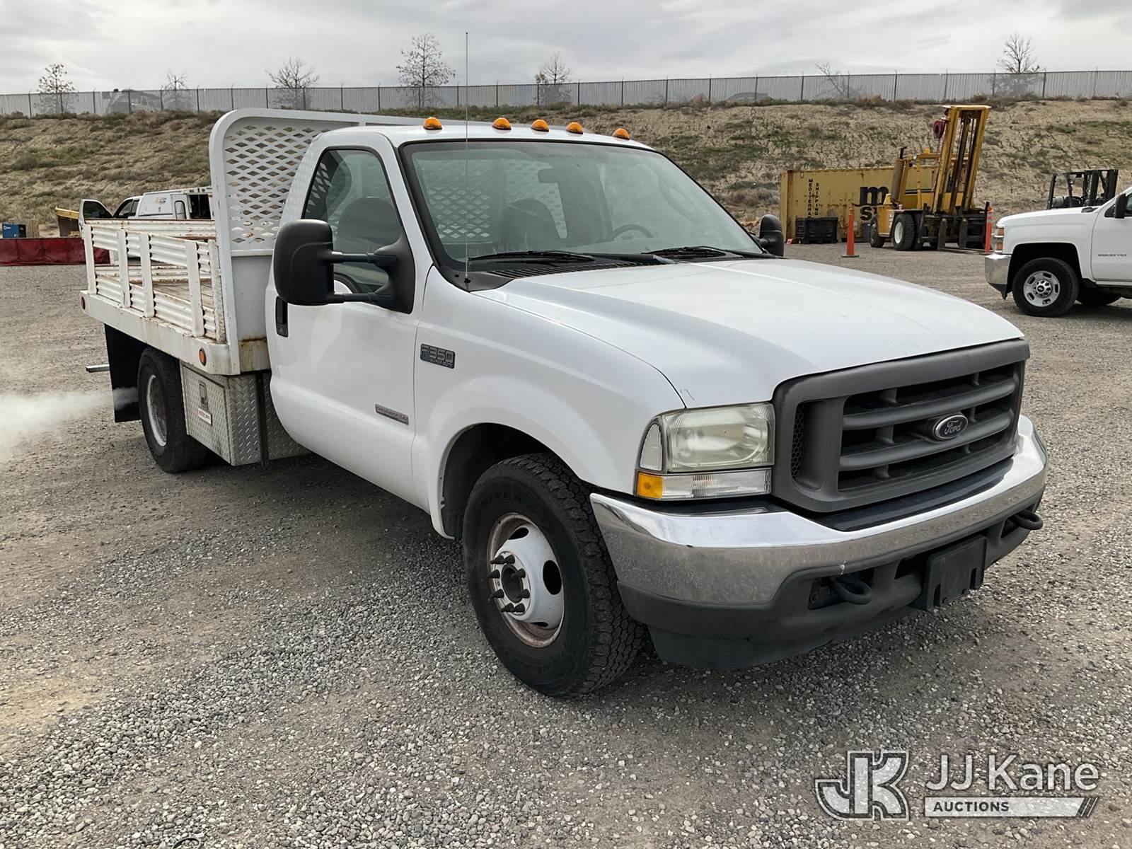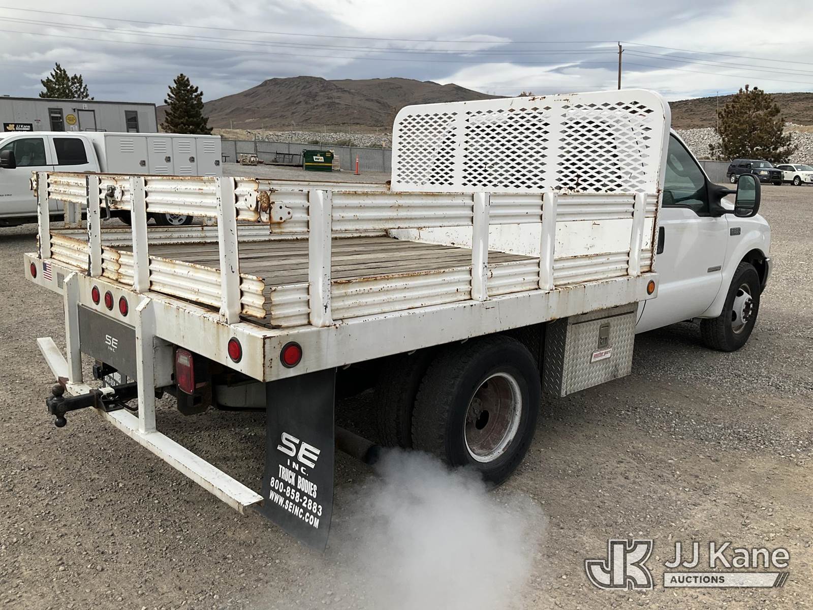 2004 Ford F-350 SD Stake Truck, 6.0L Turbo Diesel 5-Speed Automatic, A/C, (Exempt from Odometer Disclosure - Reads 58,532 miles) (Jump to Start, Runs & Moves) (White Smoke out Exhaust, Ripped Seat) (Reads 3,192 hours) This is a Titled Item NOTE: This unit is being sold AS IS/WHERE IS via Timed Auction and is located in Sparks, NV. Inspection & preview days for this unit are the 2 business days prior to the first day of items closing for this auction, item is located at 601 Britain Dr Sparks, NV 89437 and hours of operations are 8a-4p. Titles executed exactly as bidder registered. Ensure your name and/or business name and address in JJ Kane and/or ProxiBid is correct before bidding. For pre-sale questions, please contact Office Staff @ (801) 519-0123 and provide sale date and lot number. Sparks Dealer License Number DLR000052908 / OHV000052909. (Buyer is responsible for removal. Assistance by consignor or JJ Kane Auctions is not assured.)