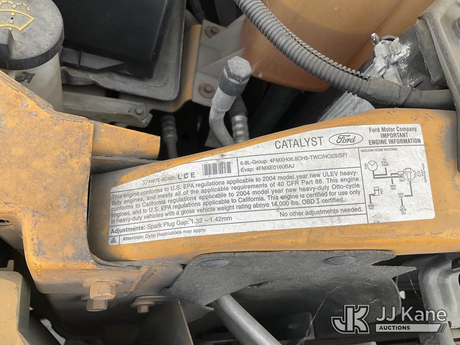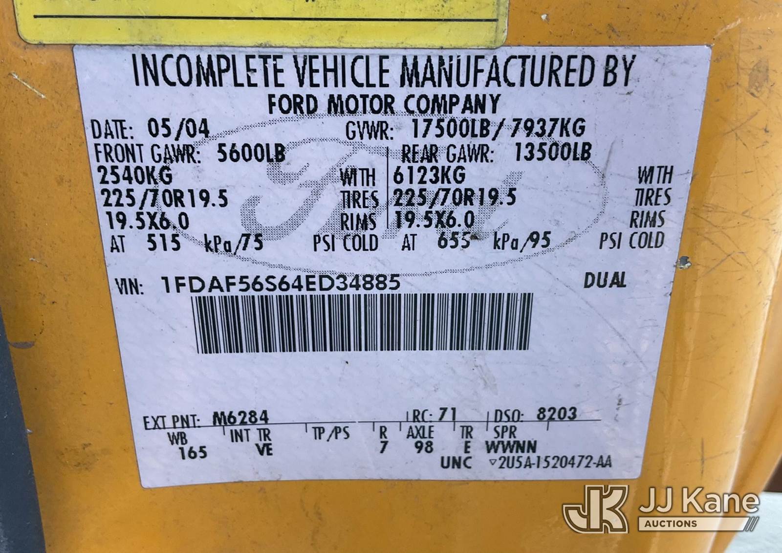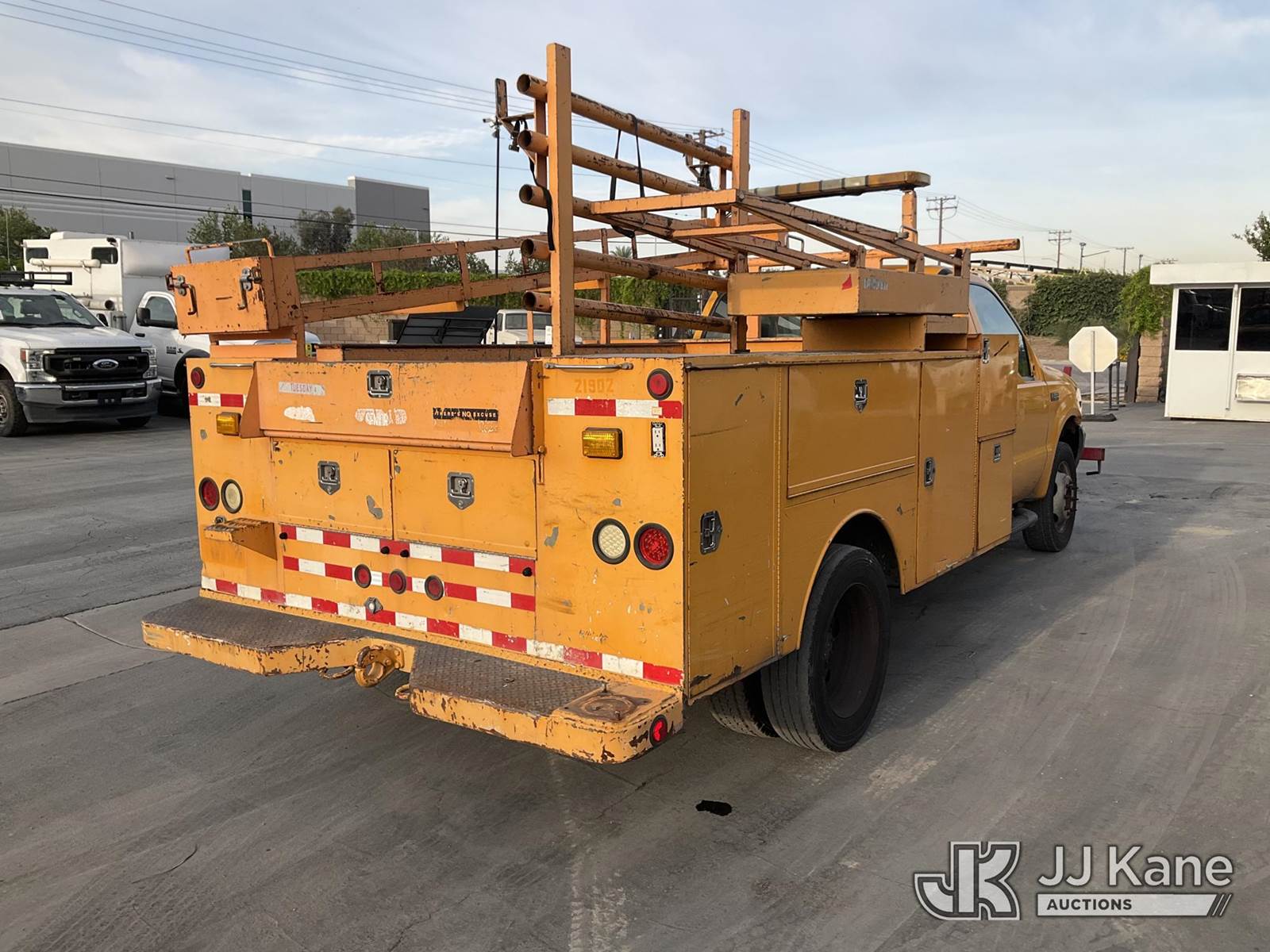 2004 Ford F-550 Regular Cab 2WD DRW Service Truck, s/n 1FDAF56S64ED34885, 6.8L V10 SOHC 20V RWD, GAS, Auto, A/C, with hydraulic post puller, tow package, ladder rack, utility bed, (Exempt from Odometer Disclosure - Reads 121,517 miles) (Runs & Moves, Right Turn Signal Is Out ) (Bidding Restricted to Licensed Vehicle Dealers Only), This is a Titled Item NOTE: This unit is being sold AS IS/WHERE IS via Timed Auction and is located in Jurupa Valley, CA. Inspection & preview days for this unit are the 2 business days prior to the first day of items closing for this auction, item is located at 4510 Muth Way Jurupa Valley, CA 92509 and hours of operations are 8a-4p. For pre-sale questions, please contact please contact Office Staff @ (310) 353-7140. Dealer License Number 45696. (Buyer is responsible for removal. Assistance by consignor or JJ Kane Auctions is not assured.)
