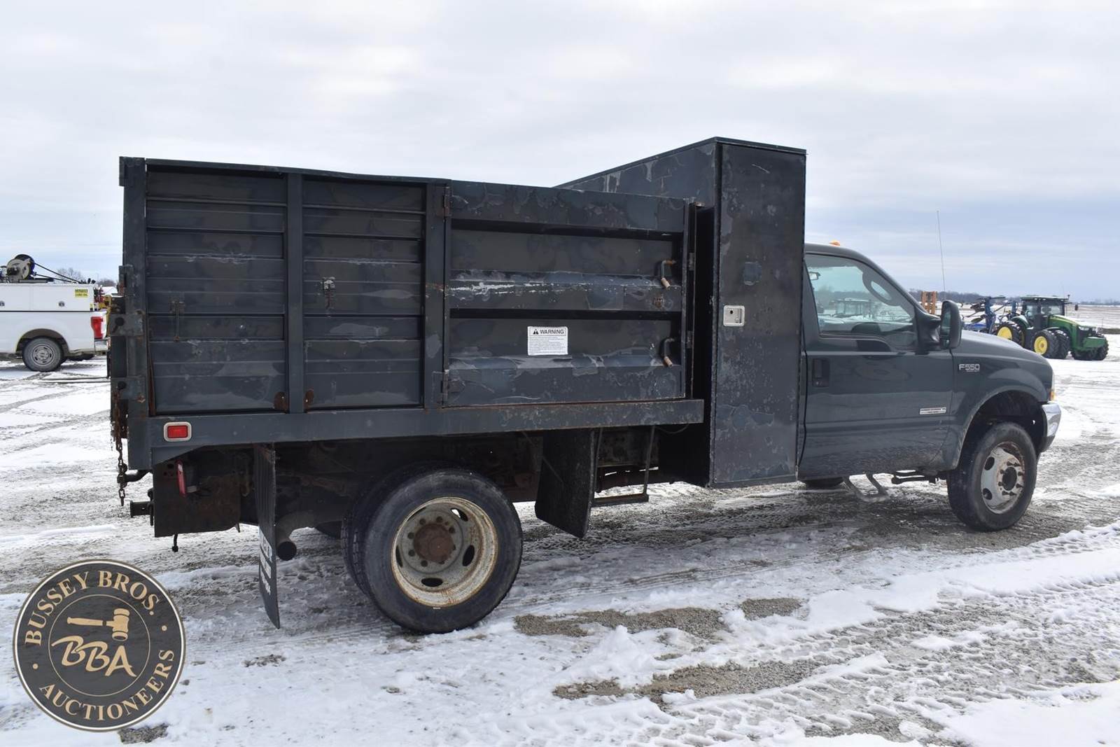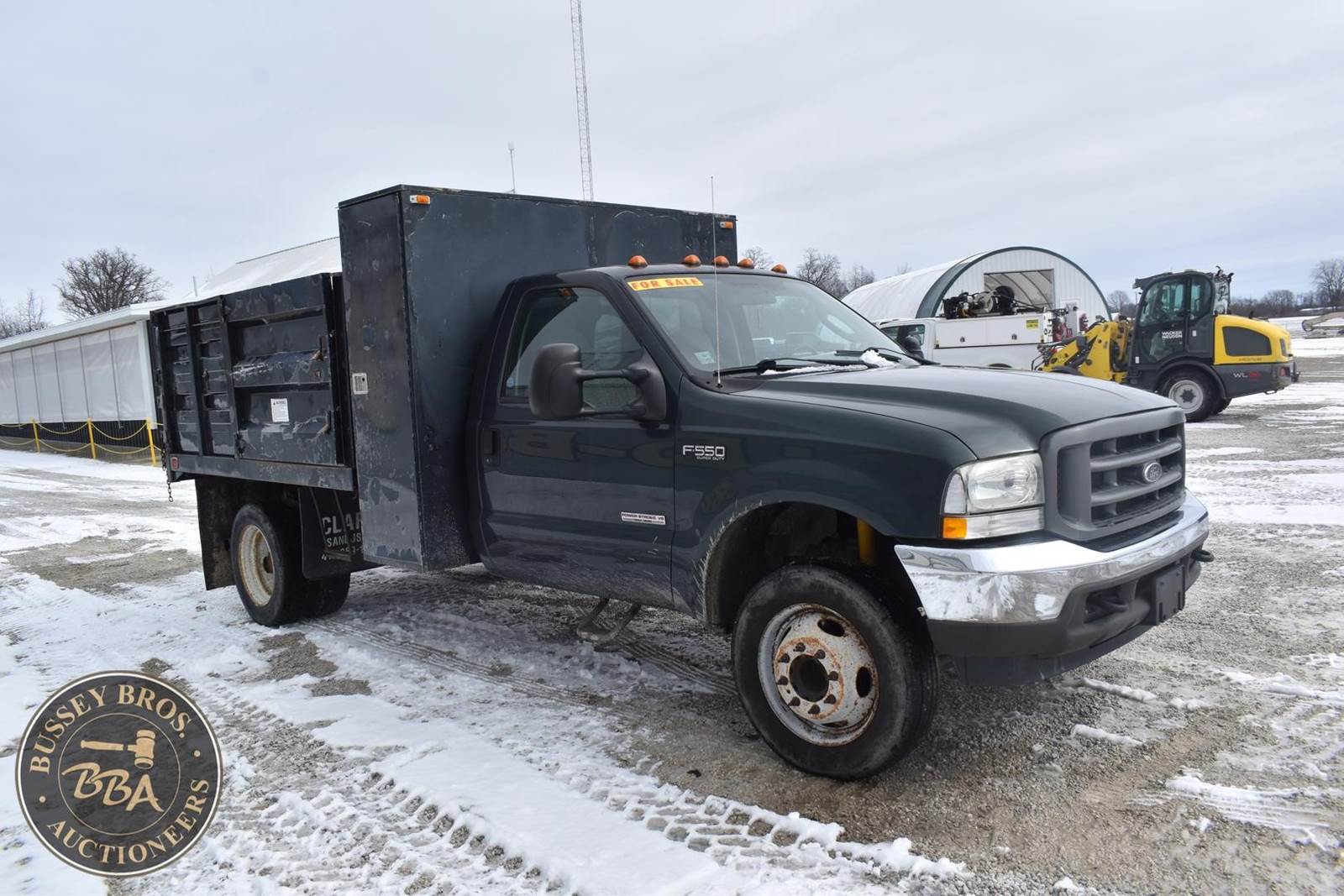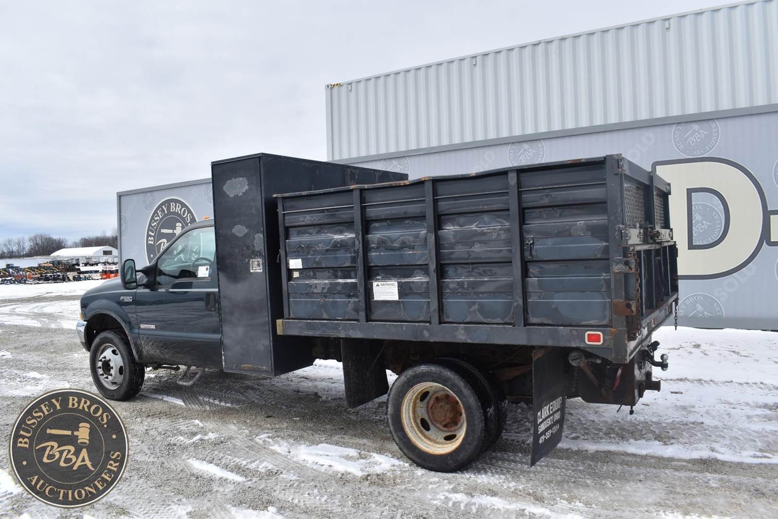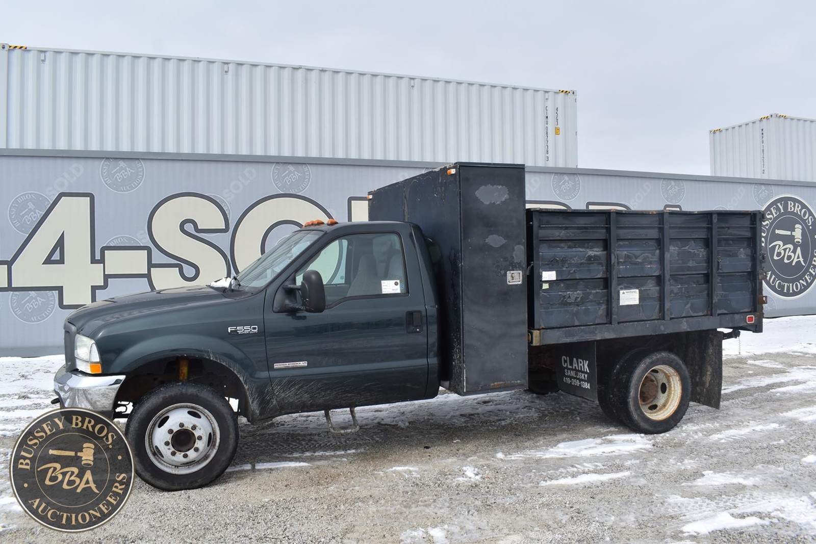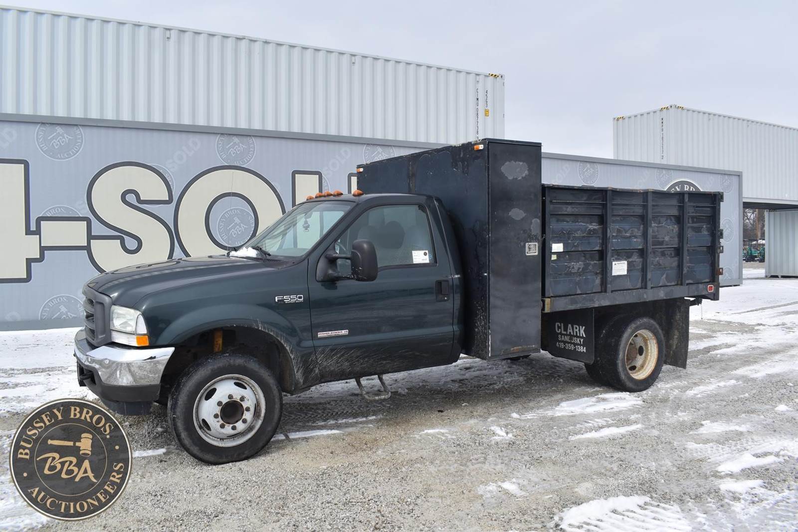 2004 Ford F550 Diesel Dump Truck, 73,405 miles, Power Stroke Turbo diesel Engine, Automatic transmission with overdrive, XL Décor package, Air conditioning, Cross through backpack tool box, Rugby 9’ landscape body with 4’ curb side service door and 7 ton electric hoist, 19,000lb gvwr package, VIN#: 1FDAF56P04EB60582; (***DEALER OWNED TITLE GUARANTEED BY CONSIGNOR, ALLOW 30 BUSINESS DAYS FOR PROCESSING** $25 TITLE FEE APPLIES***)