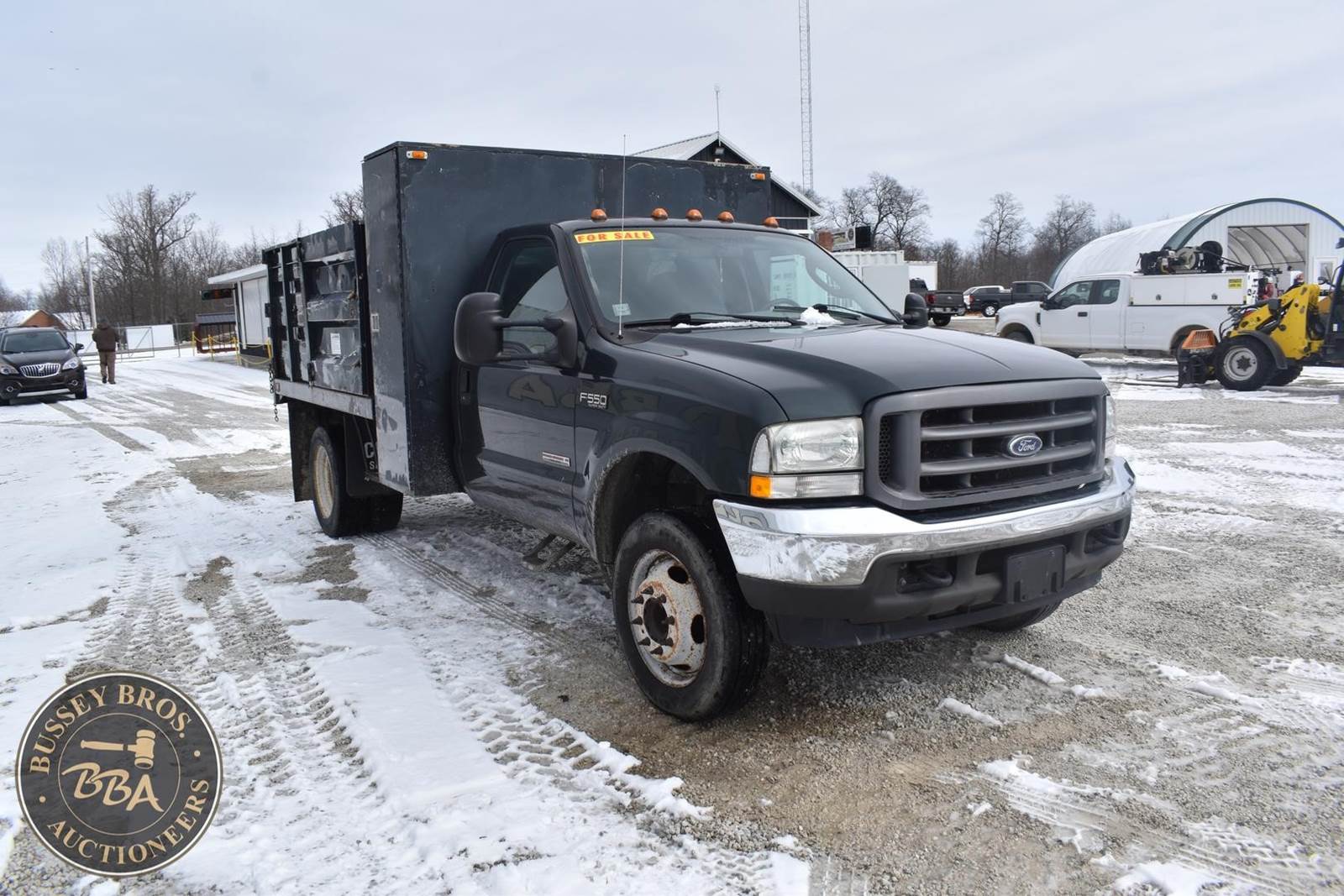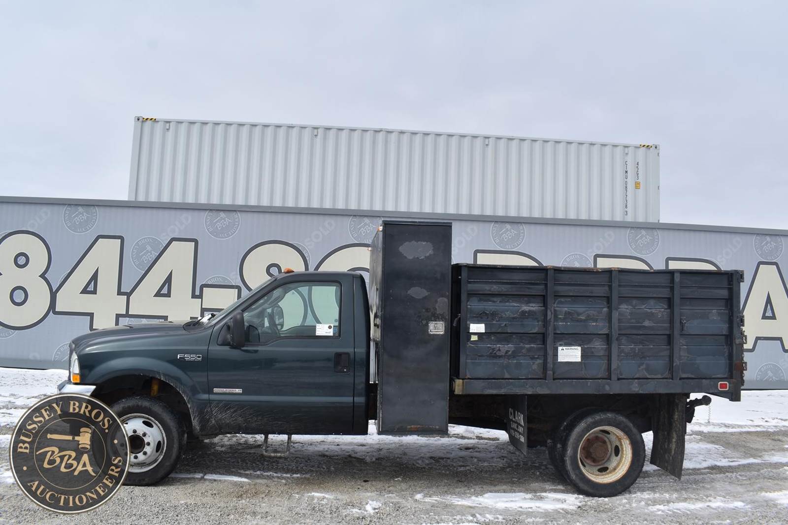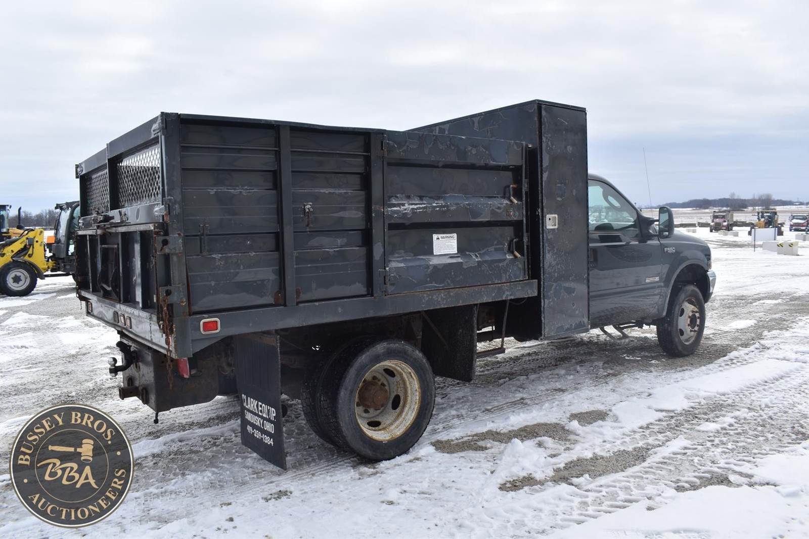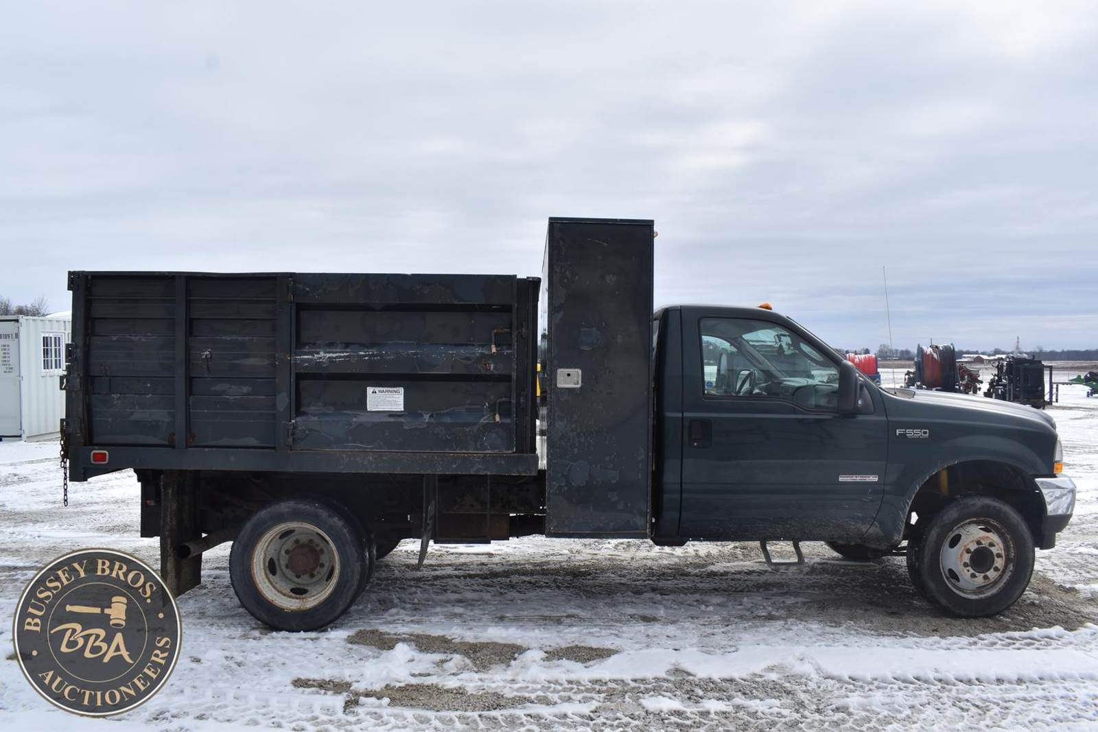 2004 Ford F550 Diesel Dump Truck, 73,405 miles, Power Stroke Turbo diesel Engine, Automatic transmission with overdrive, XL Décor package, Air conditioning, Cross through backpack tool box, Rugby 9’ landscape body with 4’ curb side service door and 7 ton electric hoist, 19,000lb gvwr package, VIN#: 1FDAF56P04EB60582; (***DEALER OWNED TITLE GUARANTEED BY CONSIGNOR, ALLOW 30 BUSINESS DAYS FOR PROCESSING** $25 TITLE FEE APPLIES***)