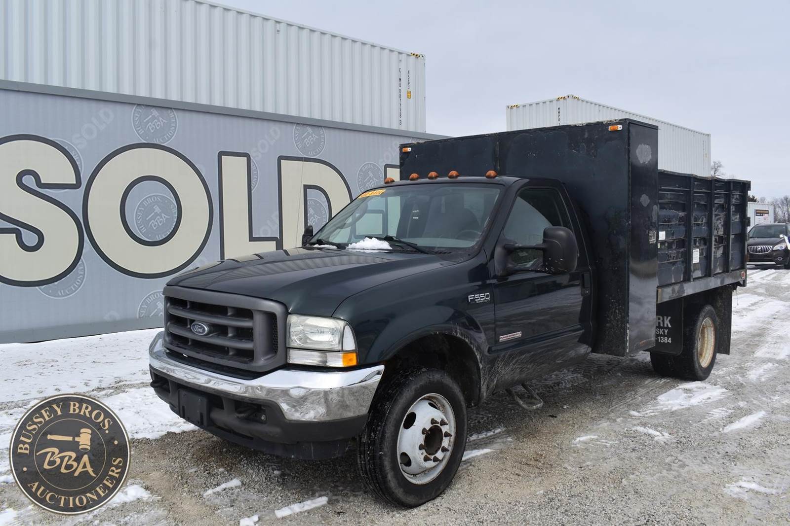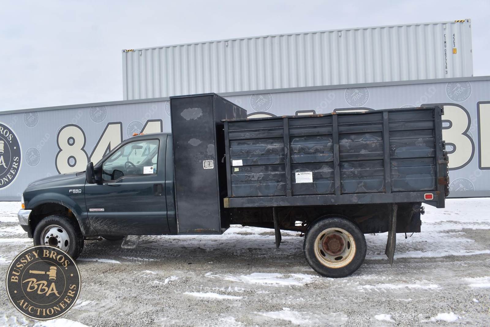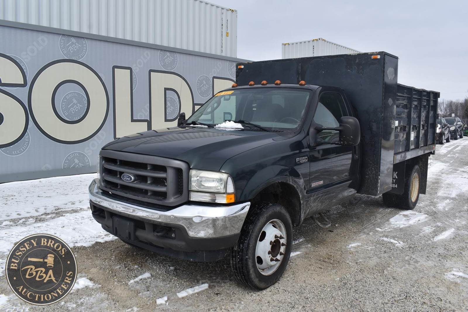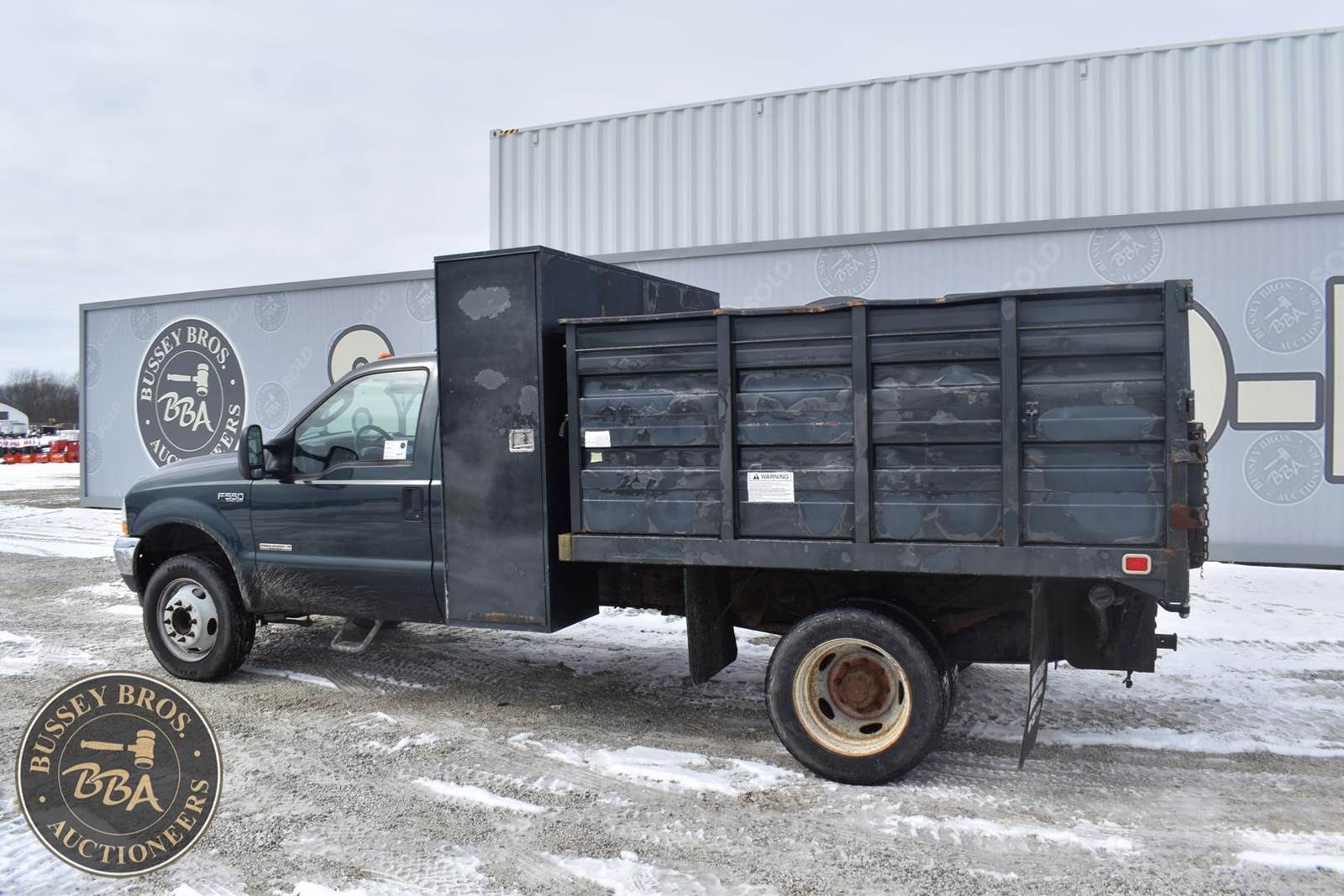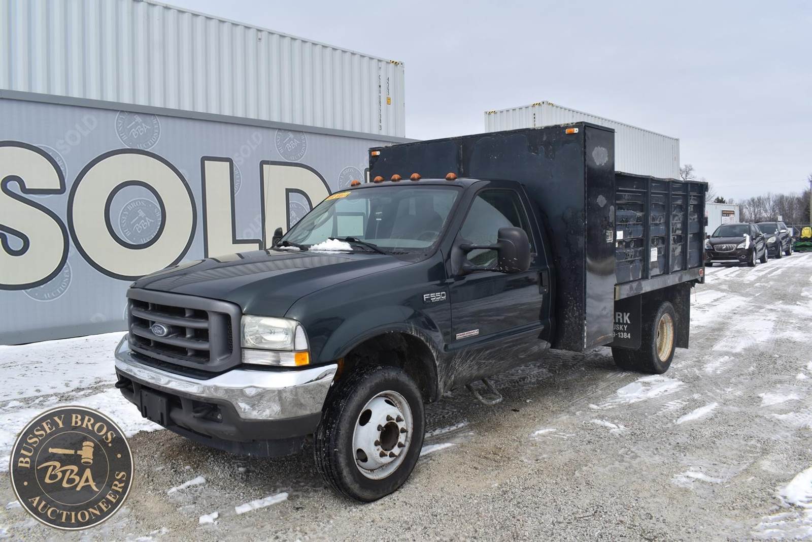 2004 Ford F550 Diesel Dump Truck, 73,405 miles, Power Stroke Turbo diesel Engine, Automatic transmission with overdrive, XL Décor package, Air conditioning, Cross through backpack tool box, Rugby 9’ landscape body with 4’ curb side service door and 7 ton electric hoist, 19,000lb gvwr package, VIN#: 1FDAF56P04EB60582; (***DEALER OWNED TITLE GUARANTEED BY CONSIGNOR, ALLOW 30 BUSINESS DAYS FOR PROCESSING** $25 TITLE FEE APPLIES***)
