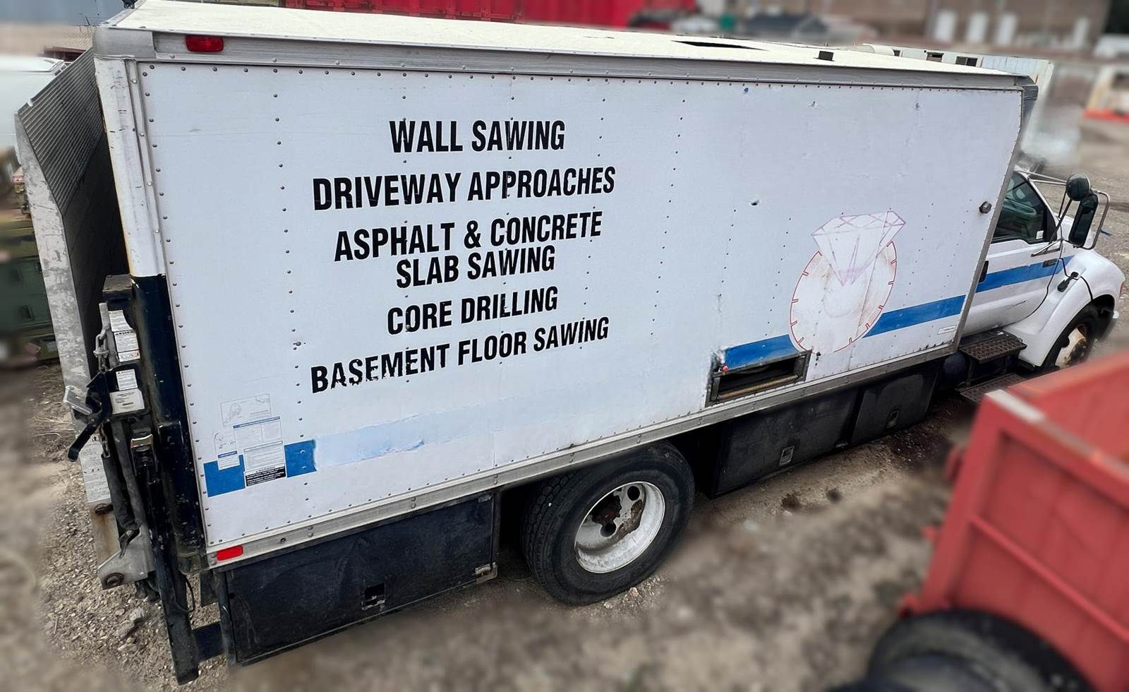 2004 Ford F-650 SD medium duty cube van with hydraulic "Lift Platform", automatic transmission, 250,000 miles, Cat Diesel Engine, 210 HP, GVWR 26,000 lbs, 8500lbs front, 17,500 rear. 45 gal fuel tank, 2000 lb tommy gate platform lift gate measurements 89″×55″ + 12″ taper, aluminum extruded platform, hydraulic and roller/chain drive system. Concrete saw equipment motors and tanks not include but can be purchased separately. new rebuilt allison transmission installed this year, Financing Available, Videos available, Call for more details.