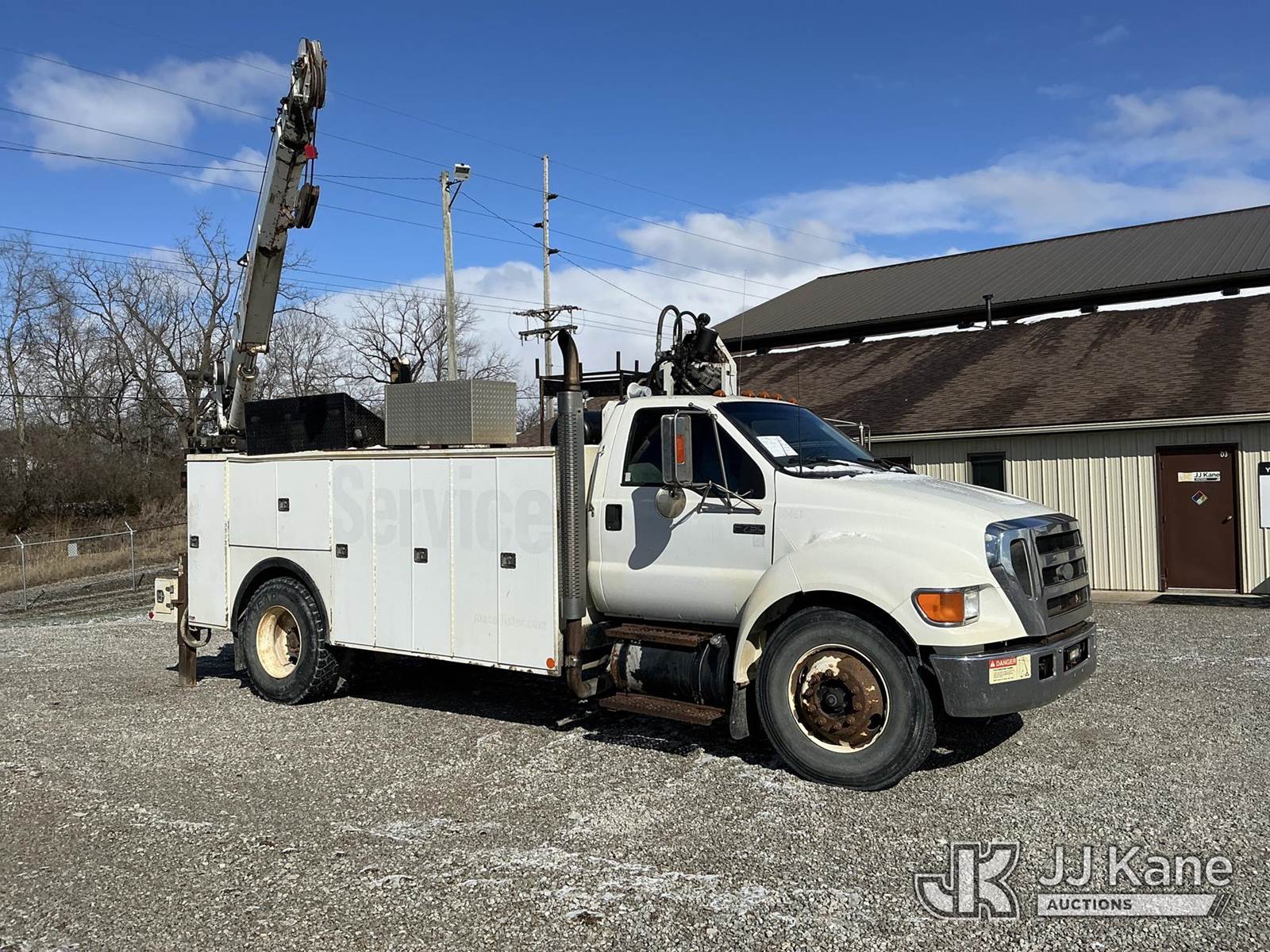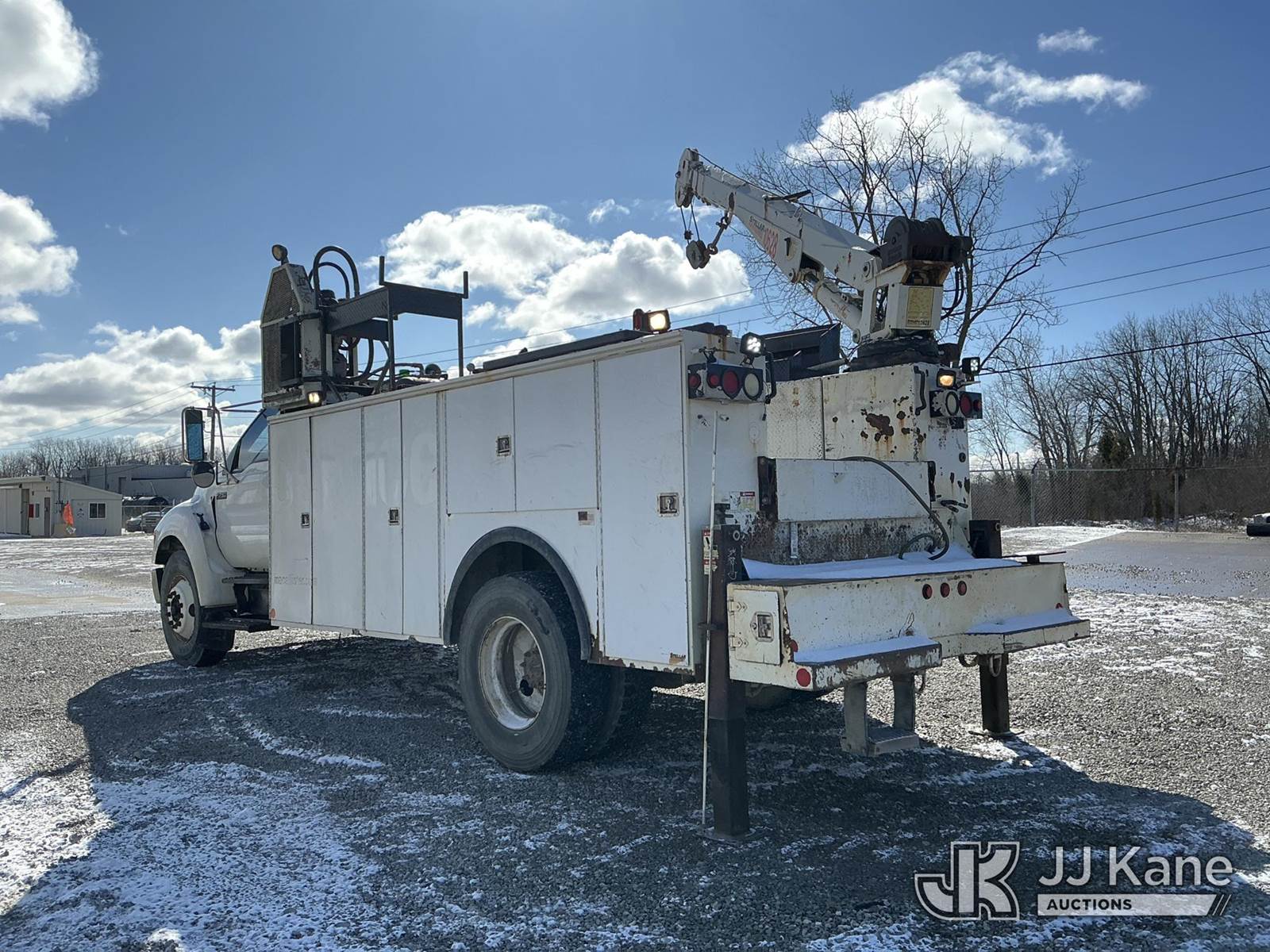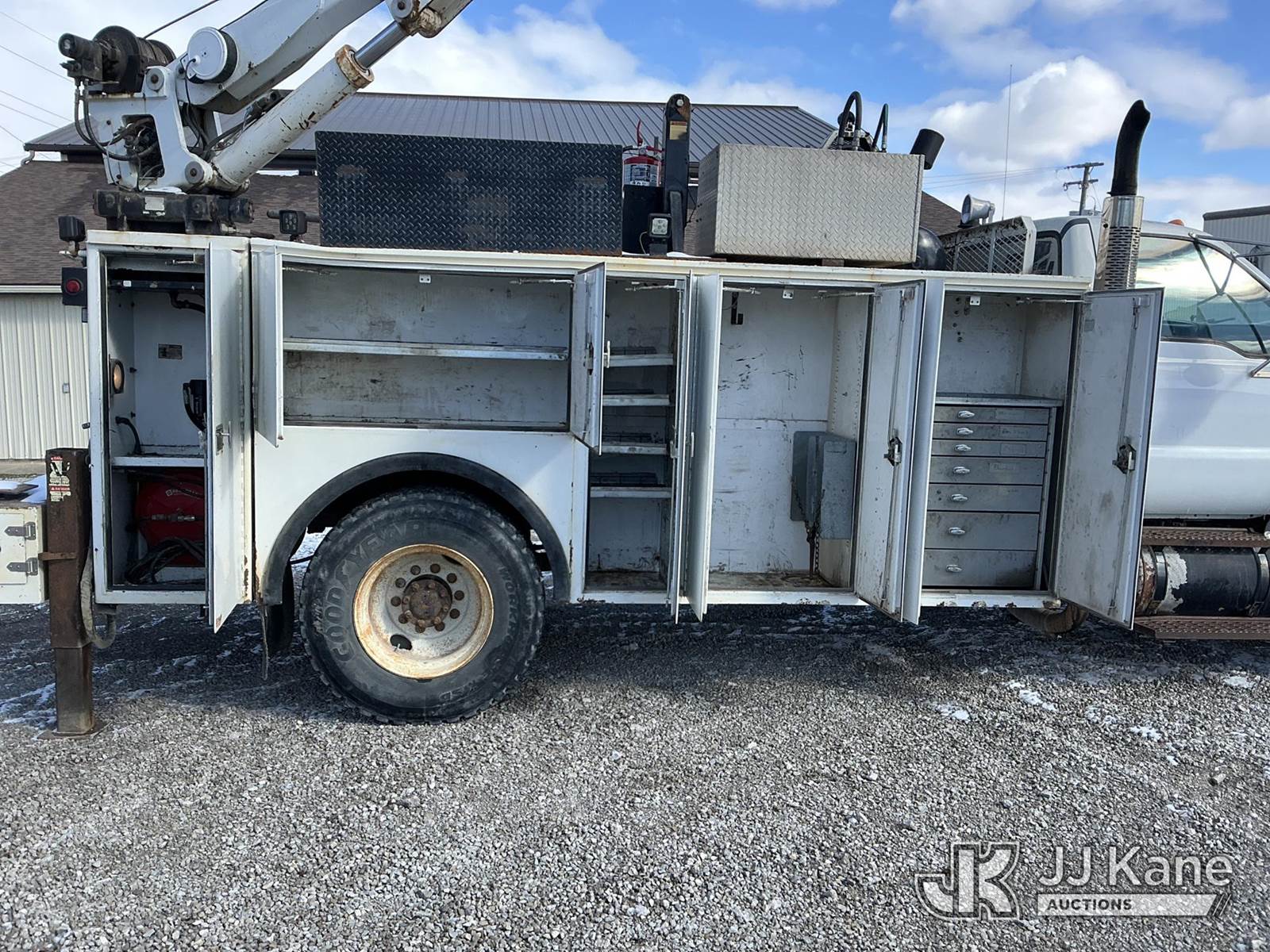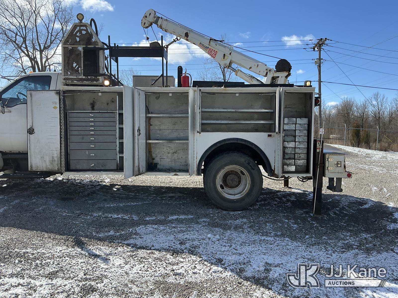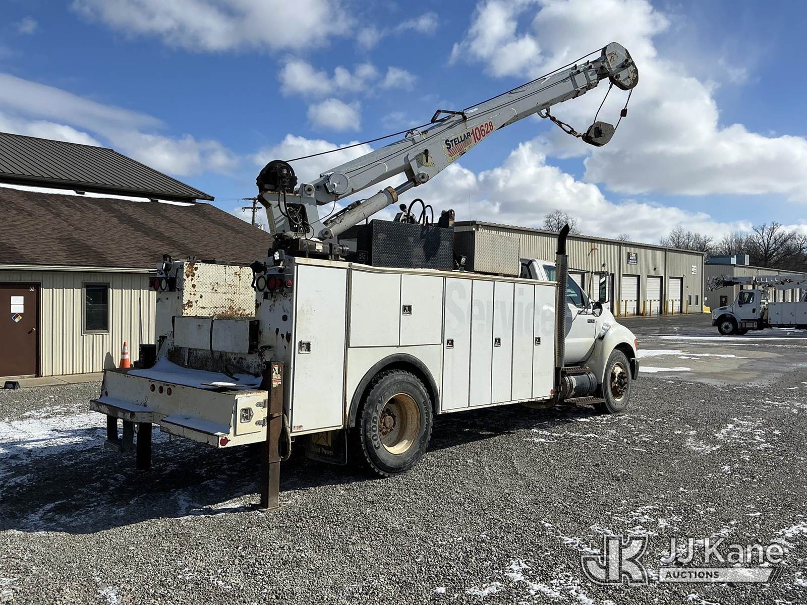 2004 Ford F-750 Regular Cab 2WD DRW Mechanics Service Truck, 7.2L L6 DIESEL 7-spd, A/C, with Stellar 10,000 cap. crane & air compressor, (Exempt from Odometer Disclosure - Reads 269,088 miles) (Runs, Moves & Upper Operates) (Compressor Leaking Oil, Rust/Paint Damage) This is a Titled Item NOTE: This unit is being sold AS IS/WHERE IS via Timed Auction and is located in Fort Wayne, IN. Inspection & preview days for this unit are the 2 business days prior to the first day of items closing for this auction, item is located at 3020 Commercial Rd Fort Wayne, IN 46809 and hours of operations are 8a-4p. For pre-sale questions, please contact Eric Mcintosh @ (260) 205-2483 (Buyer is responsible for removal. Assistance by consignor or JJ Kane Auctions is not assured.)