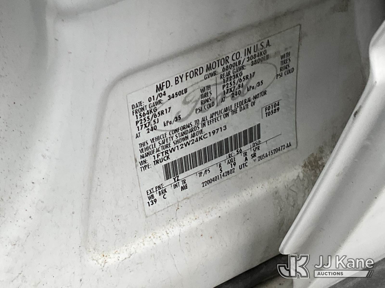 2004 Ford F150 Crew-Cab Pickup Truck, 8-cyl gas, Auto, RWD, A/C, (Exempt from Odometer Disclosure - Reads 160,853 miles) (Runs & Moves) (Bad Paint, Brake Light On) This is a Titled Item NOTE: This unit is being sold AS IS/WHERE IS via Timed Auction and is located in Salt Lake City, UT. Inspection & preview days for this unit are the 2 business days prior to the first day of items closing for this auction, item is located at 2353 N Redwood Rd Salt Lake City, UT 84116 and hours of operations are 8a-4p. Titles executed exactly as bidder registered. Ensure your name and/or business name and address in JJ Kane and/or ProxiBid is correct before bidding. For pre-sale questions, please contact Office Staff @ (801) 519-0123. (Buyer is responsible for removal. Assistance by consignor or JJ Kane Auctions is not assured.)