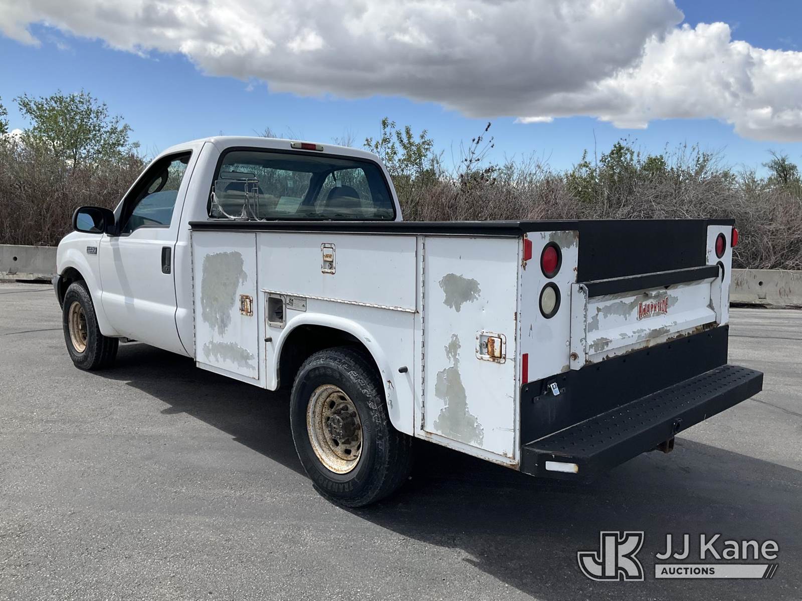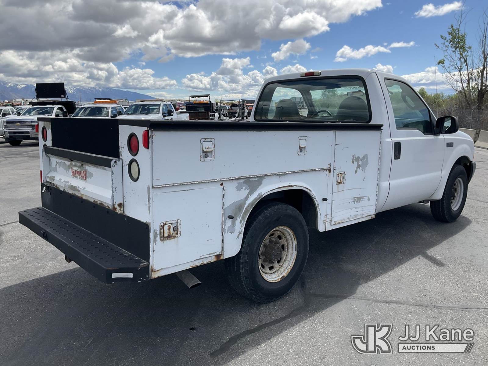 2004 Ford F250 Service Truck, 8-cyl gas, Auto, A/C, (Exempt from Odometer Disclosure - Reads 102,986 miles) (Runs & Moves) (ABS Light On, Paint Damage) This is a Titled Item NOTE: This unit is being sold AS IS/WHERE IS via Timed Auction and is located in Salt Lake City, UT. Inspection & preview days for this unit are the 2 business days prior to the first day of items closing for this auction, item is located at 2353 N Redwood Rd Salt Lake City, UT 84116 and hours of operations are 8a-4p. Titles executed exactly as bidder registered. Ensure your name and/or business name and address in JJ Kane and/or ProxiBid is correct before bidding. For pre-sale questions, please contact Office Staff @ (801) 519-0123. (Buyer is responsible for removal. Assistance by consignor or JJ Kane Auctions is not assured.)