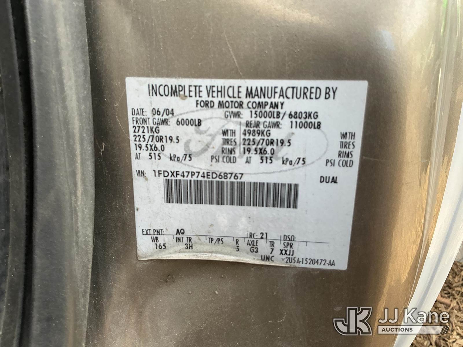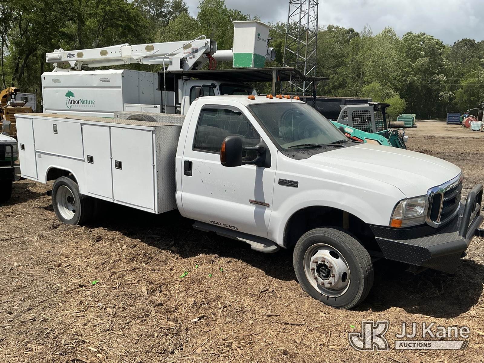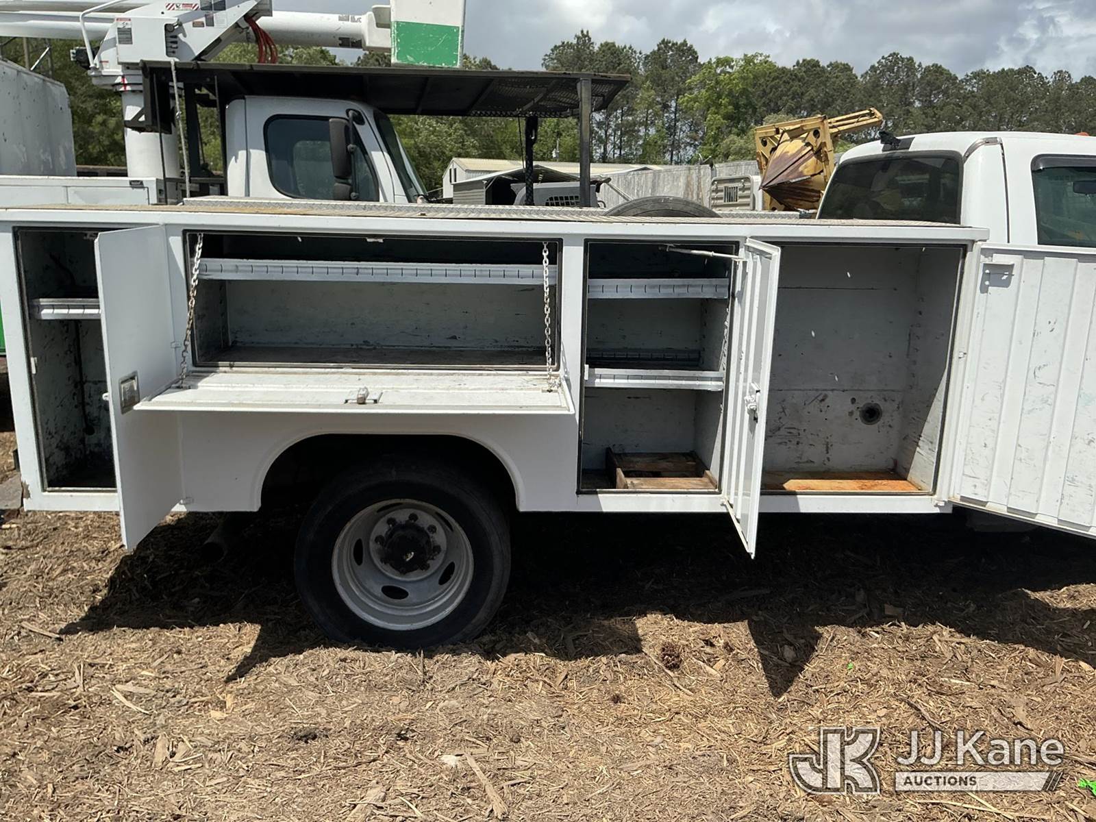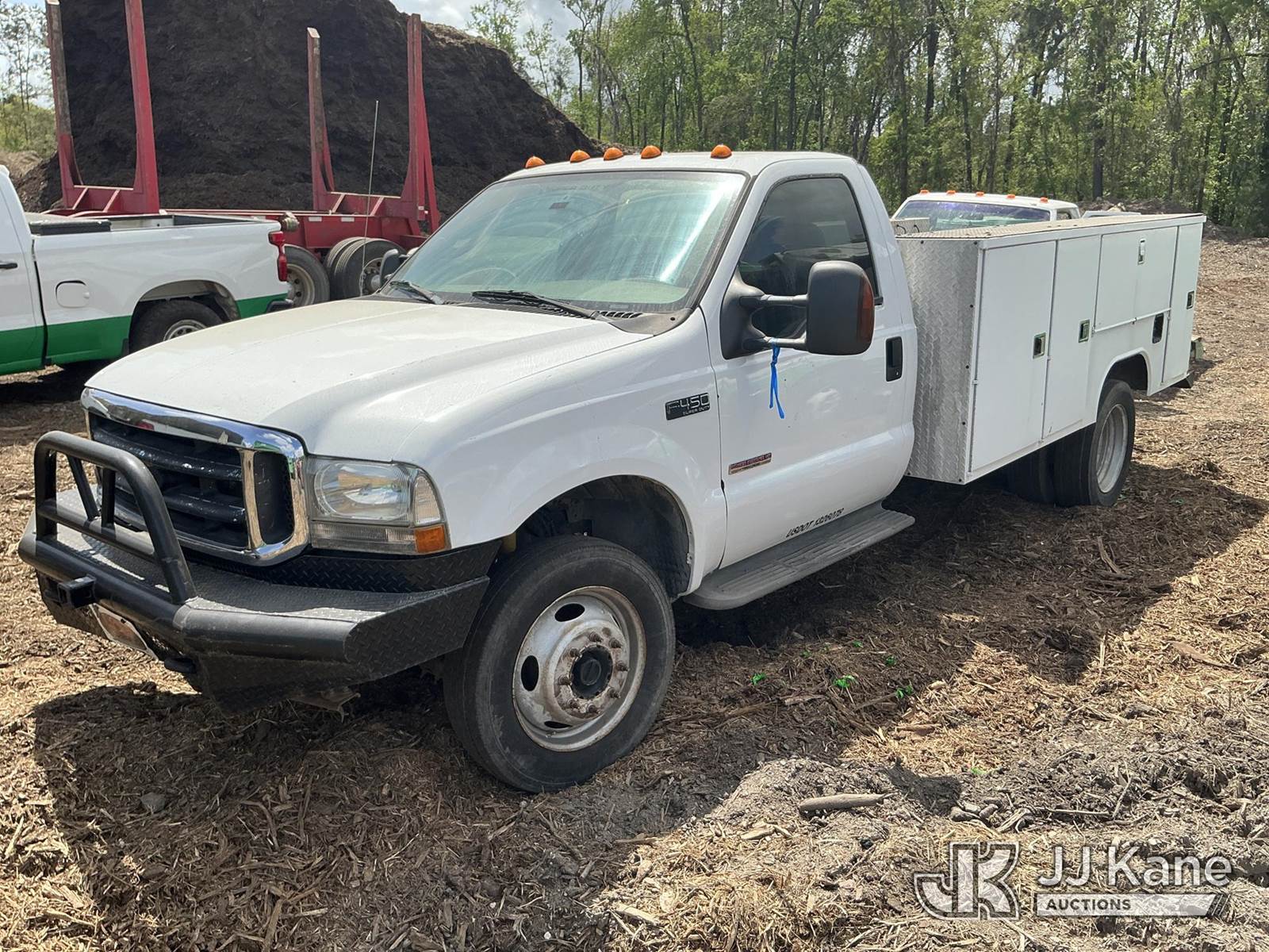 2004 Ford F450 4x4 Service Truck, 6.0L diesel, 6-spd, A/C, with grill guard, (Exempt from Odometer Disclosure - Reads 331,844 miles) (Runs & Moves) (Seller States: Needs New 3rd Gear) This is a Titled Item NOTE: This unit is being sold AS IS/WHERE IS via Timed Auction and is located in Ridgeland, SC. For more information & removal arrangements please contact Pete Klimek @ 843-323-6538. (Buyer is responsible for removal. Assistance by consignor or JJ Kane Auctions is not assured.)