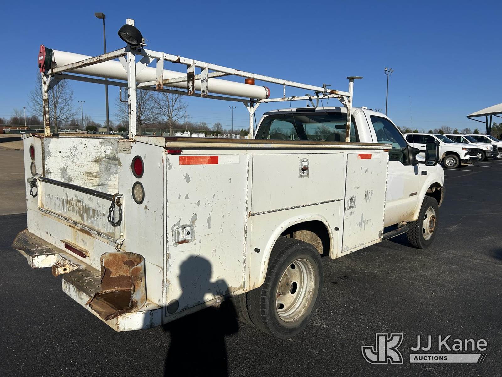2004 Ford F450 Service Truck, 6.0L V8 OHV 32V TURBO DIESEL, Auto, RWD, A/C, (Exempt from Odometer Disclosure - Reads 204,671 miles) (Runs & Moves) This is a Titled Item NOTE: This unit is being sold AS IS/WHERE IS via Timed Auction and is located in Olive Branch, MS. For more information & removal arrangements please contact Cote Schaffers @ 205-789-9015 (Buyer is responsible for removal. Assistance by consignor or JJ Kane Auctions is not assured.)