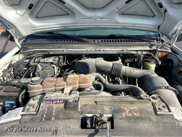 2000 Ford F450 Super Duty flatbed truck, Miles: 110,854 on odometer, VIN: 1FDXF46S7YED76332, Engine, Displacement: 6.8L, Cylinders: 10,...