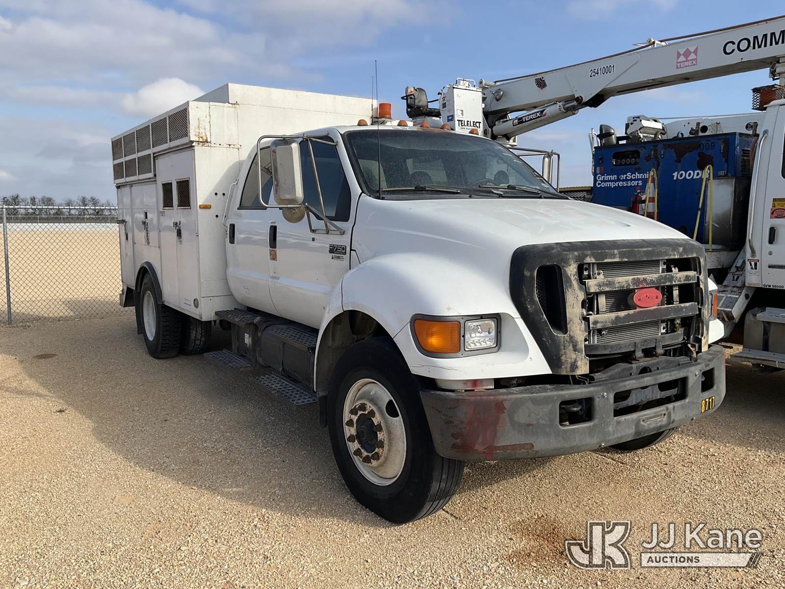 2004 Ford F750 Air Compressor Utility Truck, Cat diesel, Auto, A/C, with Truck Bed Storage, Air Compressor , (Exempt from Odometer Disclosure - Reads 136,121 miles) (Not Running, Condition Unknown) (Energizes with Jump Pack But Dies Immediately) This is a Titled Item NOTE: This unit is being sold AS IS/WHERE IS via Timed Auction and is located in Marion, TX. Inspection & preview days for this unit are the 2 business days prior to the first day of items closing for this auction, item is located at 3292 S Santa Clara Rd Marion, TX 78124 and hours of operations are 8a-4p. For pre-sale questions, please contact Brian Jarrell @ 210-540-3147. (Buyer is responsible for removal. Assistance by consignor or JJ Kane Auctions is not assured.)