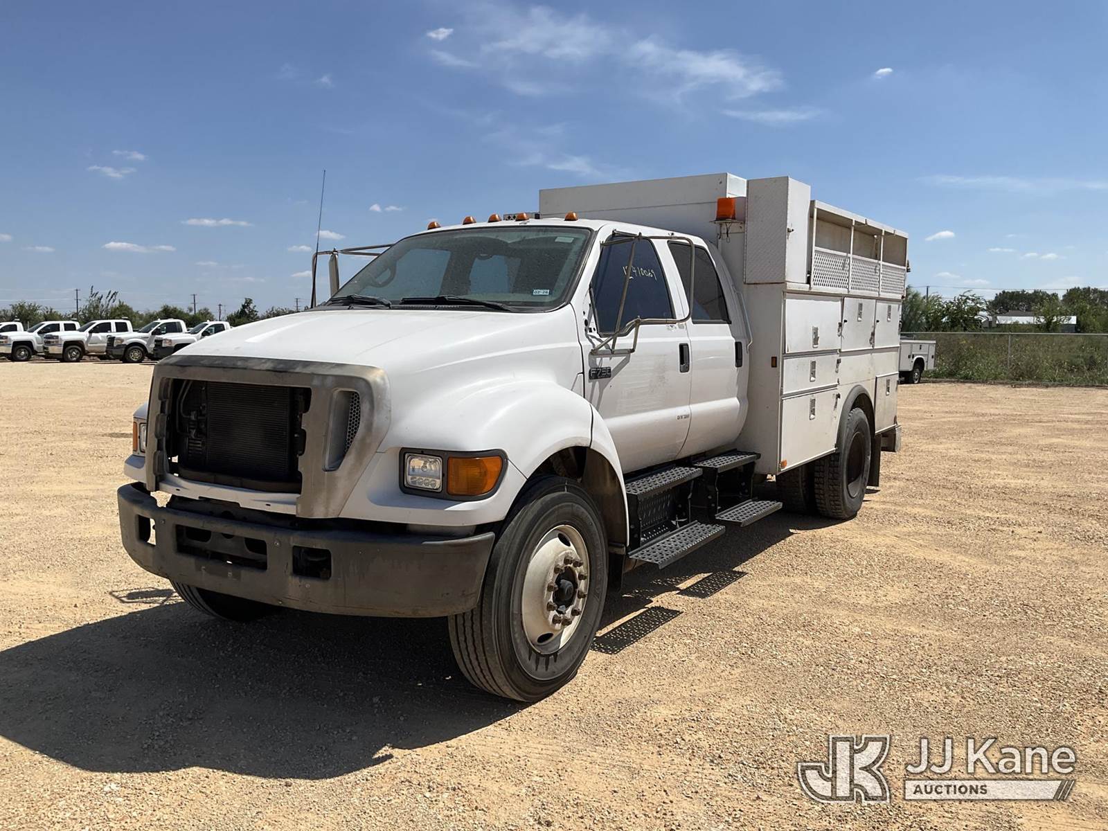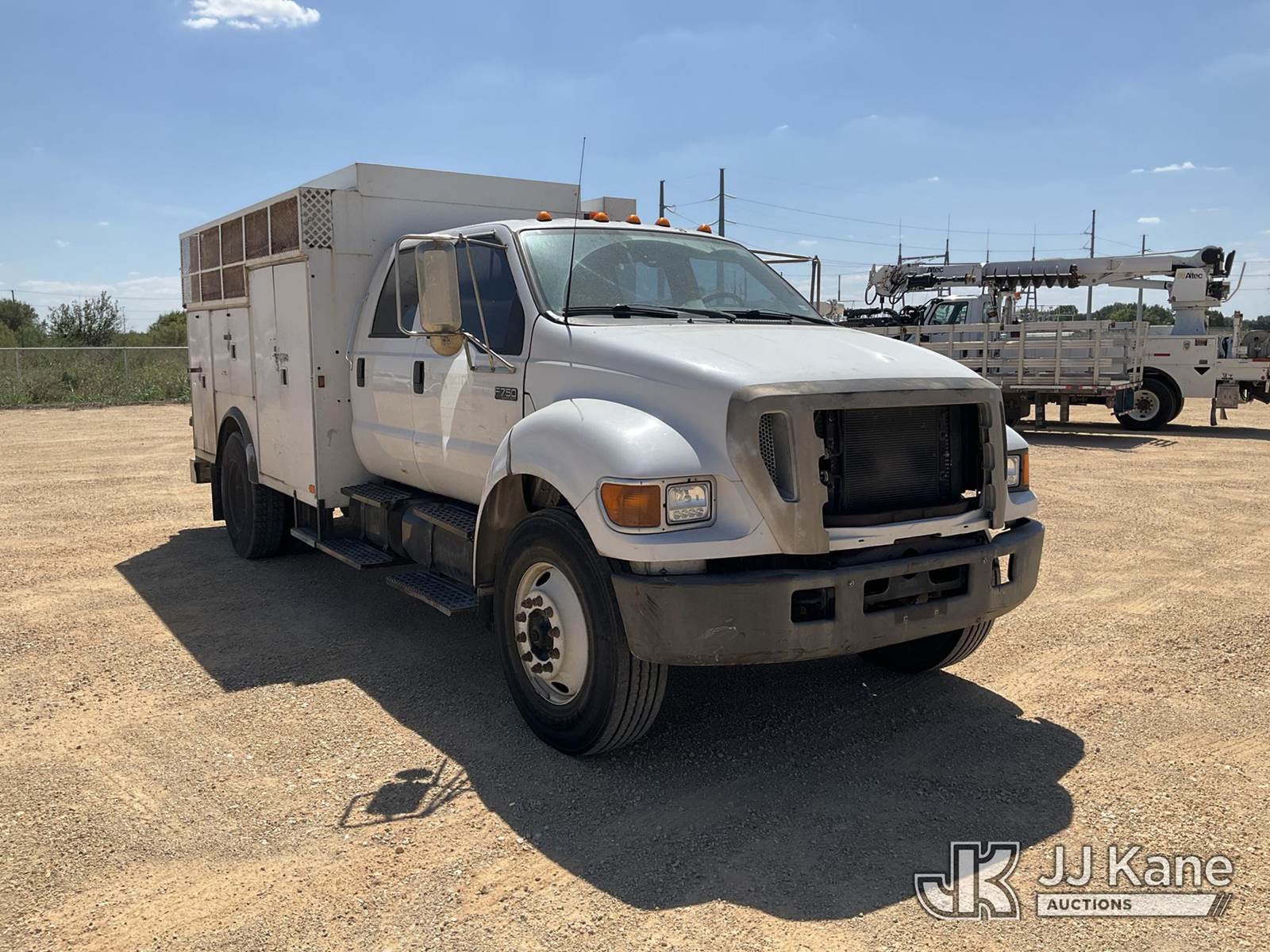 2004 Ford F750 Super Duty Crew Cab DRW Utility Truck, 7.2L Auto, 4X2, diesel, with Grimmer-Schidmt Air Compressor, (Exempt from Odometer Disclosure - Reads 139,795 miles) (Runs & Moves) (Air Compressor Does Not Operate, Rear Wheels Have Cracks ) This is a Titled Item NOTE: This unit is being sold AS IS/WHERE IS via Timed Auction and is located in Marion, TX. For more information & removal arrangements please contact Brian Jarrell @ 210-540-3147. (Buyer is responsible for removal. Assistance by consignor or JJ Kane Auctioneers is not assured.)