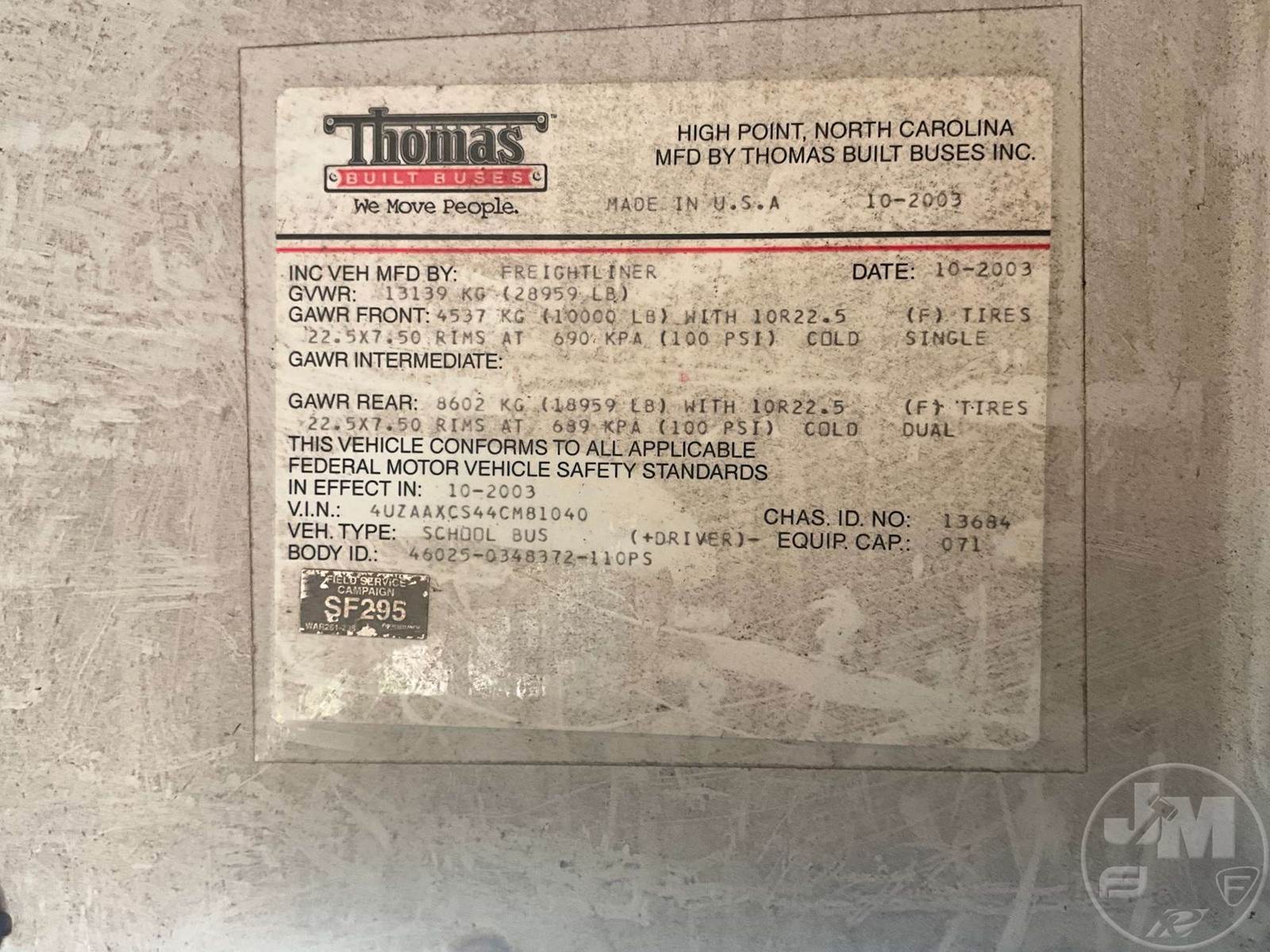 BUS, DIESEL ENGINE, 8 CYL, AUTOMATIC TRANSMISSION, CRUISE CONTROL, ODOMETER READS: 2125I4, ****INOP****, *** OWNER STATES WAS WRECKED BUT STILL DROVE, NEEDS TIRES AND RIMS******SIMPSON COUNTY SCHOOL DISTRICT EMPLOYEES ARE NOT ELIGIBLE TO BID ON THIS ITEM***