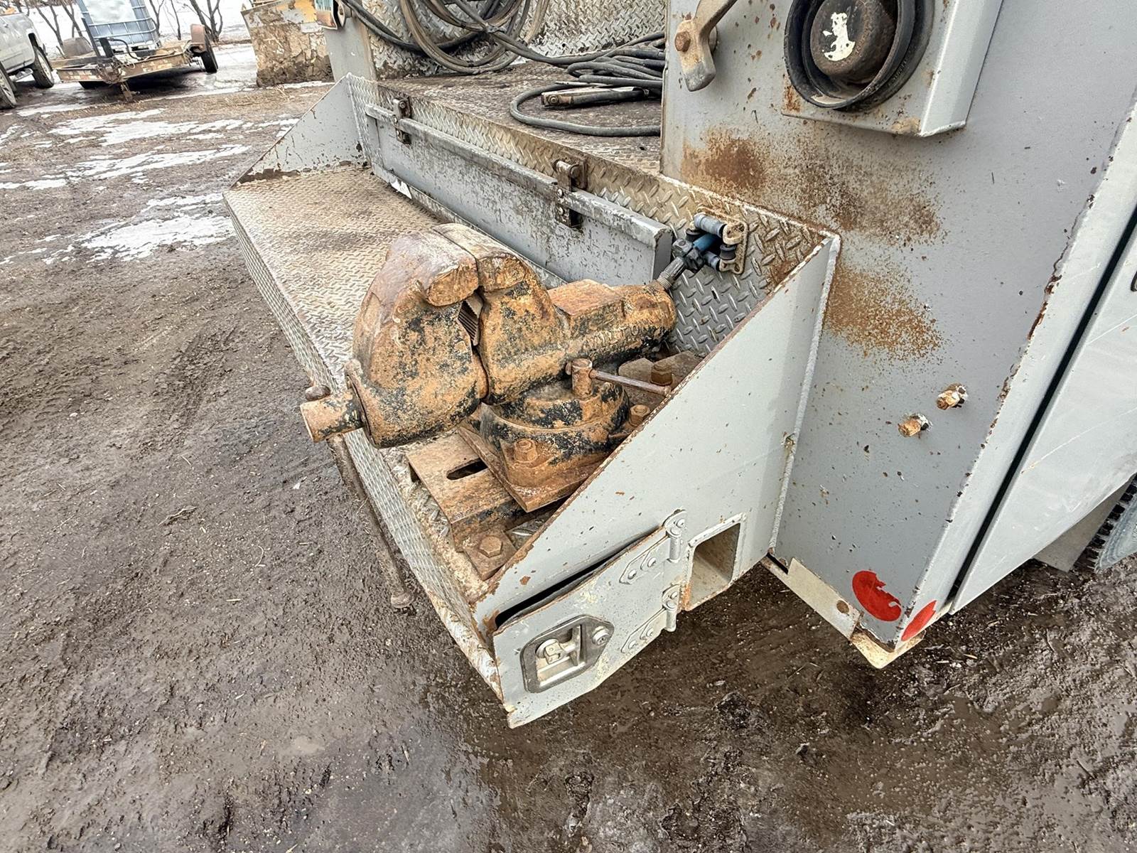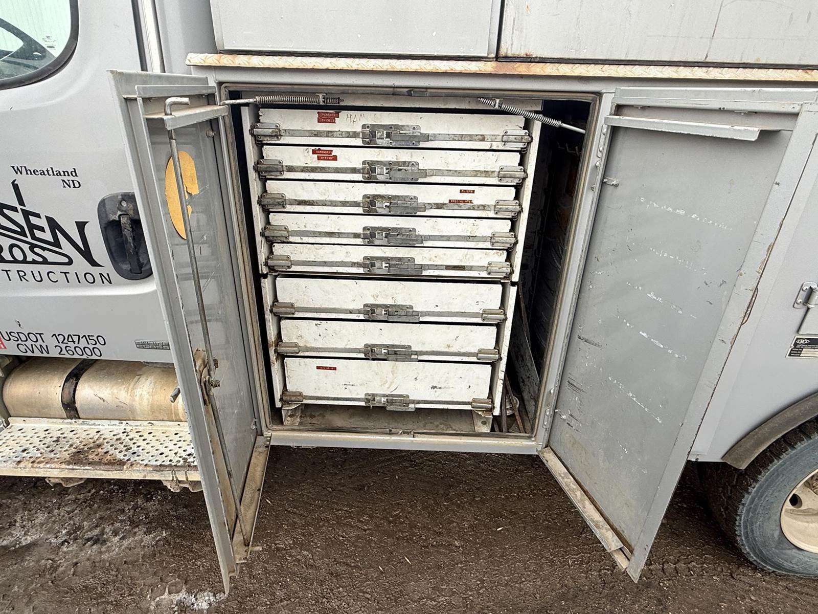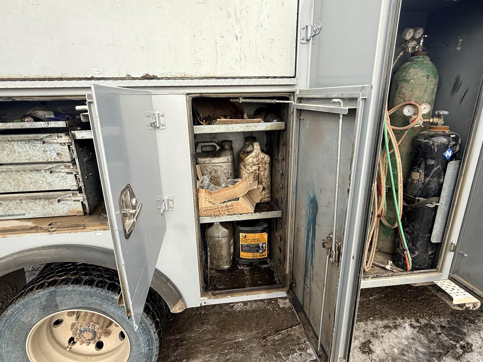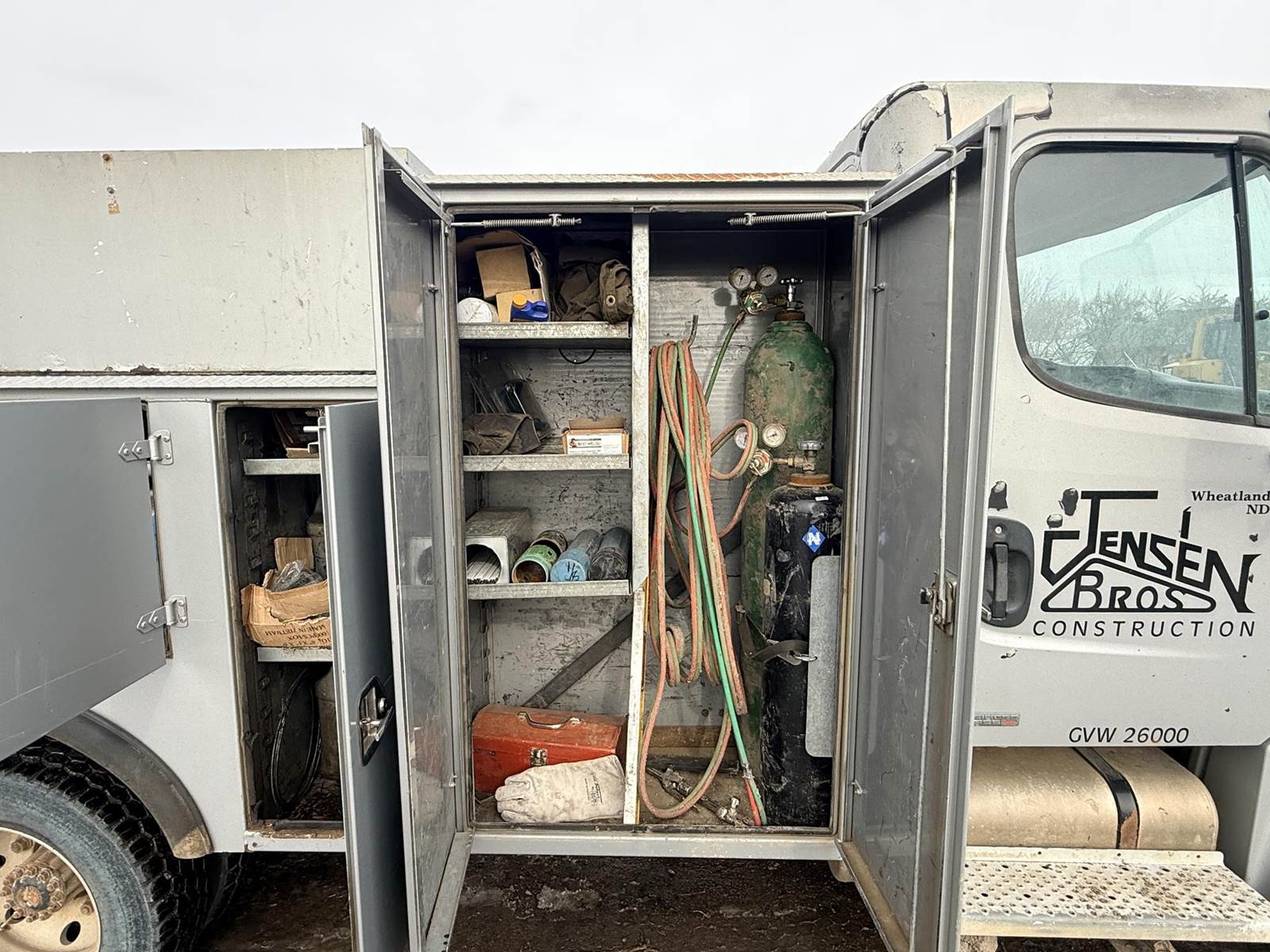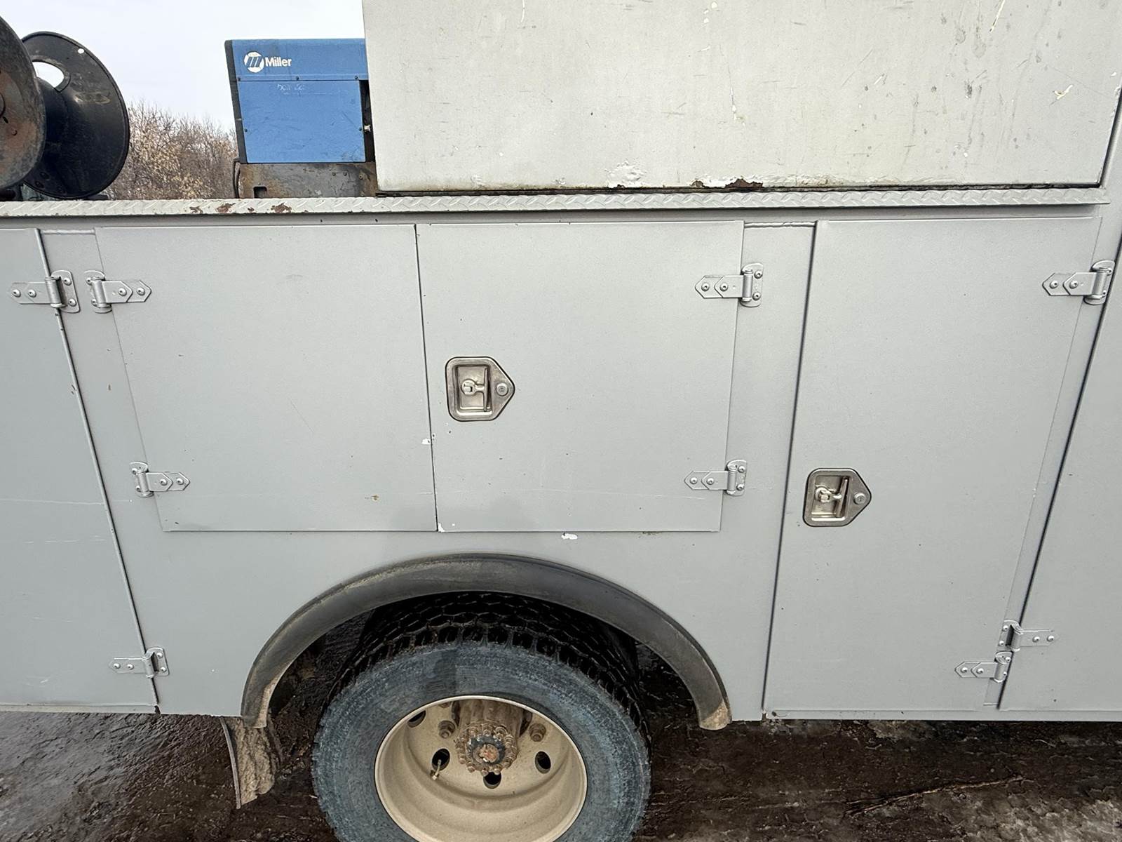 Cat C7 6 Cylinder Turbo Diesel Engine, Automatic Transmission, Spring Ride, 8-Door Service Body, Mechanics Vise, , Air Compressor, Miller Bobcat 255G Welder/Generator Heat, A/C, Radio, Air Ride Driver Seat, 245/70r19.5 Tires