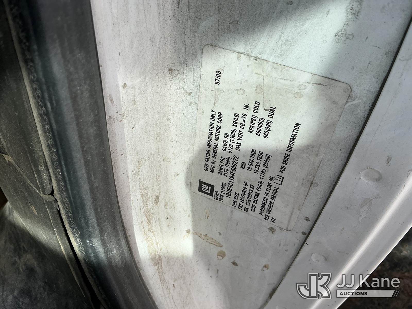 2004 GMC C4C042 Dump Truck, 6.6L Turbo Diesel 4X2, Auto, A/C, with Hyd Dump Bed , (Exempt from Odometer Disclosure - Reads 126,240 miles) (Runs, Moves & Dump Operates) (Check Engine Light On: Condition Unknown) (No Emissions Test Provided, See Bidder Agreement) (Non Drive Away Removal Only: Rear Drivers Side Turn Signal, Reverse Lights Out & ABS Light On ) This is a Titled Item NOTE: This unit is being sold AS IS/WHERE IS via Timed Auction and is located in Fort Lupton, CO. Inspection & preview days for this unit are the 2 business days prior to the first day of items closing for this auction, item is located at 2105 Northland Dr Fort Lupton, CO 80621 and hours of operations are 8a-4p. For pre-sale questions, please contact Dakota Hoffman @ (720) 621-0786. Dealer License Number 47109. (Buyer is responsible for removal. Assistance by consignor or JJ Kane Auctions is not assured.)