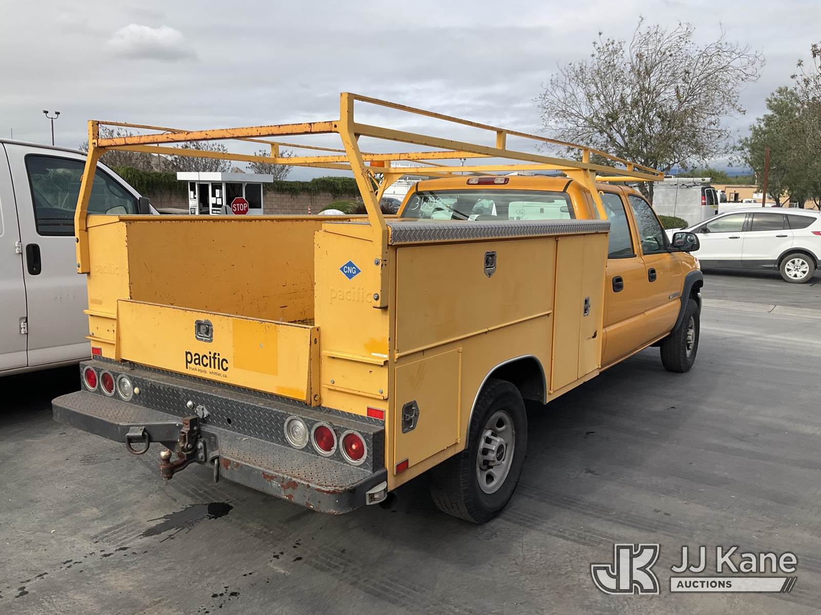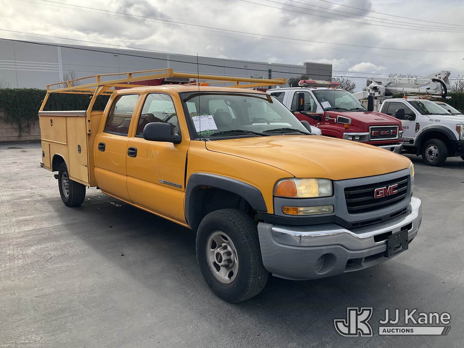 2004 GMC Sierra 2500HD Crew-Cab Service Truck, s/n 1GDHK23U94F248494, 6.0L V8 OHV 16V CNG Only 5-Speed Automatic, 4WD, A/C, with tow package & ladder rack, (Exempt from Odometer Disclosure - Reads 122,289 miles) (Runs & Move) (CNG Tank Expired 2/2019, Horn Does Not Work) (Bidding Restricted to Licensed Vehicle Dealers Only), This is a Titled Item NOTE: This unit is being sold AS IS/WHERE IS via Timed Auction and is located in Jurupa Valley, CA. Inspection & preview days for this unit are the 2 business days prior to the first day of items closing for this auction, item is located at 4510 Muth Way Jurupa Valley, CA 92509 and hours of operations are 8a-4p. For pre-sale questions, please contact please contact Office Staff @ (310) 353-7140. Dealer License Number 45696. (Buyer is responsible for removal. Assistance by consignor or JJ Kane Auctions is not assured.)