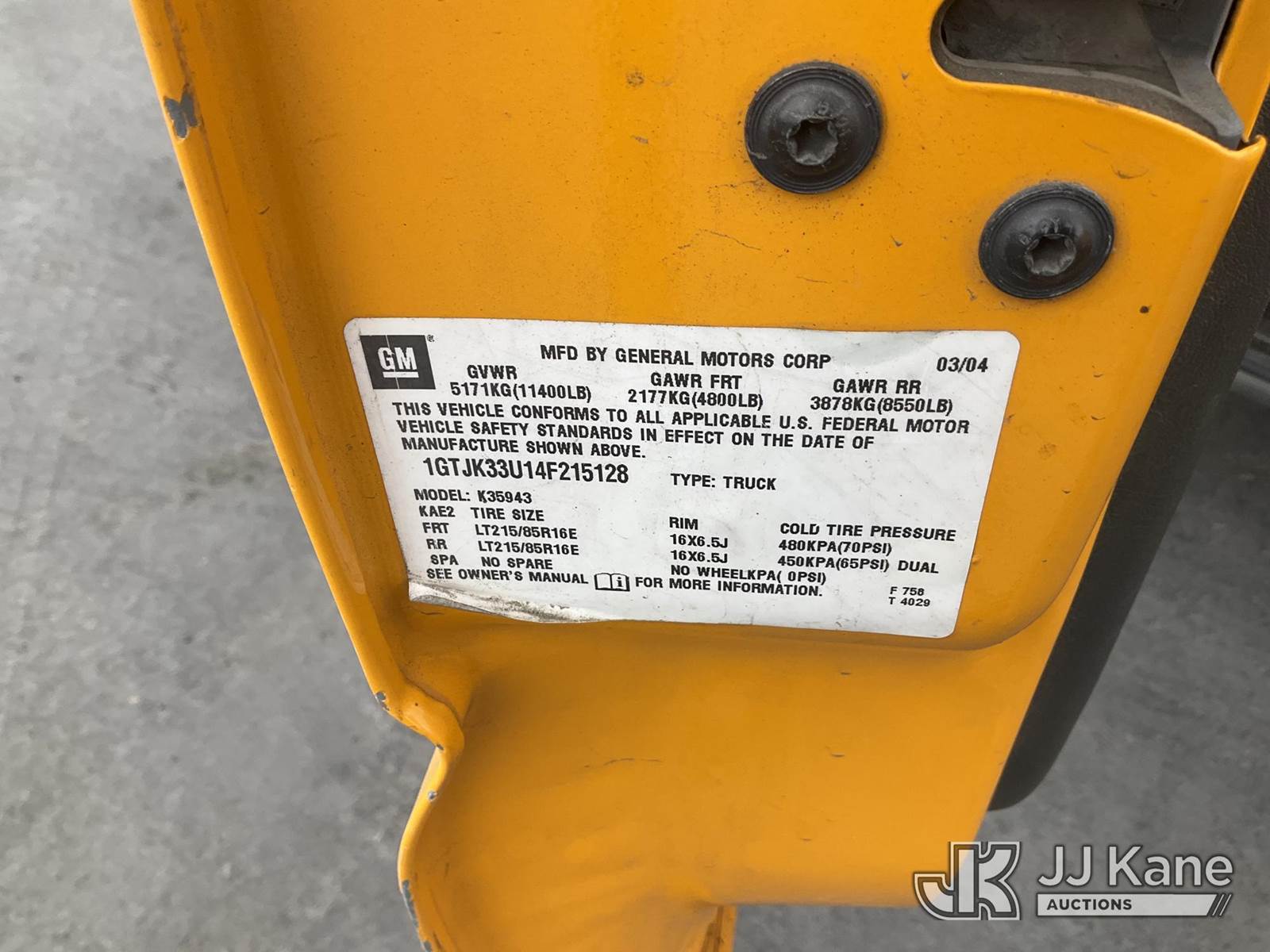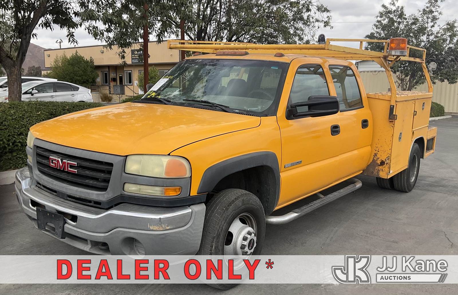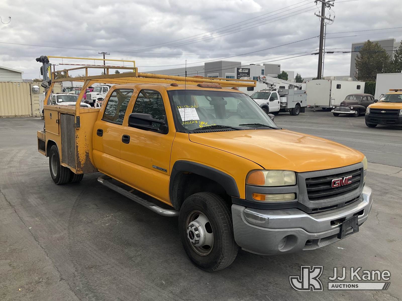 2004 GMC Sierra 3500 Crew-Cab Service Truck, 8-cyl gas, 5-Speed Automatic, 4wd, A/C, with side steps, ladder rack, utility bed, Venturo CE1500FB, (Exempt from Odometer Disclosure - Reads 55,933 miles) (Runs & Moves) (Radiator Broken, Motor Smokes) (Bidding Restricted to Licensed Vehicle Dealers Only), This is a Titled Item NOTE: This unit is being sold AS IS/WHERE IS via Timed Auction and is located in Jurupa Valley, CA. Inspection & preview days for this unit are the 2 business days prior to the first day of items closing for this auction, item is located at 4510 Muth Way Jurupa Valley, CA 92509 and hours of operations are 8a-4p. For pre-sale questions, please contact please contact Office Staff @ (310) 353-7140. Dealer License Number 45696. (Buyer is responsible for removal. Assistance by consignor or JJ Kane Auctioneers is not assured.)