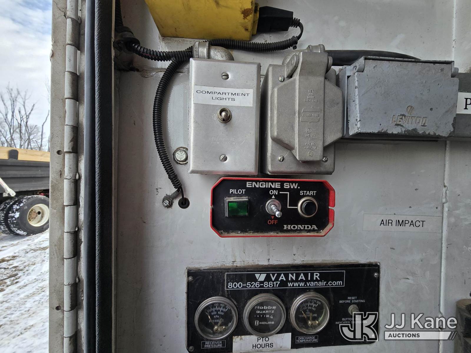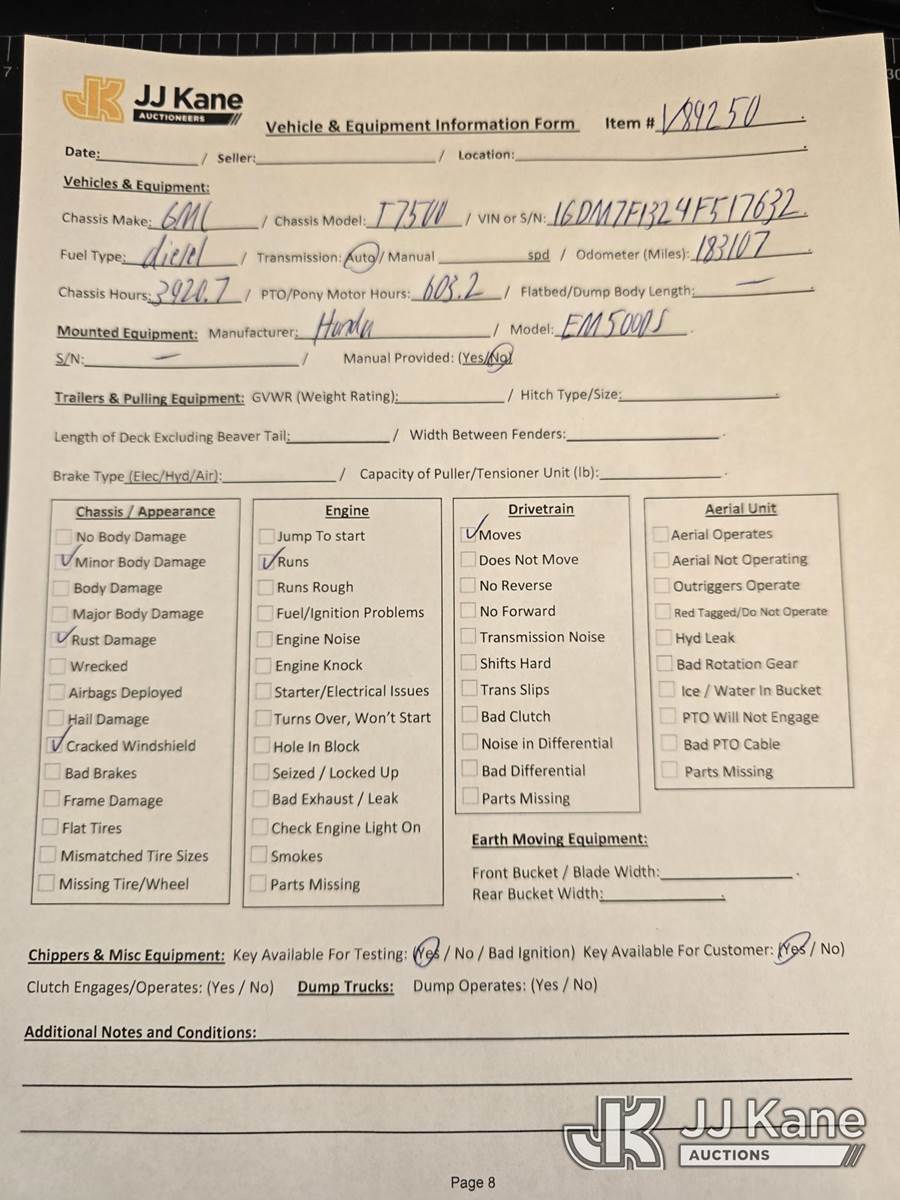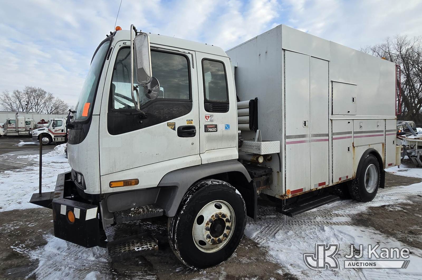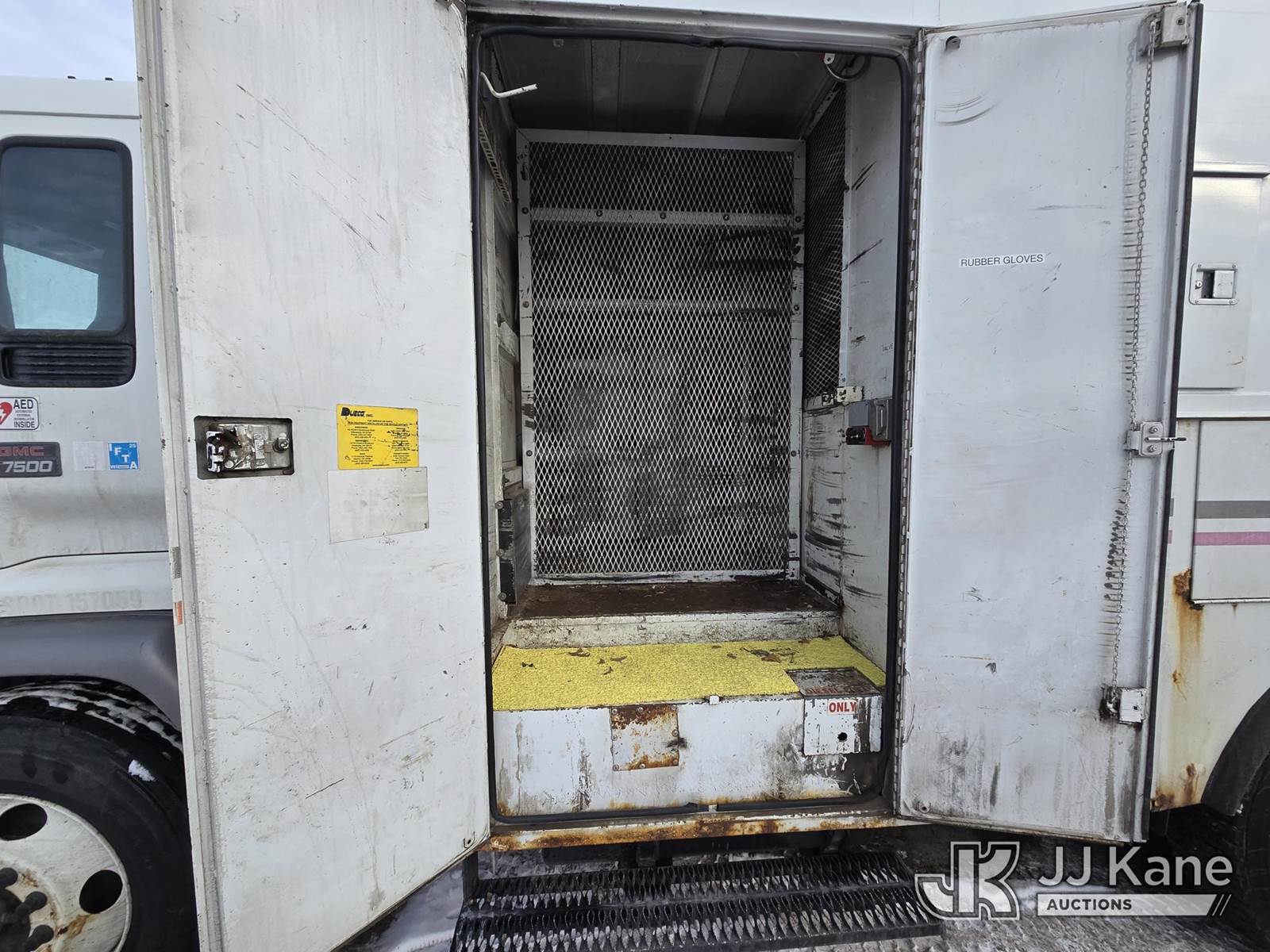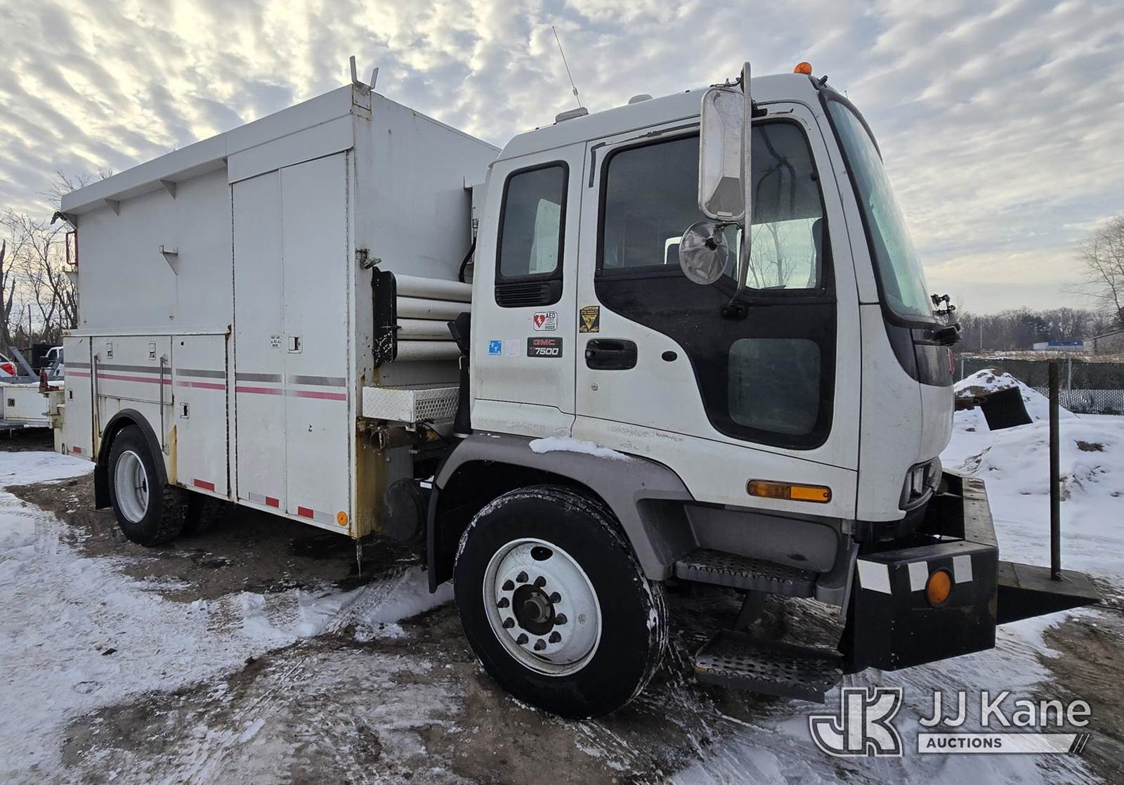 2004 GMC T7500 Air Compressor/Enclosed Utility Truck, 7.8L L6 TURBO DIESEL 4X2, Auto, with Vanair Air Compressor, Honda EM5000S gas generator, (Exempt from Odometer Disclosure - Reads 183,107 miles) (Runs, Moves)(Cracked Windshield, Rust Damage, Air Compressor-operates, Generator-Cranks-Does Not Start) This is a Titled Item NOTE: This unit is being sold AS IS/WHERE IS via Timed Auction and is located in Oshkosh, WI. Inspection & preview days for this unit are by appointment only; please contact us at contact@jjkane.com or 84-Go-JJKane for more details. (Buyer is responsible for removal. Assistance by consignor or JJ Kane Auctions is not assured.)