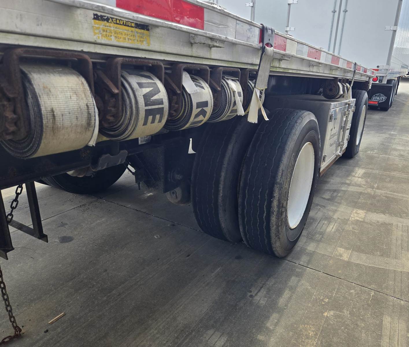 1999 UTILITY 48' X 102" Aluminum flatbed tandem, fixed/spread axle. Dual storage with straps, chains and tension bars. 4 bag air suspension....