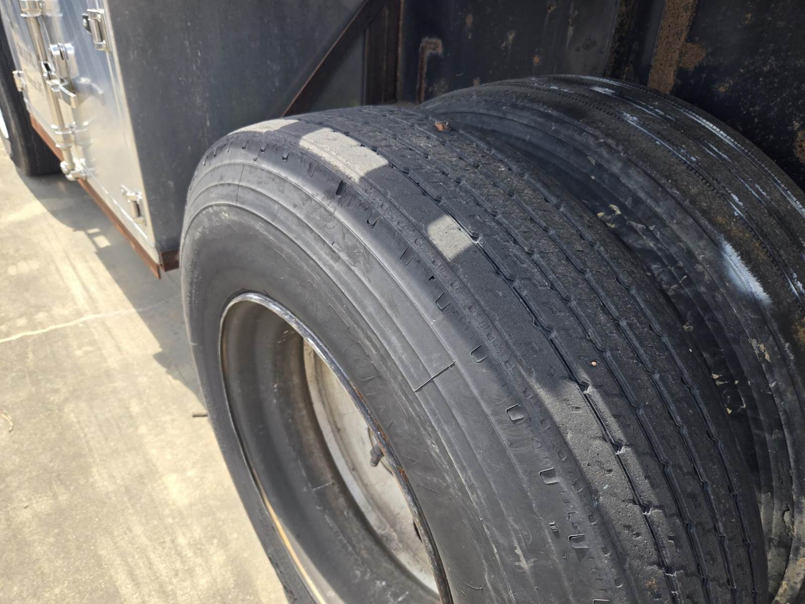 2001 Great Dane flat trailer- 102in x 48ft. Wooden deck. Missing some boards. Trailer is stationery and brakes are locked. Will help with...