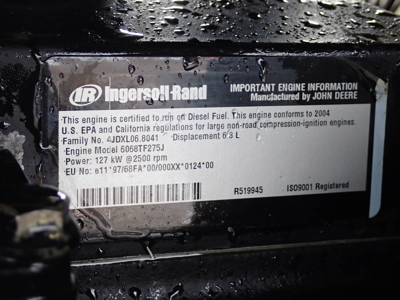 2004 Ingersoll Rand VHP400 WIR air compressor, 400 CFM at 200 PSI rating, John Deere 6068TF275 diesel engine, PRE EMISSIONS, 4055 hours, trailer mounted, towable. GOOD RUNNING MACHINE, WORKS LIKE IT SHOULD, SEE VIDEO DEMONSTRATION. HARD TO FIND HIGH PRESSURE UNIT, PRE-EMISSIONS, THE BEST THEY EVER MADE !!!