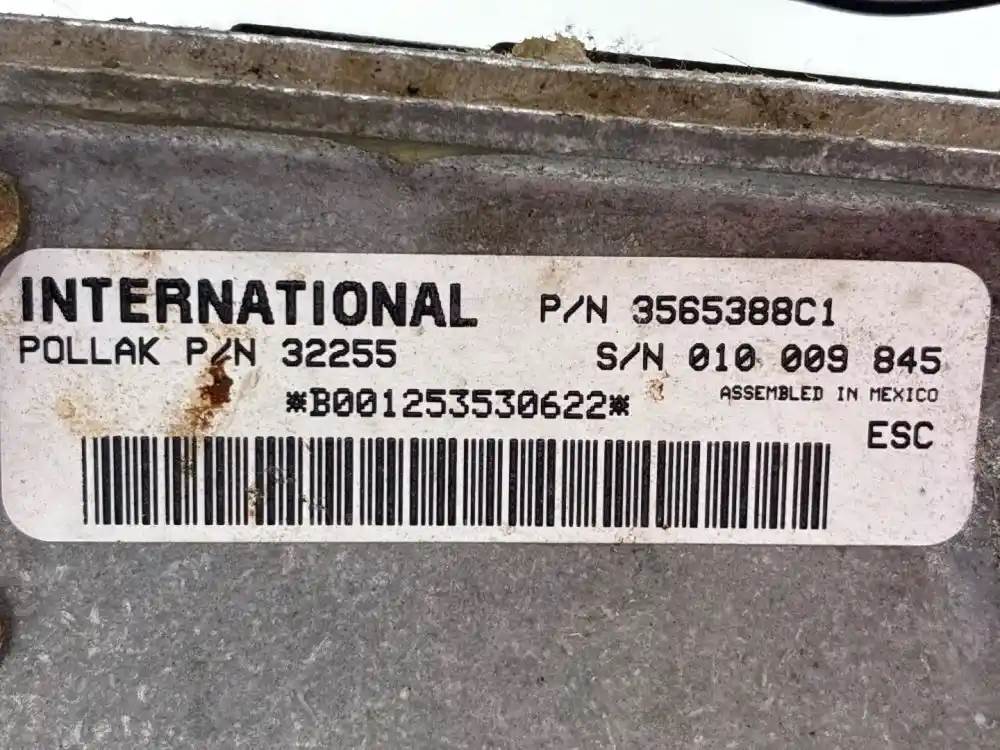 (Used) 2004 International 4300, CAB CONTROL MODULE, BODY ECM- Part Number: 3565388C1, Serial Number: 010 009 845, Pollak Part Number: 32255, B001253530622, 2 Rectangular Plug with 36 Pins each, 3 Rectangular Plug with 8 Pins each, Reference images for condition, For more information about this item, give us a call. We ship Worldwide! (CRG HEAVY TRUCK PARTS) 929 W PULASKI HWY, ELKTON, MD 21921