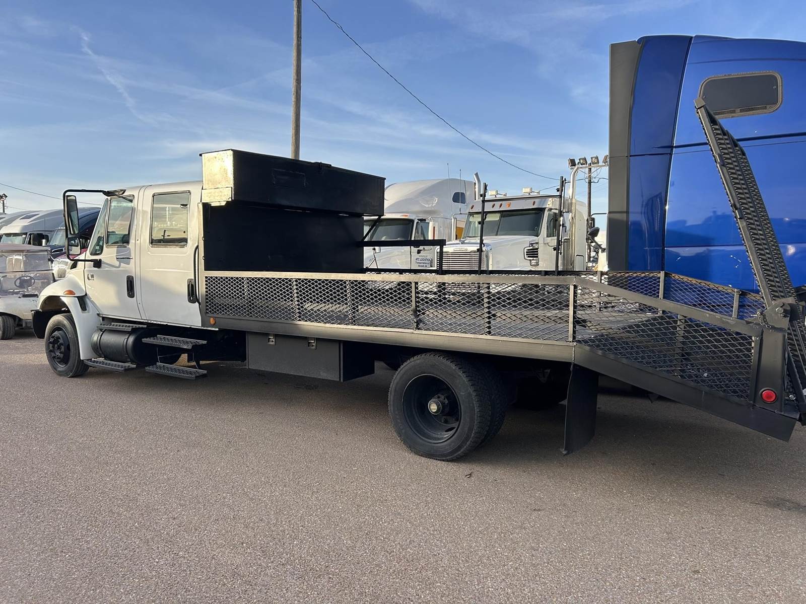 nice truck, runs great, air brakes, NICE EQUIPMENT HAULER BED, 4 ft DOVE TAIL WITH RAMPS, air seat, cruise, well maintained truck,