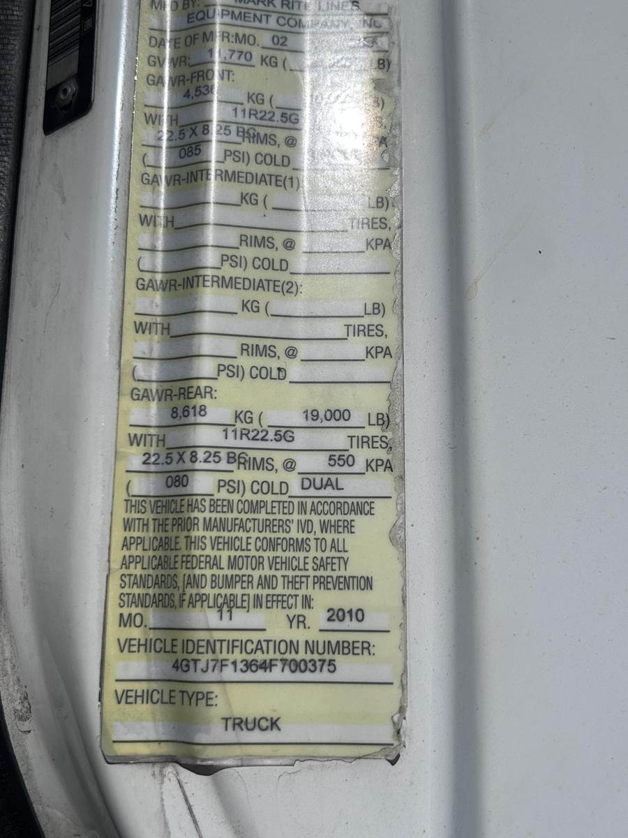 6 Cylinder Turbo Diesel Engine, Automatic Transmission, PTO, Front Plow Mount, Heat, Approx 12' Frame Length Behind Cab, 11R22.5 Tires,,