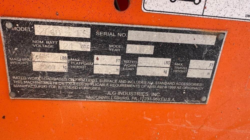 2004 JLG 2646ES SCISSORLIFT, electric, 26' lift, extendable platform, 1,028 hours indicated. s/n:0200118317