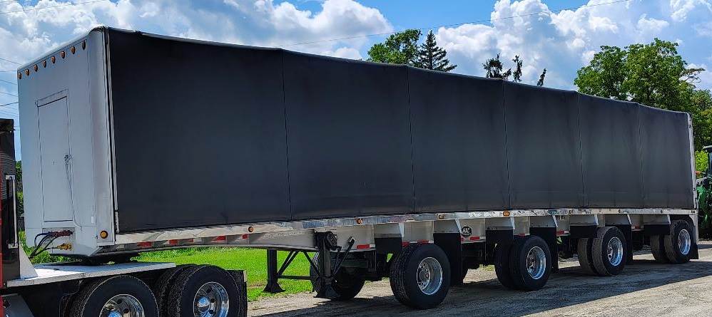 2004 MAC Flat Bed Semi Trailer, 48 ft. Long, Aluminum Frame & Wheels, 4 Axles, 9 ft. Spread between Axle #1 And #2, and Between Axle #2 and #3, 10 ft. 1 inch Spread between Axle #3 and #4, GVWR !00,000#, Per Axle 23,000#, Axles #1 & #2 are Tag Axles, Axle #4 Has a Dump Bag, Bed Has 1 inch Coil Well, Frame Has 7 Inch Cross Member Package, New Seals, New Maxis, New Valves On Lift Axles, DeMonte Fab. Ltd. Quick Draw Tarpaulin Systems Opens Both To The Front or To The Rear, All Chains Remain With The Trailer, call for more information, financing may be available.