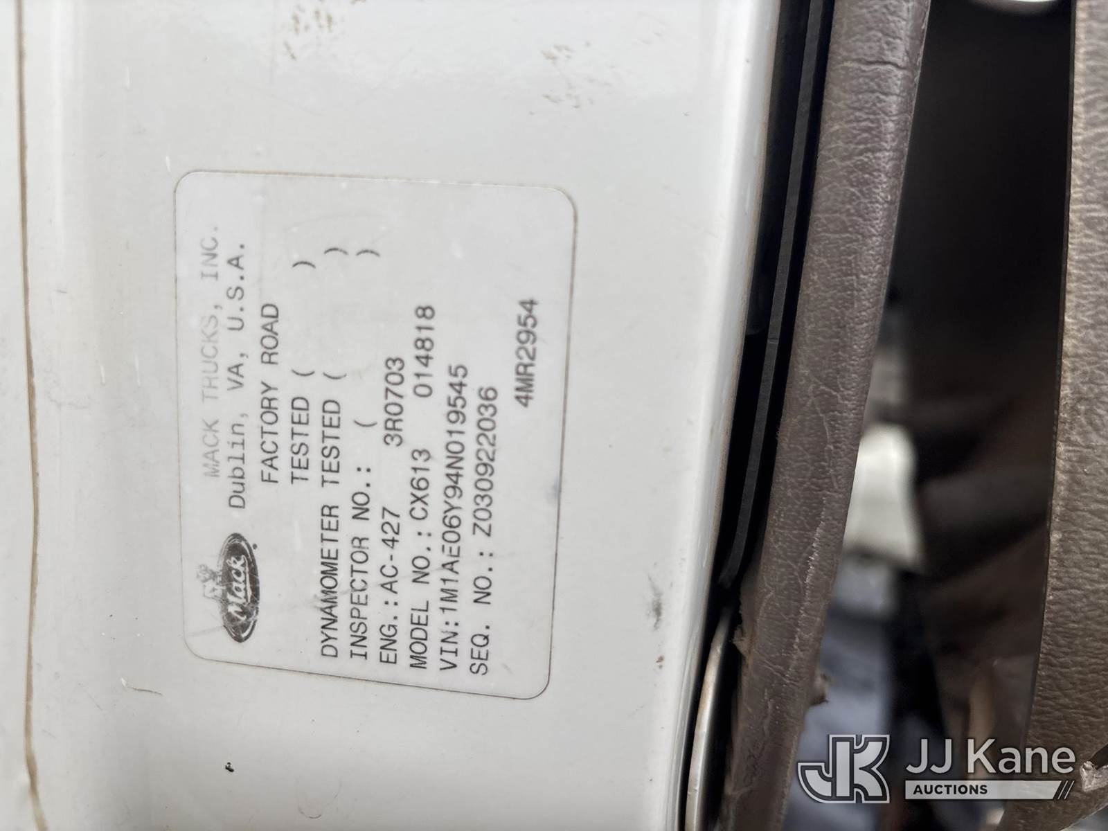 2004 Mack CX613 Vision T/A Truck Tractor, 12.0L L6 DIESEL 10-spd, A/C, (Exempt from Odometer Disclosure - Reads 327,839 miles) (Runs & Moves) (Reads 13,030 hours) This is a Titled Item NOTE: This unit is being sold AS IS/WHERE IS via Timed Auction and is located in Byram, MS. Inspection & preview days for this unit are the 2 business days prior to the first day of items closing for this auction, item is located at 6033 I-55 S / W Frontage Rd Byram, MS 39272 and hours of operations are 8a-4p. Pre-sale questions, please contact @ (659) 278-7786 (Buyer is responsible for removal. Assistance by consignor or JJ Kane Auctioneers is not assured.)