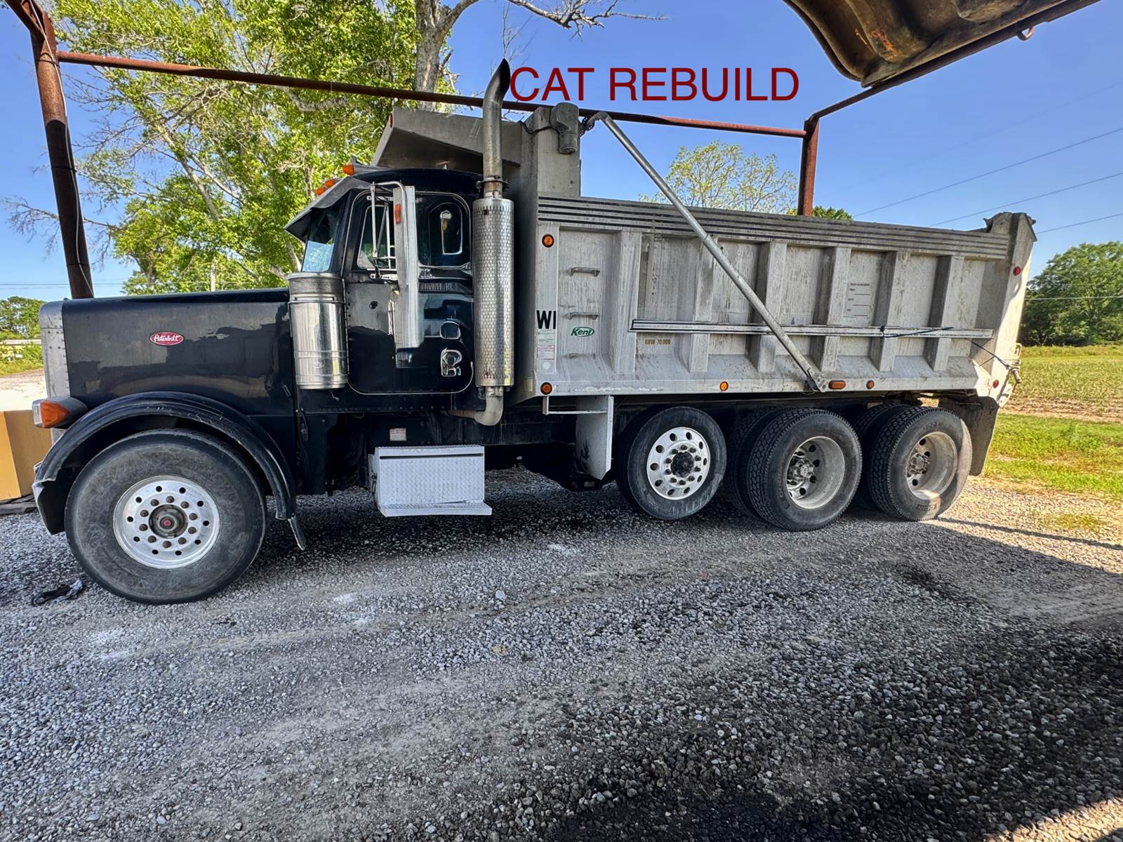 2004 Peterbilt 357 Tri Axle w/ Lift Axle Dump Truck, FRESH REBUILD CAT C12 – LESS THAN 1,000 MILES, Pre DEF, Eaton Fuller 8LL Manual Transmission, CHALMERS SPRING SUSPENSION, 16ft Aluminum Dump Body – High Sides w/ Manual Tarp System, APPROX. 16–18 YARD CAPACITY, HIGH LIFT GATE, DOUBLE FRAME, 20K Front Axle, 46K Rears, 66,000 GVWR, 24.5 All Aluminum Wheels, 11R24.5 TIRES – ALL BRAND NEW, Air Ride Driver Seat, Interior in Working Condition, CB Radio Installed, ORIGINAL MILES 877,402, ENGINE HOURS 1,780, READY FOR WORK, Well Maintained Solid Truck!, FINANCING AVAILABLE!! – CALL FOR MORE INFORMATION