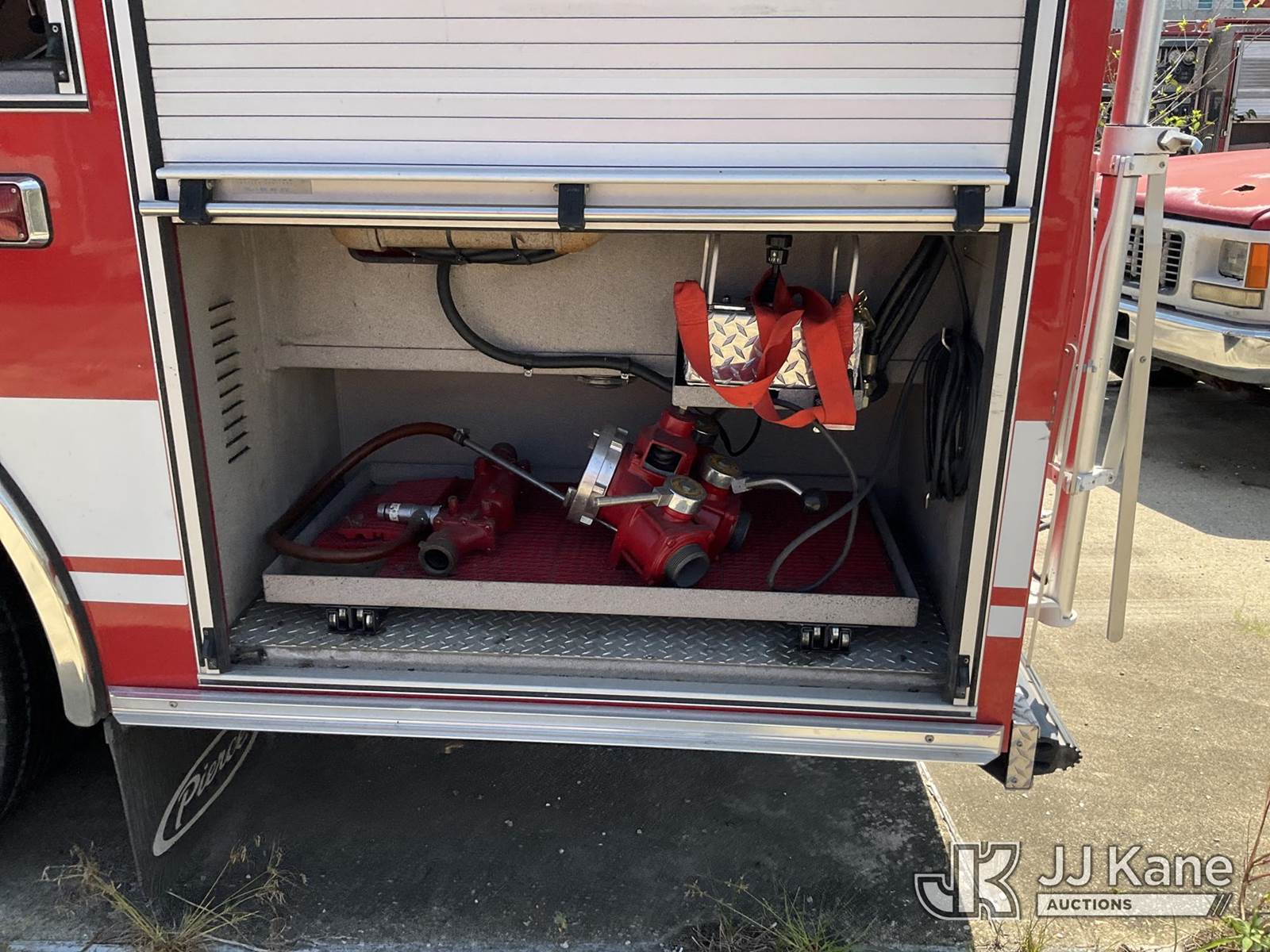 2004 Pierce Fire Truck Fire Truck, 7.2L Diesel Auto, 4X2, with Front Bumper Winch, (Exempt from Odometer Disclosure - Reads 4,056 miles (unverified)) (Not Running, Condition Unknown) (Dash Partially Disassembled, Driveshaft removed ) (Reads 764 hours) This is a Titled Item NOTE: This unit is being sold AS IS/WHERE IS via Timed Auction and is located in New Orleans, LA. License # LA AB-154 (Buyer is responsible for removal. Assistance by consignor or JJ Kane Auctions is not assured.)