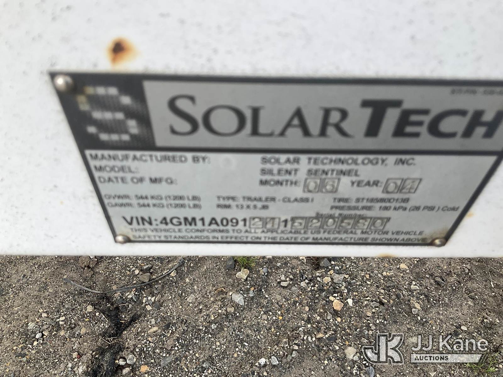 2004 Solar Tech Silent Sentinel Portable Arrow Board, s/n 4GM1A091241520580, battery powered, (Damaged, No Arrowboard CERTIFICATE OF ORIGIN) NOTE: This unit is being sold AS IS/WHERE IS via Timed Auction and is located in Plymouth Meeting, PA. Inspection & preview days for this unit are the 2 business days prior to the first day of items closing for this auction, item is located at 1402 Conshohocken Rd Plymouth Meeting, PA 19462 and hours of operations are 8a-4p. For pre-sale questions, please contact Bruce Thomas @ (267) 887-0392 or bruce.thomas.jr@jjkane.com. (Buyer is responsible for removal. Assistance by consignor or JJ Kane Auctions is not assured.)