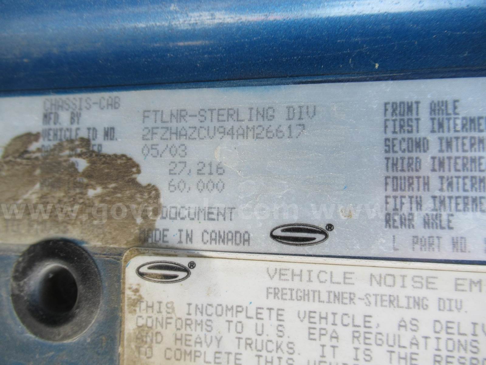 2004 Sterling LT9500 TANDEM, 12.8L L6 DIESEL.