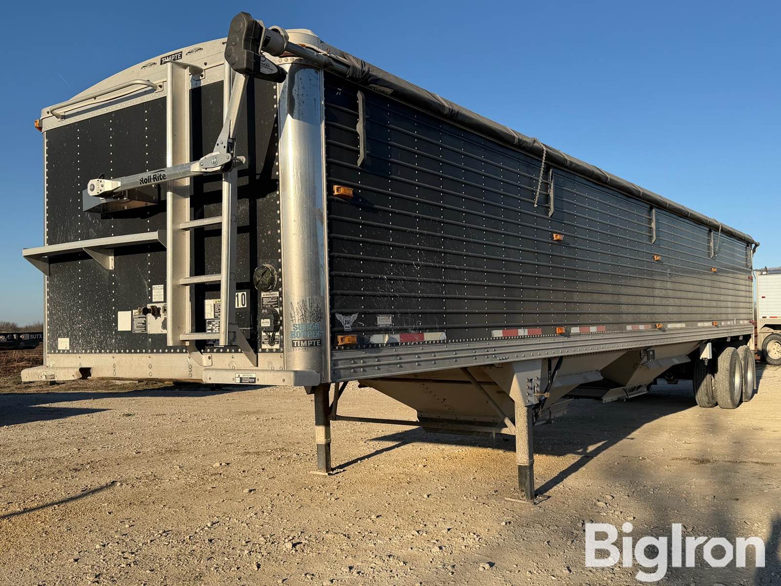 2004 Timpte Super Hopper 42' T/A Grain Trailer, 8' wide, Roll Rite electric tarp, Electric hopper doors, Two-speed landing gear, 11R22.5 tires on aluminum hub pilot rims, VIN: 1TDH422214B104945