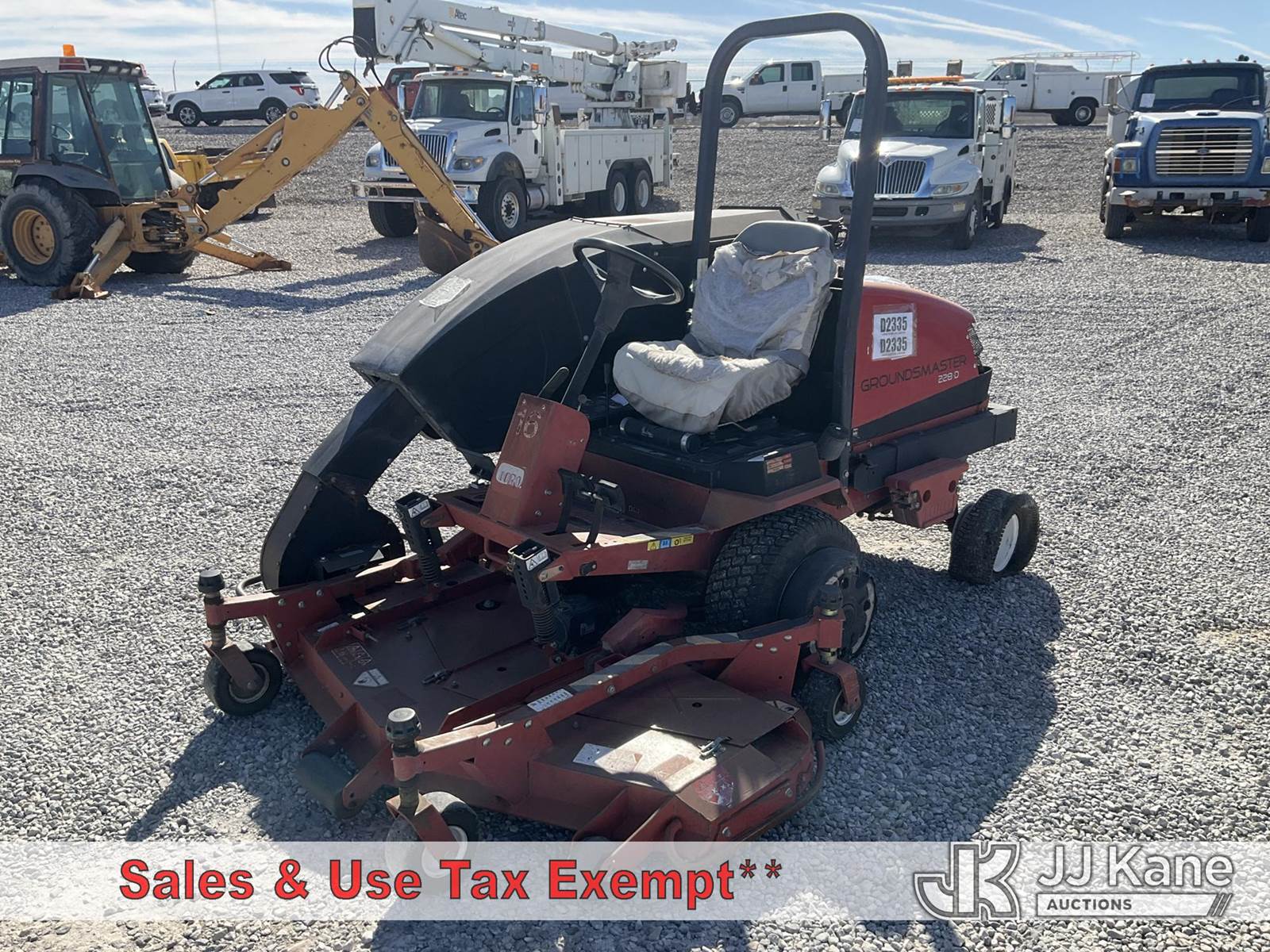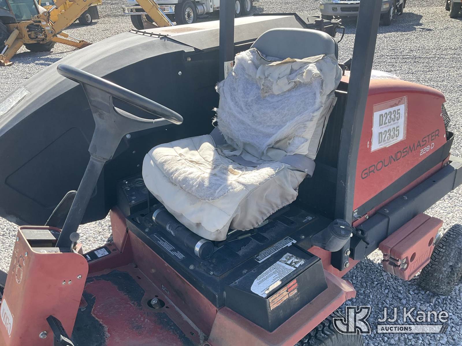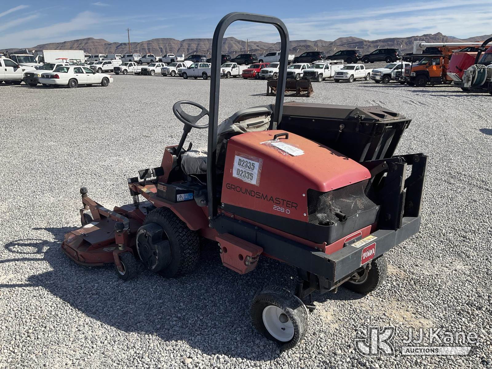 2004 Toro Groundmaster 228-D Zero Turn Riding Mower, s/n 30241-240000201, Kubota Hydrostatic, diesel, with Hi-Lift Collection System, ROPS, Toro Groundmaster 228D (Runs & Operates. Rear Tire Off Wheel.) (Reads 1,748 hours) NOTE: This unit is being sold AS IS/WHERE IS via Timed Auction and is located in Las Vegas, NV. Inspection & preview days for this unit are the 2 business days prior to the first day of items closing for this auction, item is located at 14655 Grand Valley Pkwy Las Vegas, NV 89165 and hours of operations are 8a-4p. Titles executed exactly as bidder registered. Ensure your name and/or business name and address in JJ Kane and/or ProxiBid is correct before bidding. For pre-sale questions, please contact Office Staff @ (801) 519-0123 and provide sale date and lot number. Las Vegas Dealer License Number DLR000053086 / OHV000053094. (Buyer is responsible for removal. Assistance by consignor or JJ Kane Auctioneers is not assured.)
