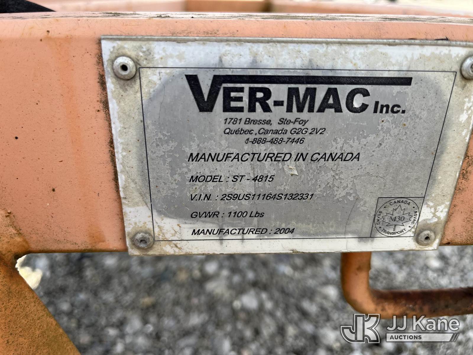 2004 VER-MAC ST-4815 Portable Arrow Board, s/n 2S9US11164S132331, Battery Powered, trailer mtd. (No Title) (Operates, Rust Damage.) NOTE: This unit is being sold AS IS/WHERE IS via Timed Auction and is located in Louisville, OH. Inspection & preview days for this unit are the 2 business days prior to the first day of items closing for this auction, item is located at 3648 Beck Ave Louisville, OH 44641 and hours of operations are 8a-4p. For pre-sale questions, please contact Aaron Coleman @ (330) 495-4041 or aaron.coleman@jjkane.com. (Buyer is responsible for removal. Assistance by consignor or JJ Kane Auctions is not assured.)
