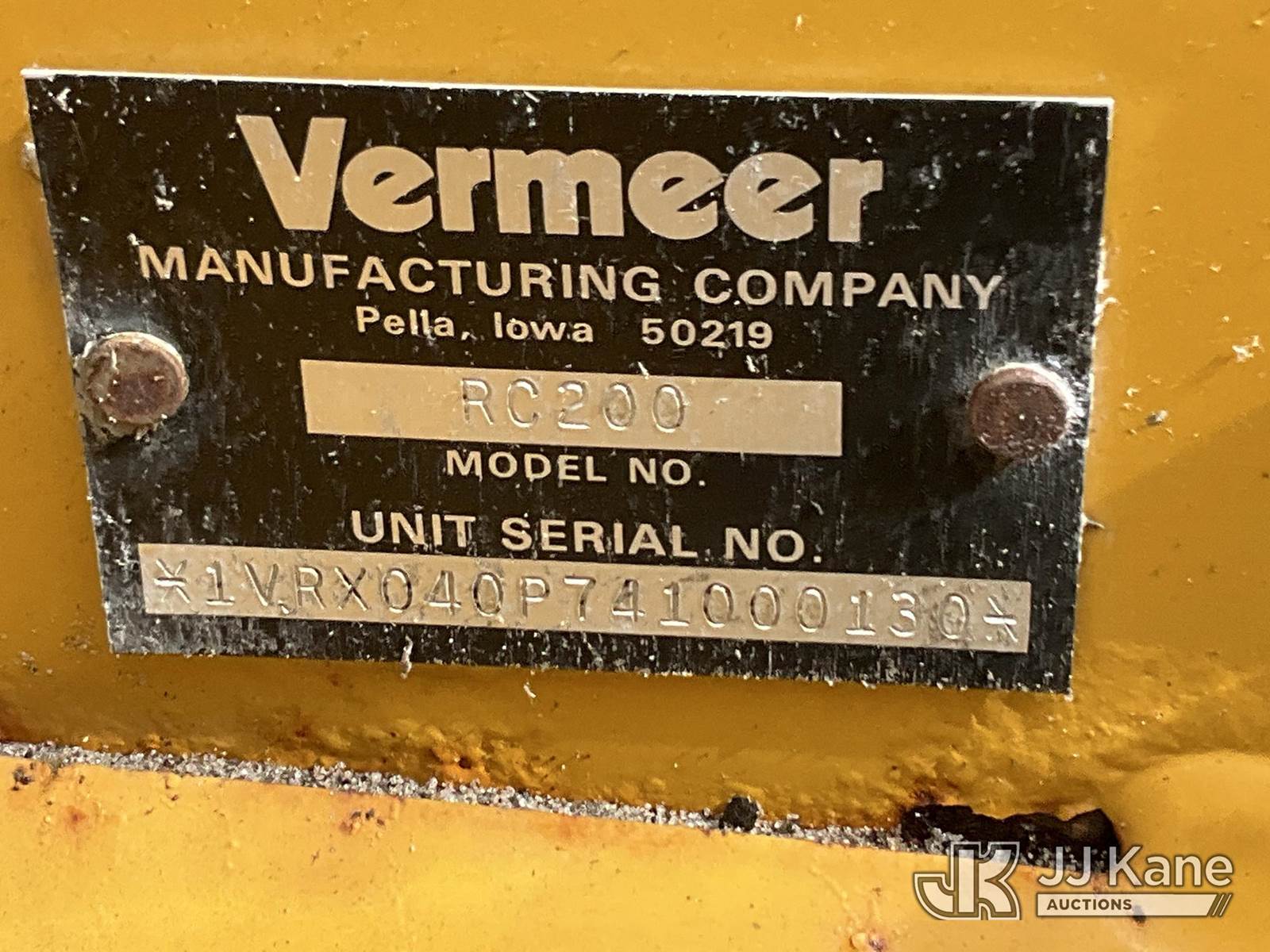 2004 Vermeer RC200 Walk-Behind Stump Grinder, s/n 1VRX040P741000130, Kohler gas, Hydrostatic, Gas, (Not Running, Operating Condition Unknown, Flat Front Tires, Body Damage & Rust) (SELLER STATES: Unit Has Mechanical Issues.) (Reads 241 hours) NOTE: This unit is being sold AS IS/WHERE IS via Timed Auction and is located in West Palm Beach, FL. For Pick Up & Removal information, please contact: Andy Garcia @ 561-215-0085. Removals require 24-hr Notice by Appointment Only, Buyer/Hauler must present copy of Paid-in-Full JJ Kane Release Form upon arrival. Purchaser acknowledges ALL lots must be removed within 10 business days of Auction, or a towing & storage fee may be incurred. (Buyer is responsible for removal. Assistance by consignor or JJ Kane Auctioneers is not assured.)