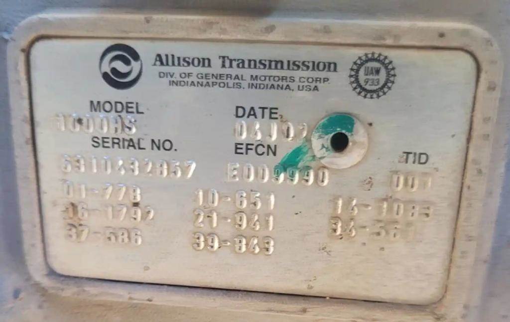 2005 Allison 1000 HS Transmission for a Freightliner MT45 Chassis