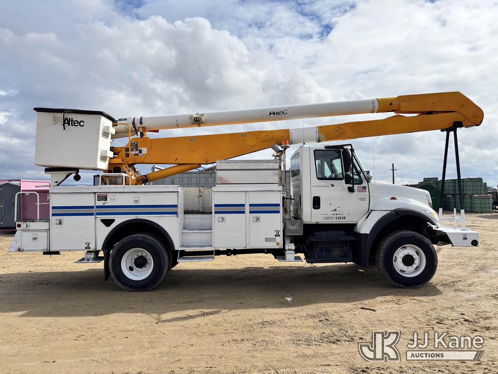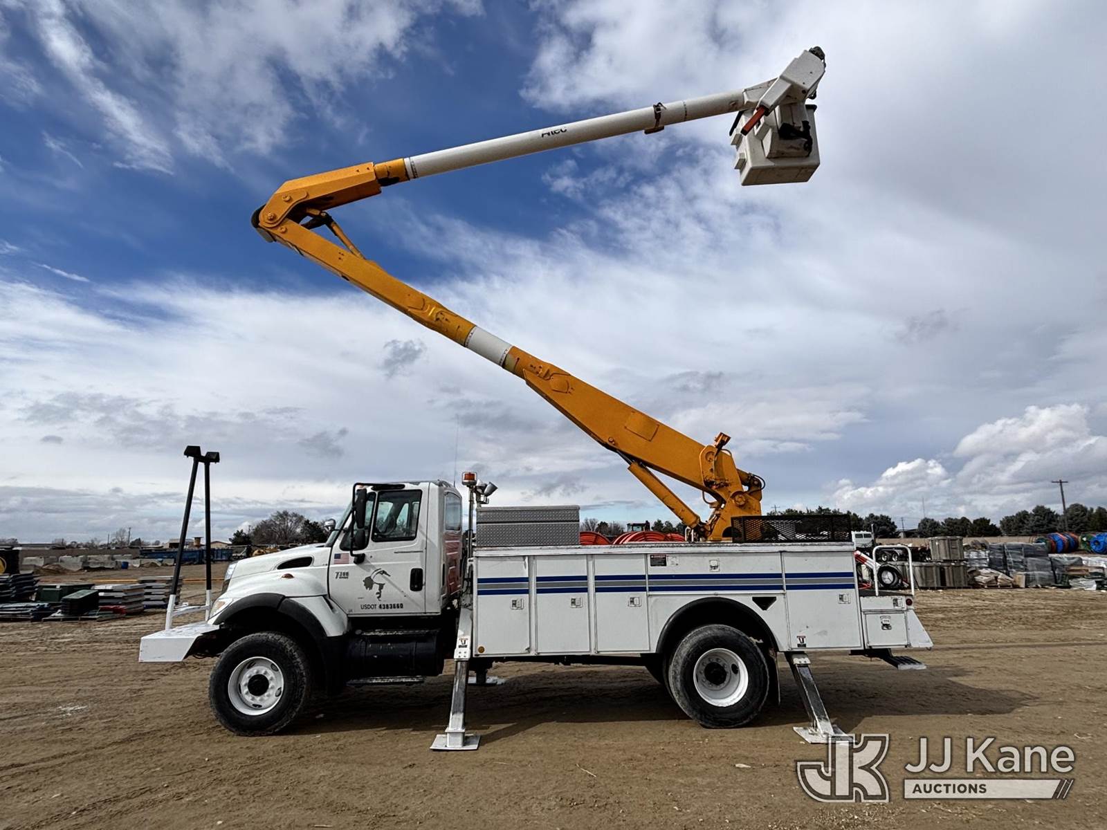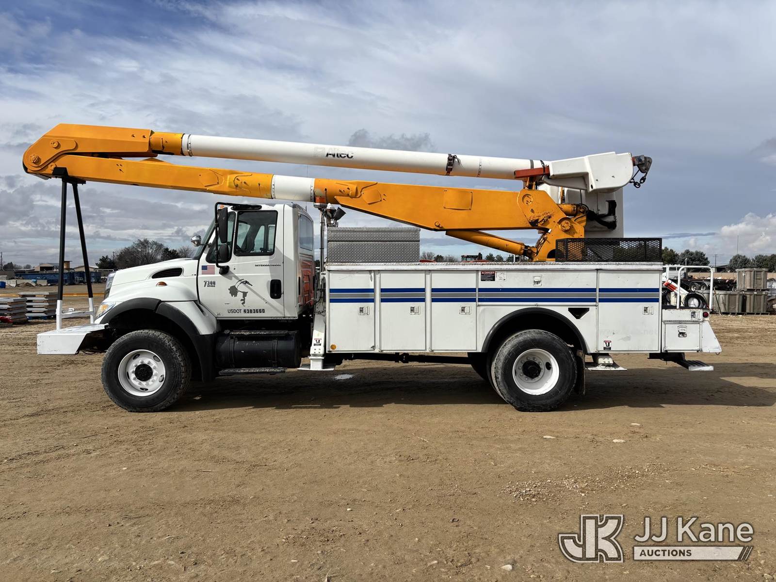 Altec AA755, 60 ft, Material Handling Bucket Truck s/n 0305BZ3484, with two man bucket & 4 hyd outriggers, rear mounted on 2005 International 7300 Utility Truck, s/n 1HTWBAAR85J171431, DT466E 4X4, diesel, Auto, A/C, with 7.6L diesel, front winch, (Exempt from Odometer Disclosure - Reads 203,252 miles) (Runs, Moves & Upper Operates) (The manufacturer has notified JJ Kane that this equipment is subject to an open recall. CSN 526 Hydraulic Platform Tilt Lever Improvement The equipment should not be operated until this is addressed. Buyer is responsible for reviewing the recall notice and contacting the manufacturer to schedule the recommended corrective actions. Associated costs may be covered by the manufacturer in some cases.) (Reads 19,514 hours) This is a Titled Item NOTE: This unit is being sold AS IS/WHERE IS via Timed Auction and is located in Nampa, ID. (Missing manuals, See Auction Company for Manufacturers Information to obtain manuals) (Buyer is responsible for removal. Assistance by consignor or JJ Kane Auctions is not assured.)
