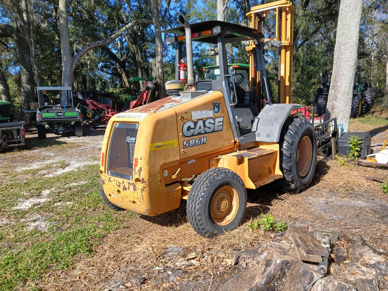 2005 Case 586H, high clearance, fork lift. 74 hp 3.4L FPT 4 cyl diesel. 4 speed forward, 4 speed reverse transmission, 4wd.2 stage Roller mast. 6000lb lift cap. Ht. To 22'. 10' lowered. 19,300 lbs. 194"L w/forks. 85"W. 10' H w/ lowered mast. Good operating machine. Call for more info.