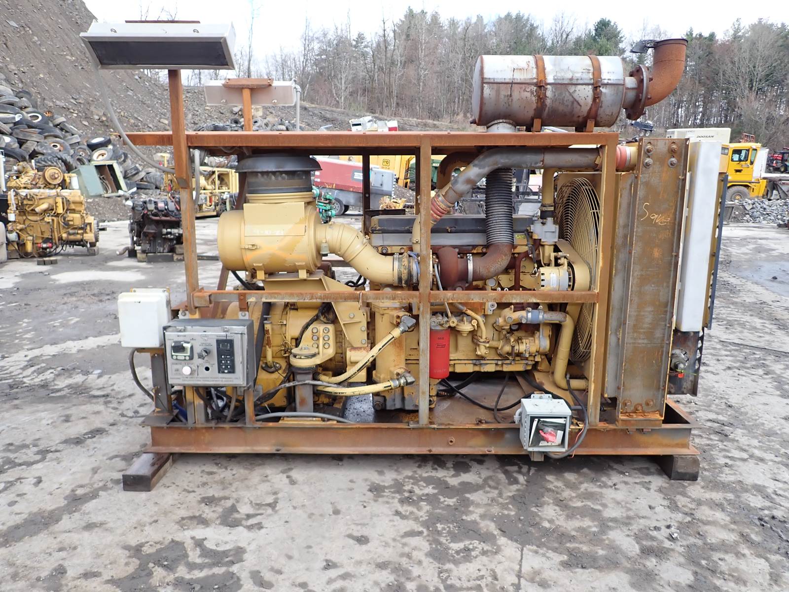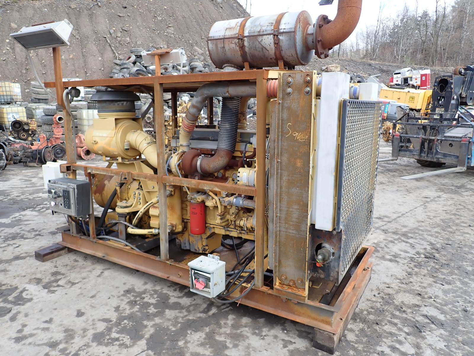 2005 Caterpillar C13 diesel engine, complete power unit w/ cooling package and accessories, 440 HP at 2200 RPM rating, arrangement # 241-3804, LGK prefix, PRE EMISSIONS, 6181 TOTAL hours, 4450 idle hours, 72 % IDLE TIME ON THIS ENGINE -- NO WORK TIME AT ALL - PRACTICALLY UNUSED !! POWER UNIT PACKAGE RUNS EXCELLENT, COMPLETE AS PICTURED -- YOU CANNOT BUY THESE ANYMORE !! DON'T MISS IT !! COMES COMPLETE AND ASSEMBLED AS PICTURED, TH35-E81 PETROLEUM PACKAGE W/ CAT 8 SPEED AUTOMATIC TRANSMISSION, ARRANGEMENT # 320-6764 OR 288-7895, W/ ECM, CONTROLLER AND OTHER ACCESSORIES AS PICTURED. SEE TEST RUN VIDEO -- GOOD CLEAN RUNNER AS PICTURED, GOOD OIL PRESSURE, COMPLETE LIKE YOU SEE IT. ** PRICE IS FOR ENTIRE UNIT AS PICTURED, IF ENGINE ONLY IS NEEDED, WE CAN DISCOUNT THIS UNIT FOR YOU !! **