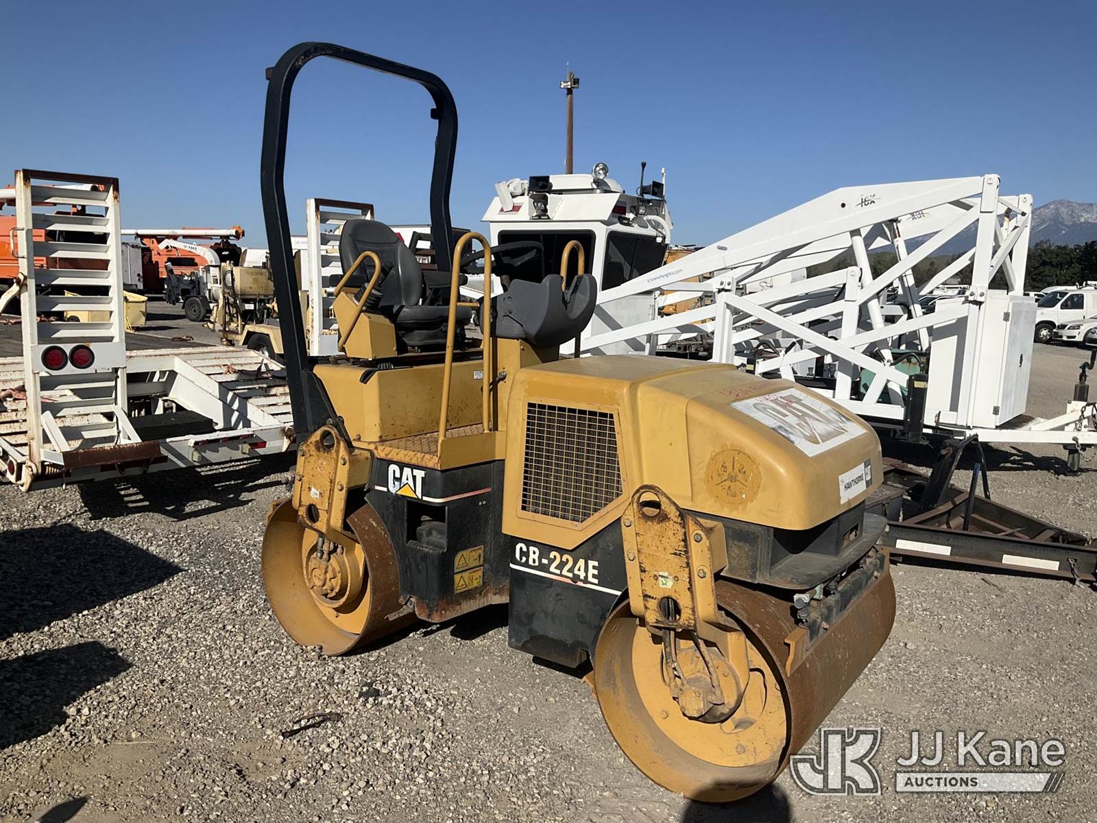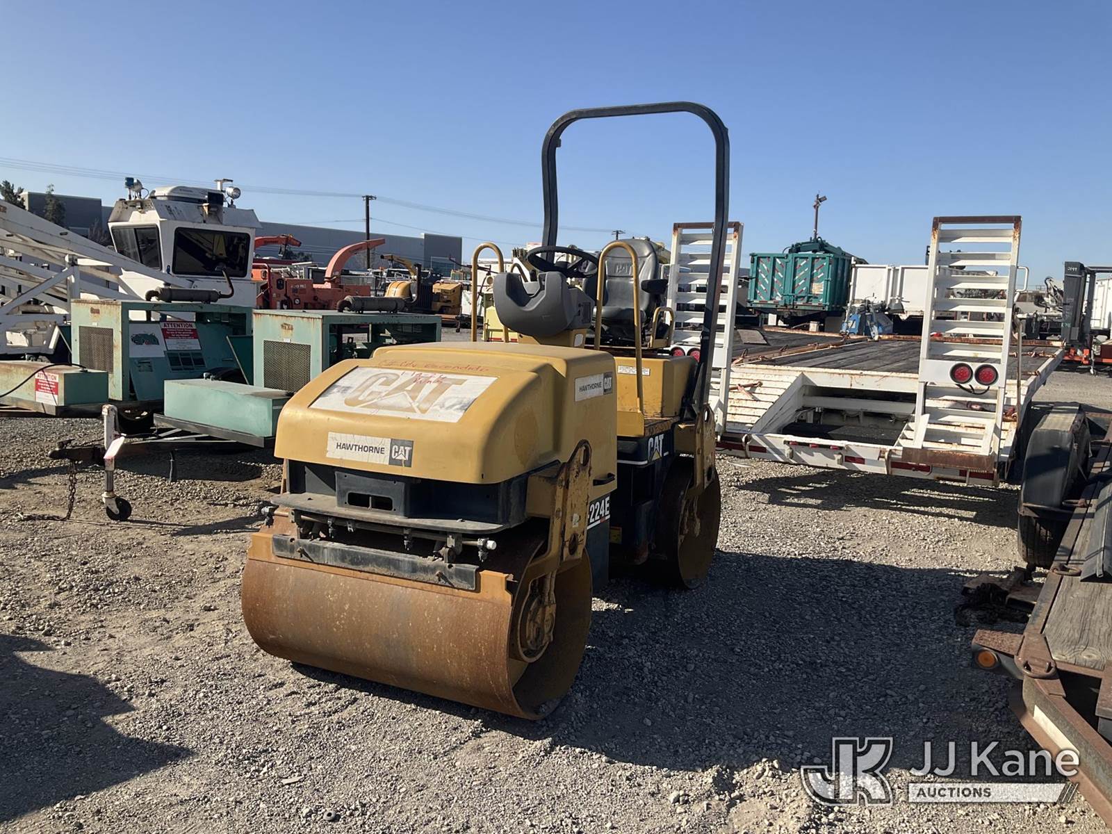 2005 Caterpillar CB-224E Tandem Vibratory Roller, s/n CATCB224C22401201, Cat diesel, Hydrostatic, with 47 in drums, water system & ROPS, (Not Running, Condition Unknown) (No Key) (Reads 999 hours) May be subject to ARB Regulations NOTE: This unit is being sold AS IS/WHERE IS via Timed Auction and is located in Jurupa Valley, CA. Inspection & preview days for this unit are the 2 business days prior to the first day of items closing for this auction, item is located at 4510 Muth Way Jurupa Valley, CA 92509 and hours of operations are 8a-4p. For pre-sale questions, please contact please contact Office Staff @ (310) 353-7140. Dealer License Number 45696. (Buyer is responsible for removal. Assistance by consignor or JJ Kane Auctions is not assured.)